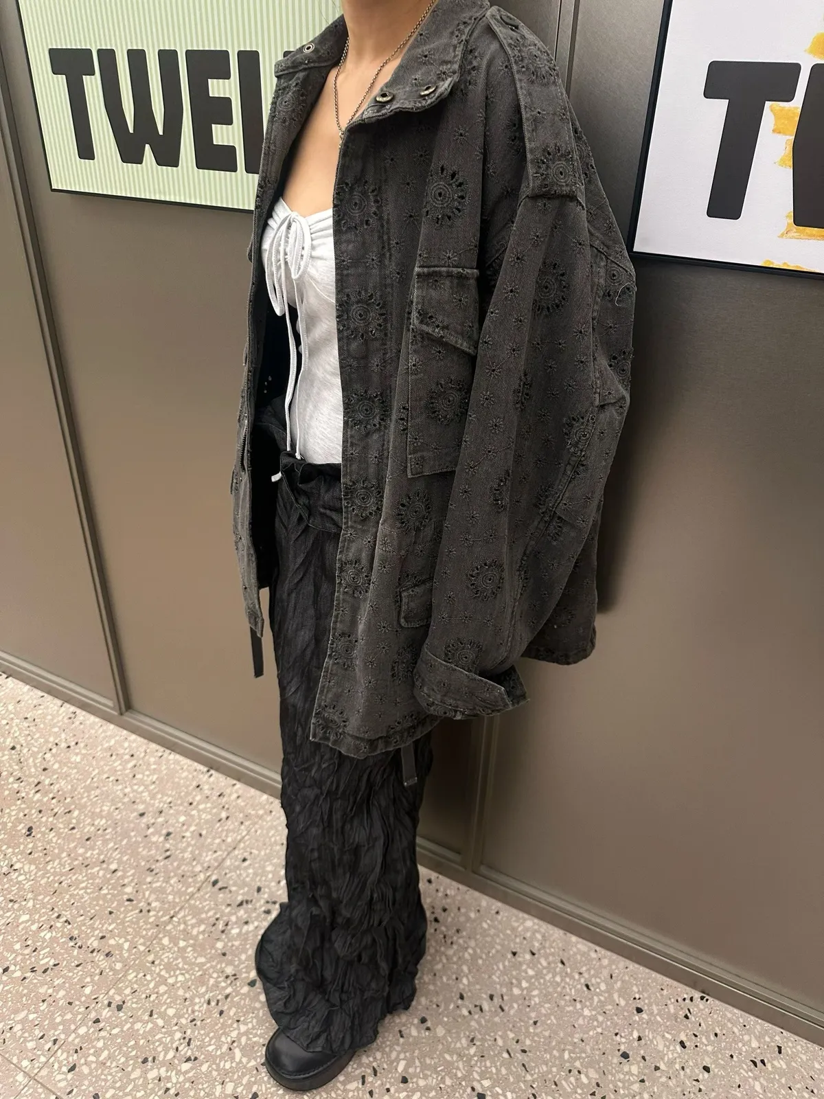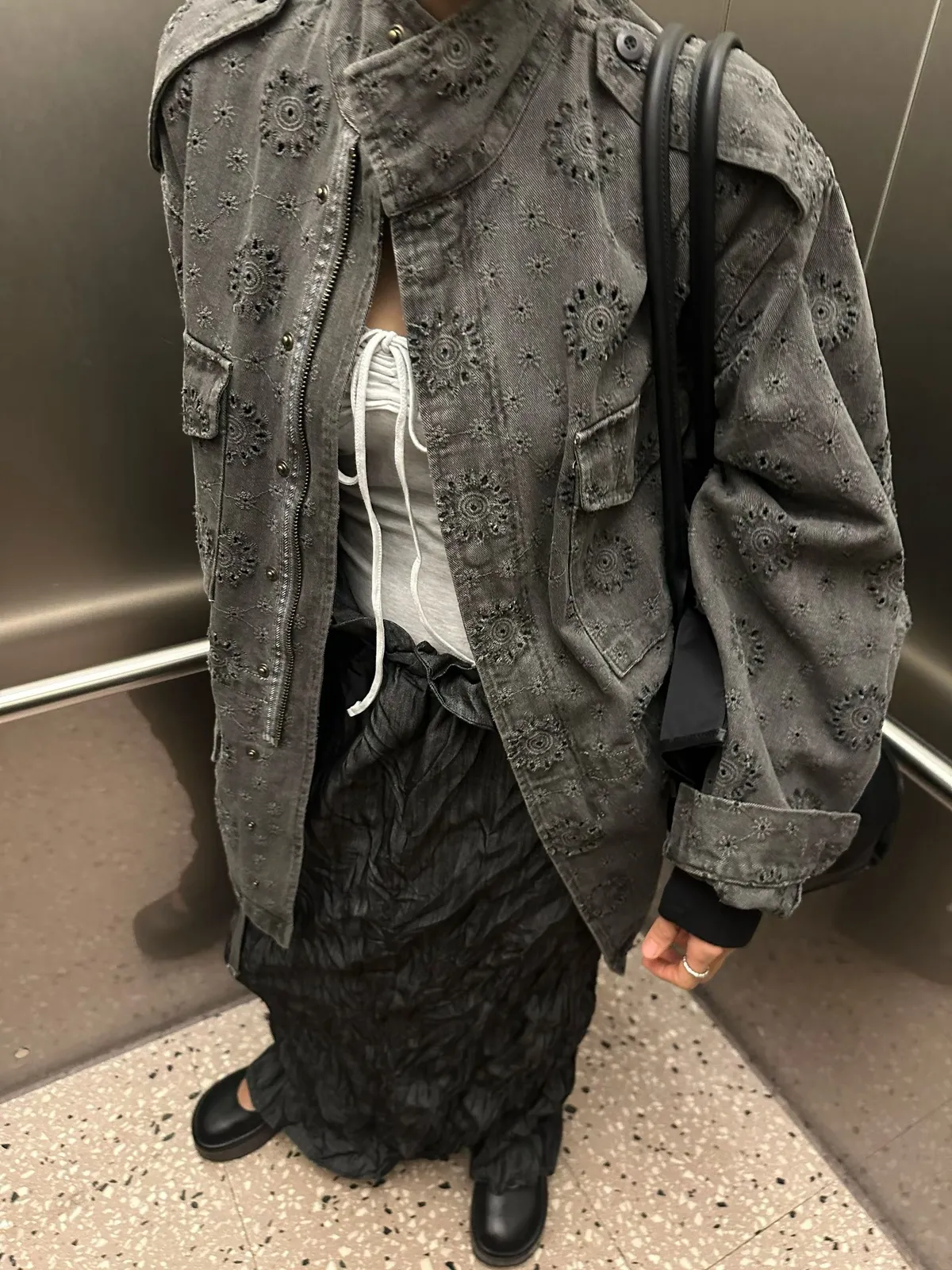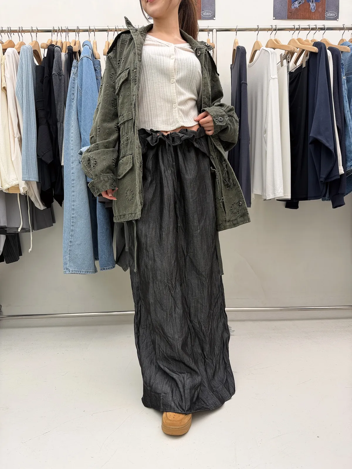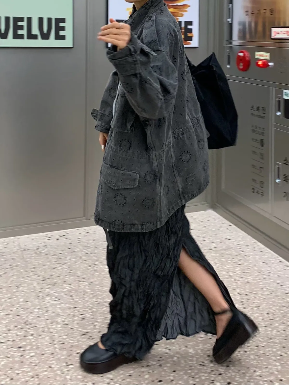 26DE03 神美)燒花中長版軍外套 2色
