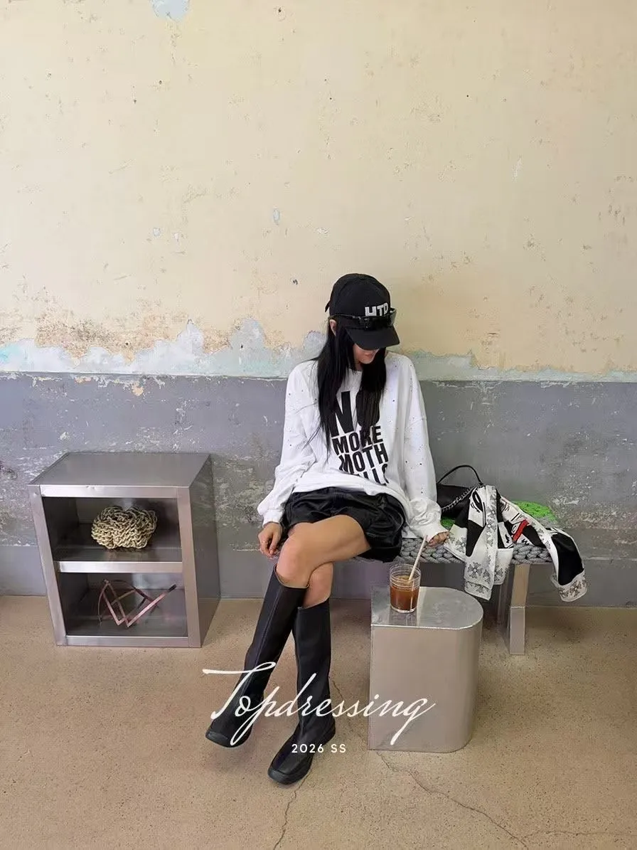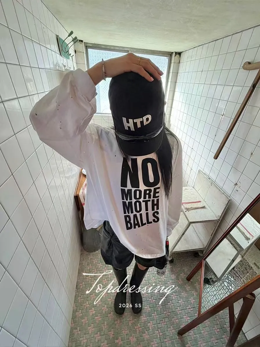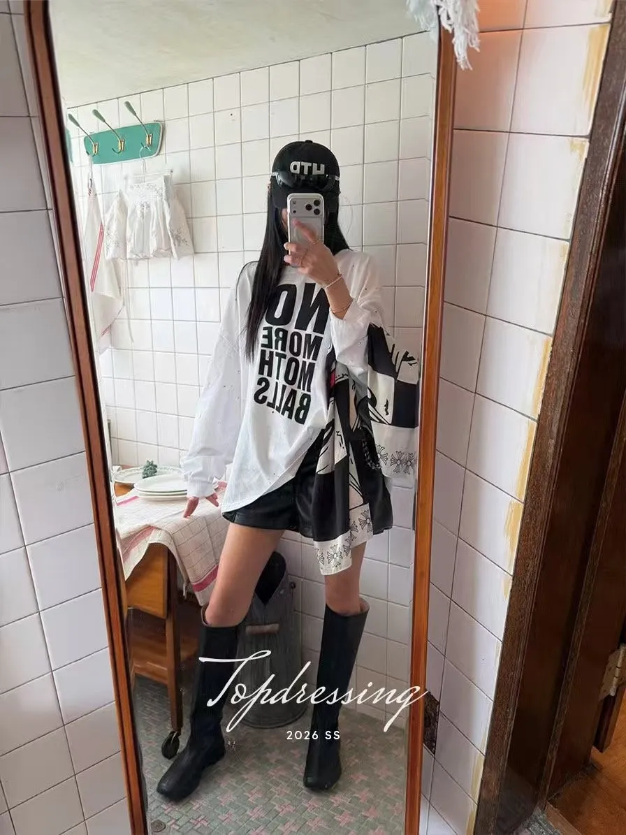 26DF18 破洞斜大英字寬鬆長T 3色