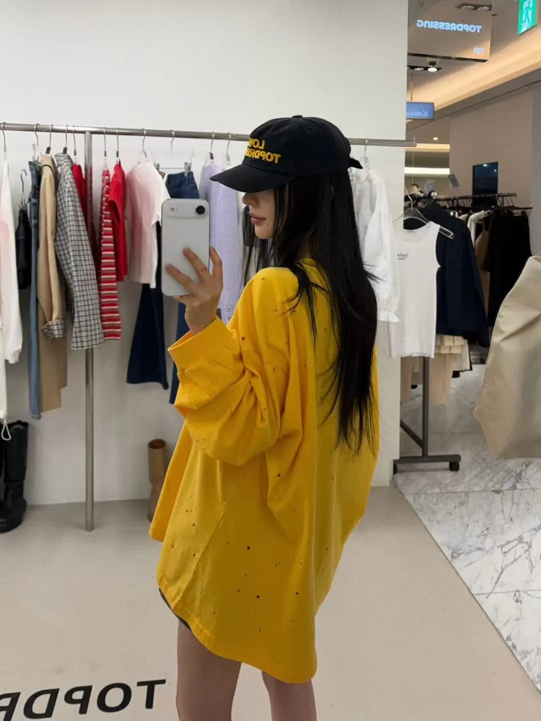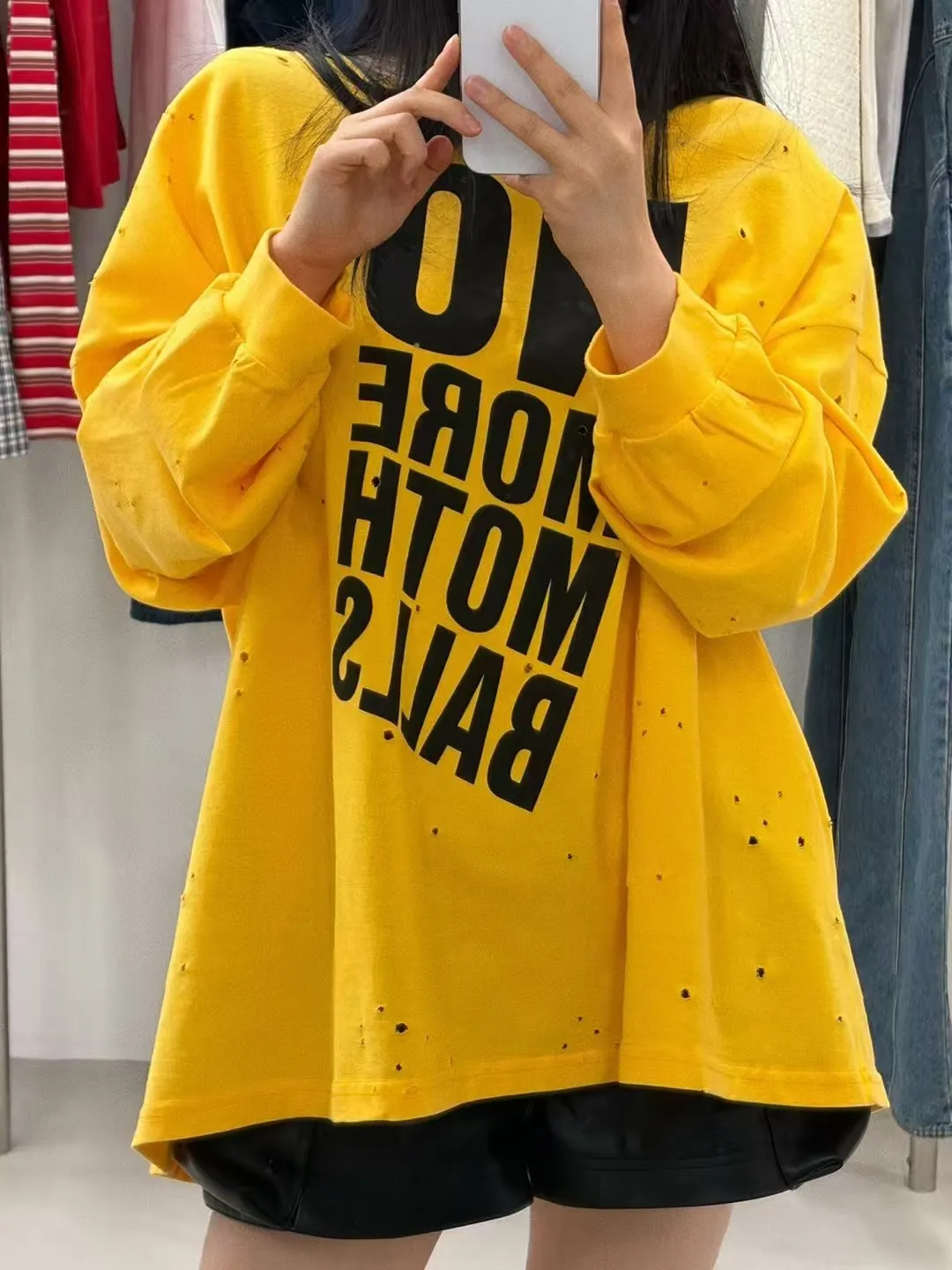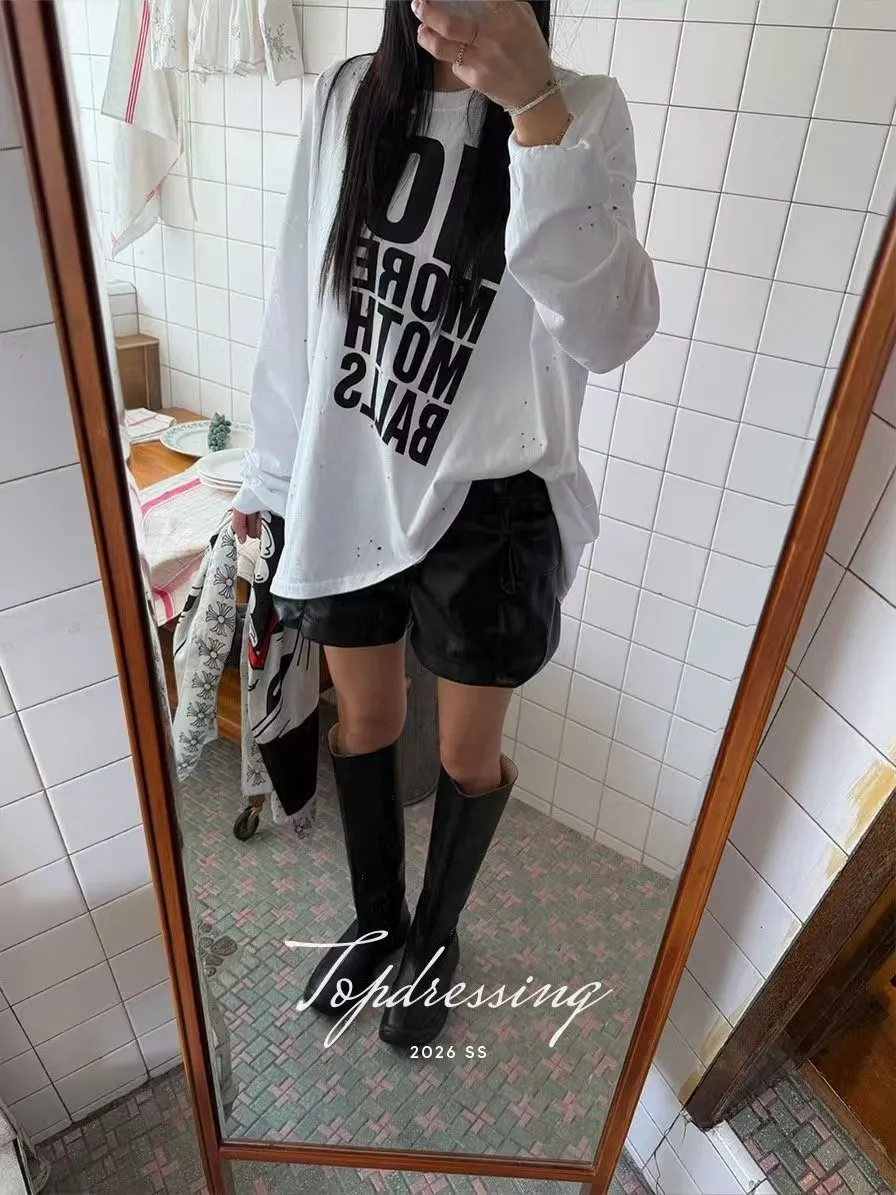 26DF18 破洞斜大英字寬鬆長T 3色