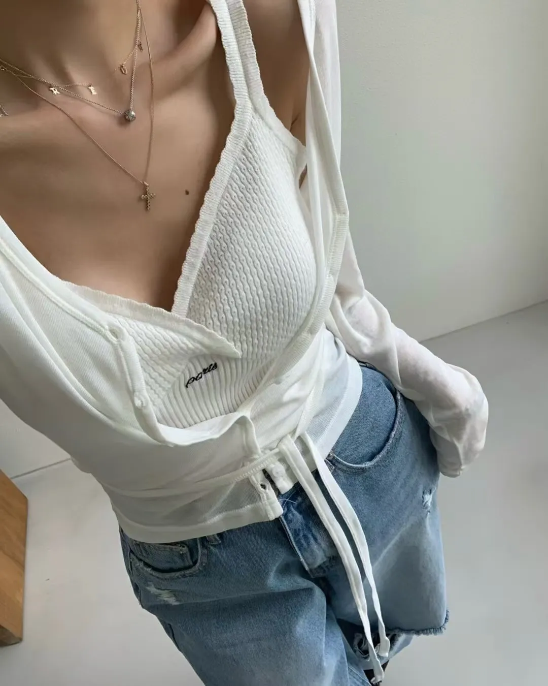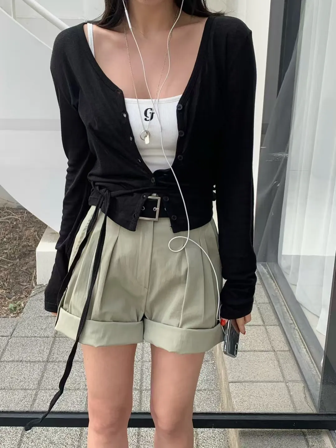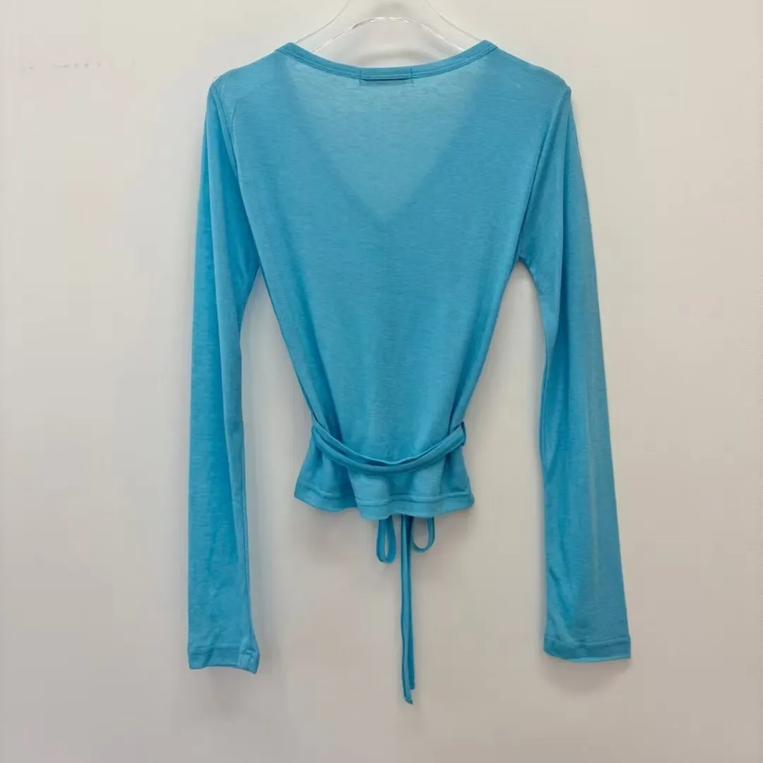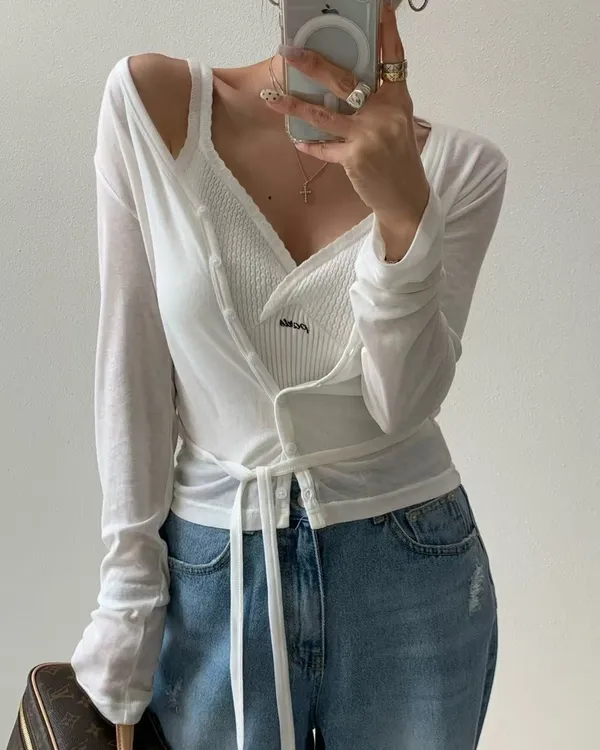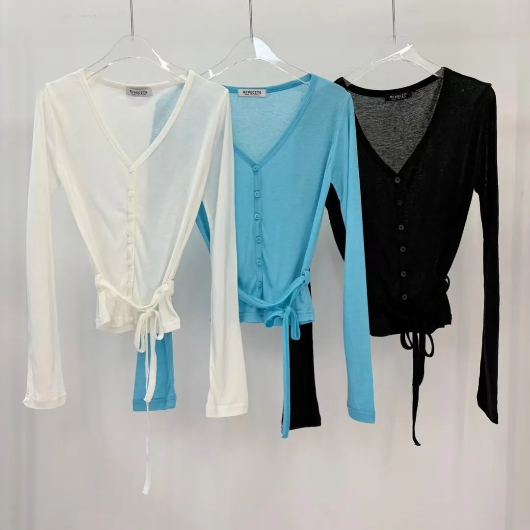 26DG06 V領透棉感綁帶排扣罩衫上衣 3色