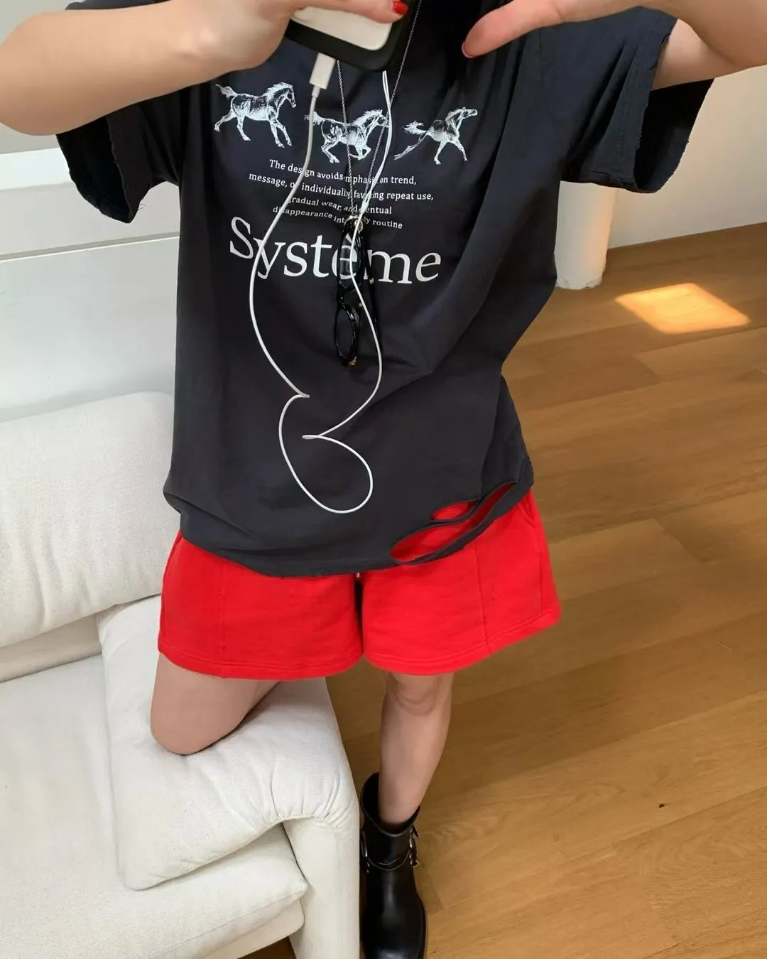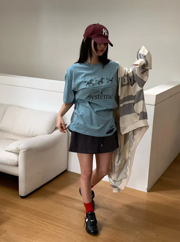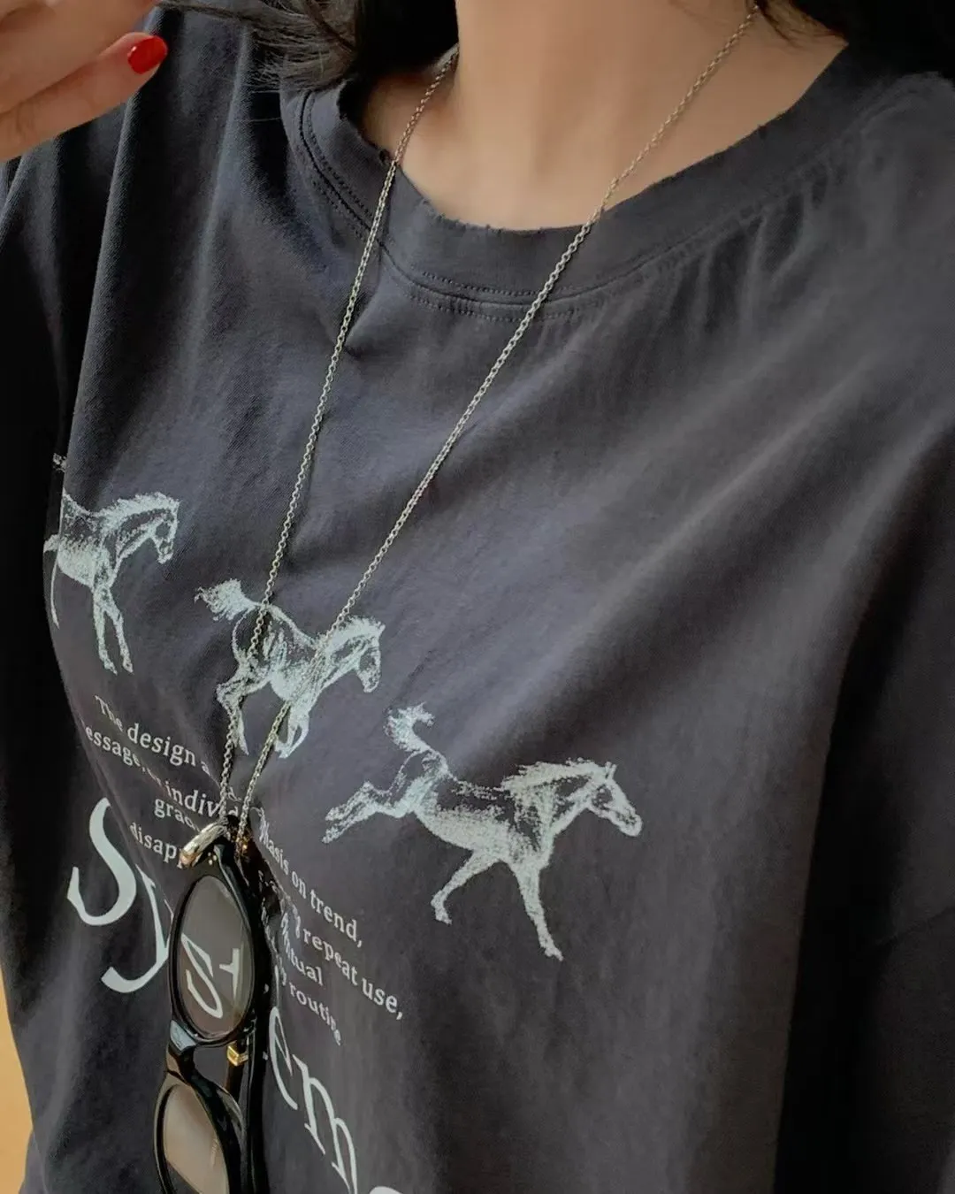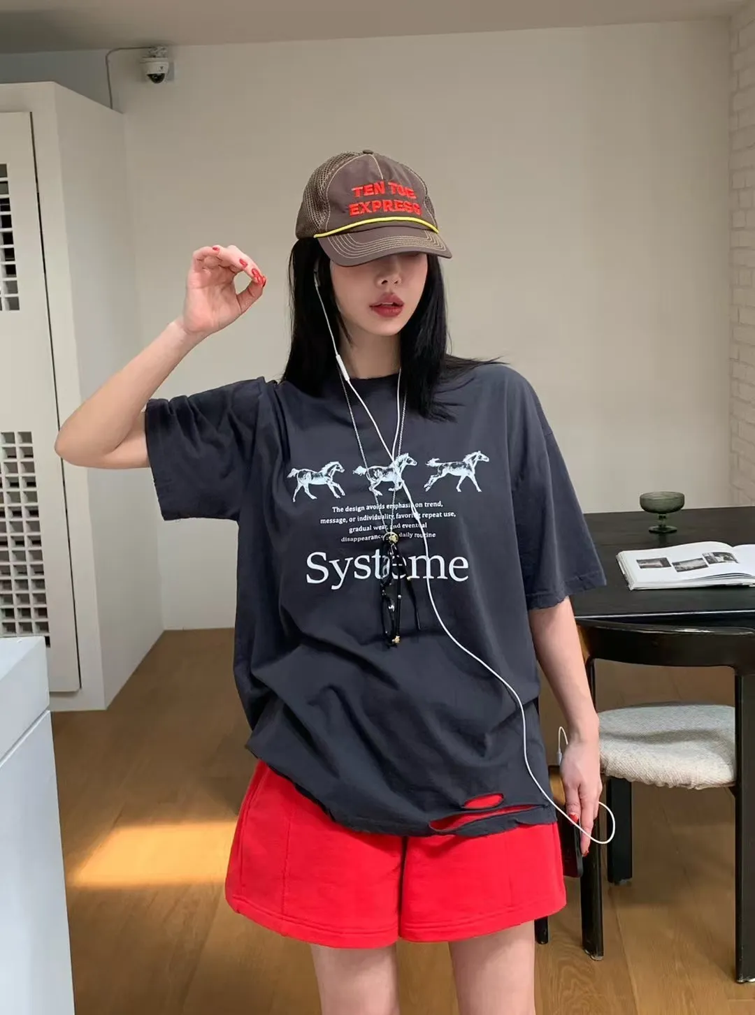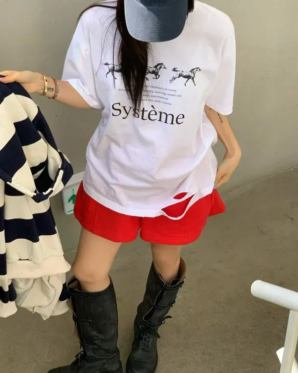 26DG17 馬馬破壞割破中長版短T 4色