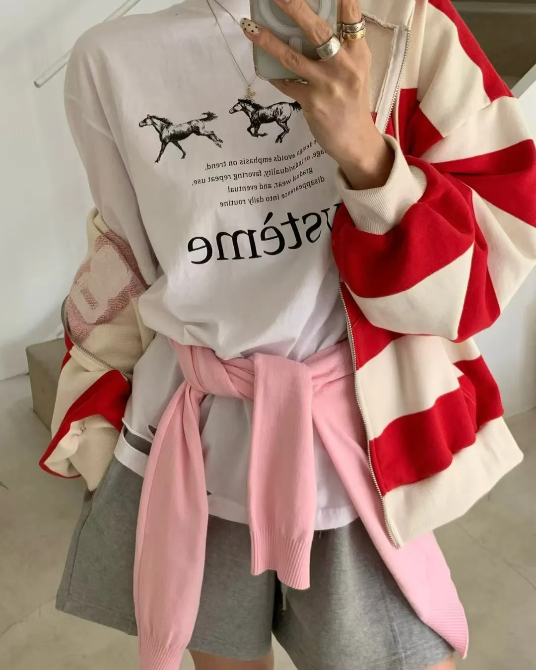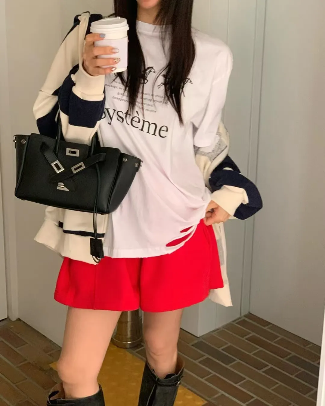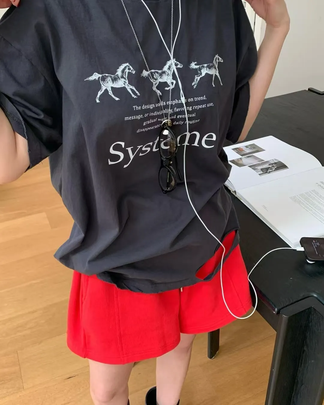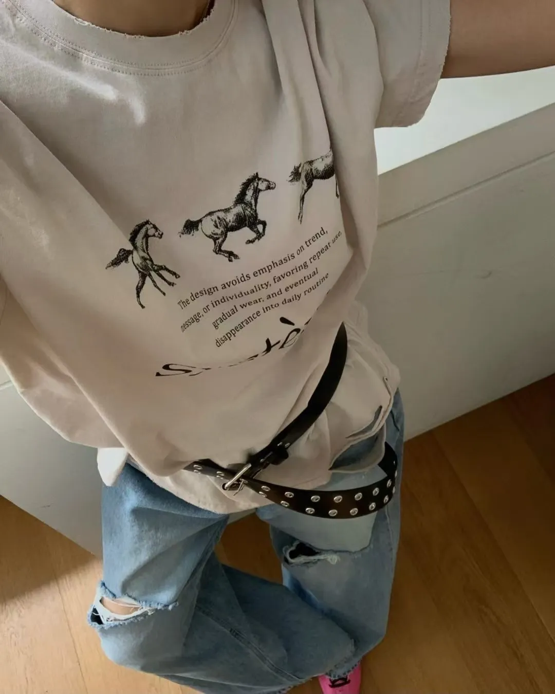 26DG17 馬馬破壞割破中長版短T 4色