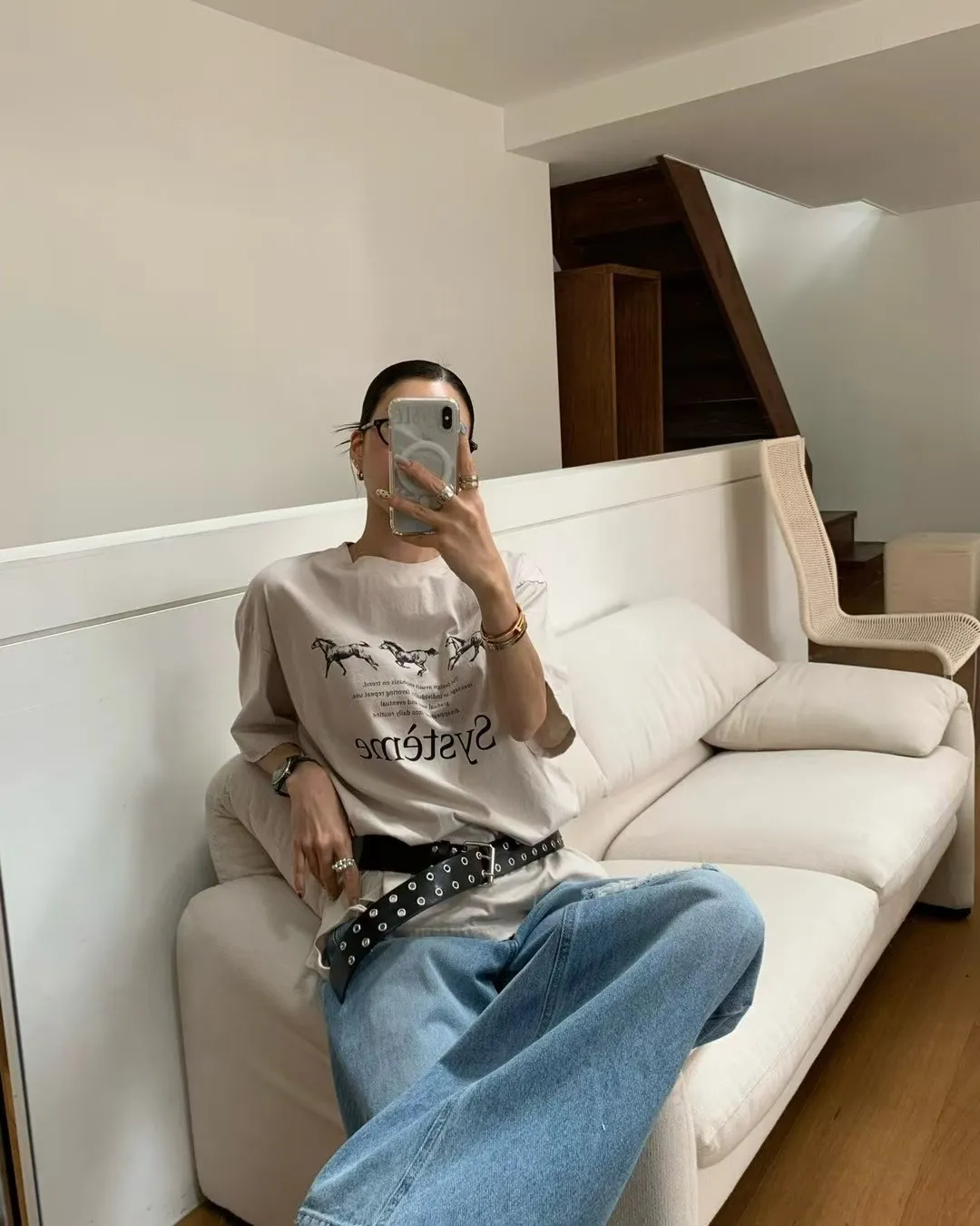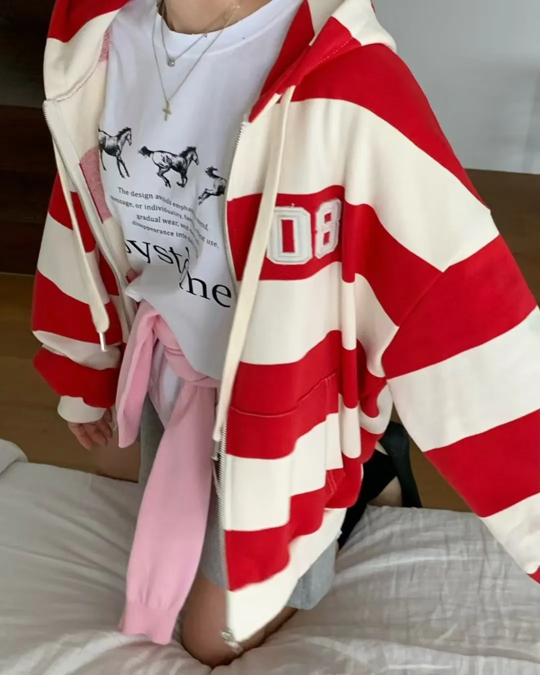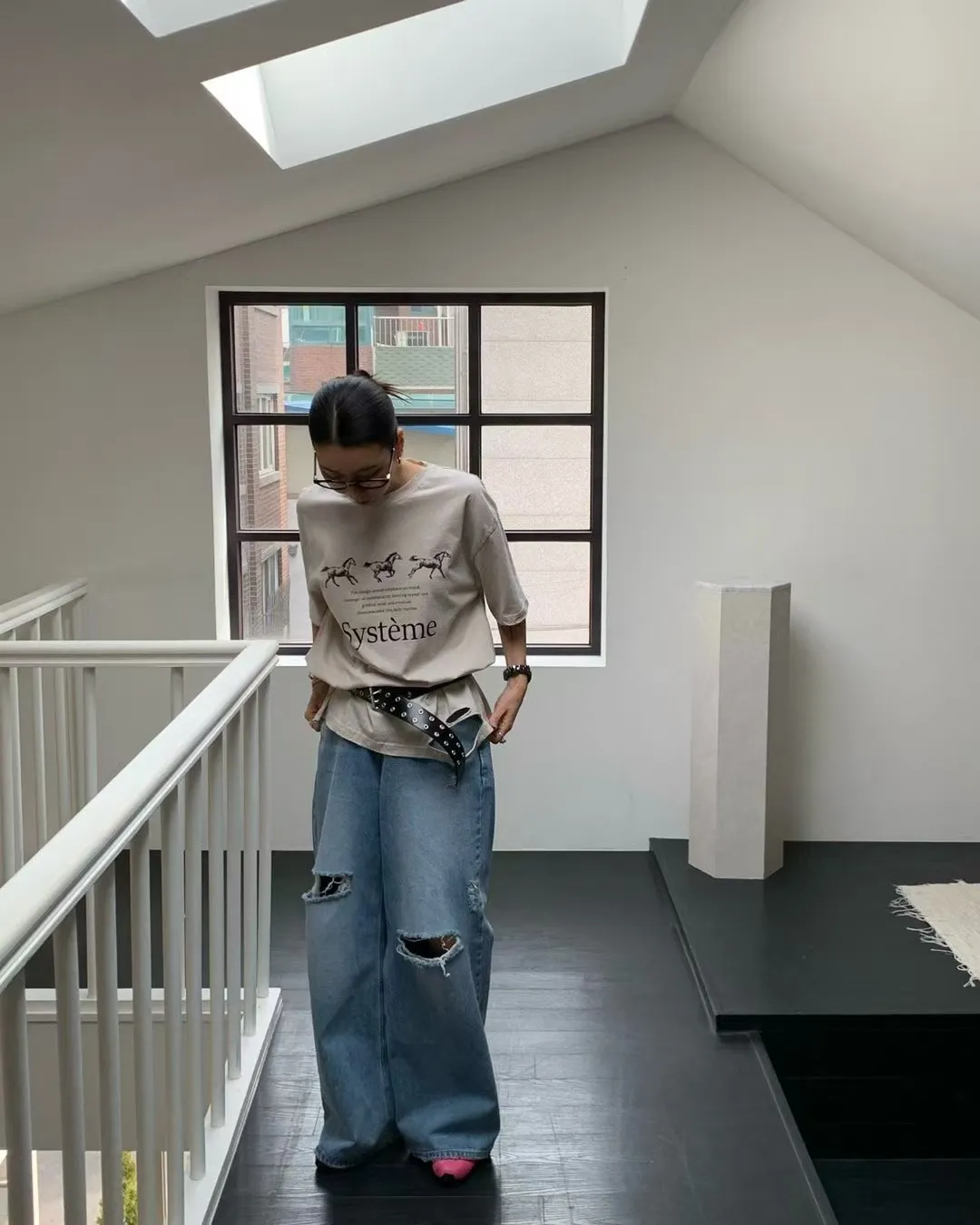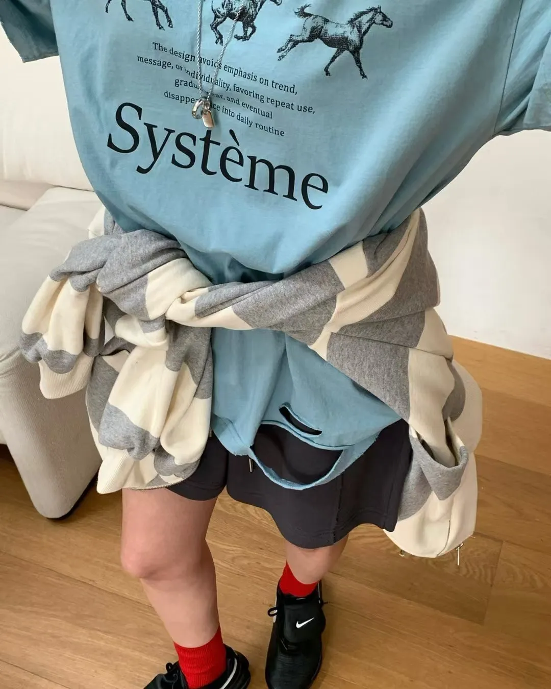 26DG17 馬馬破壞割破中長版短T 4色