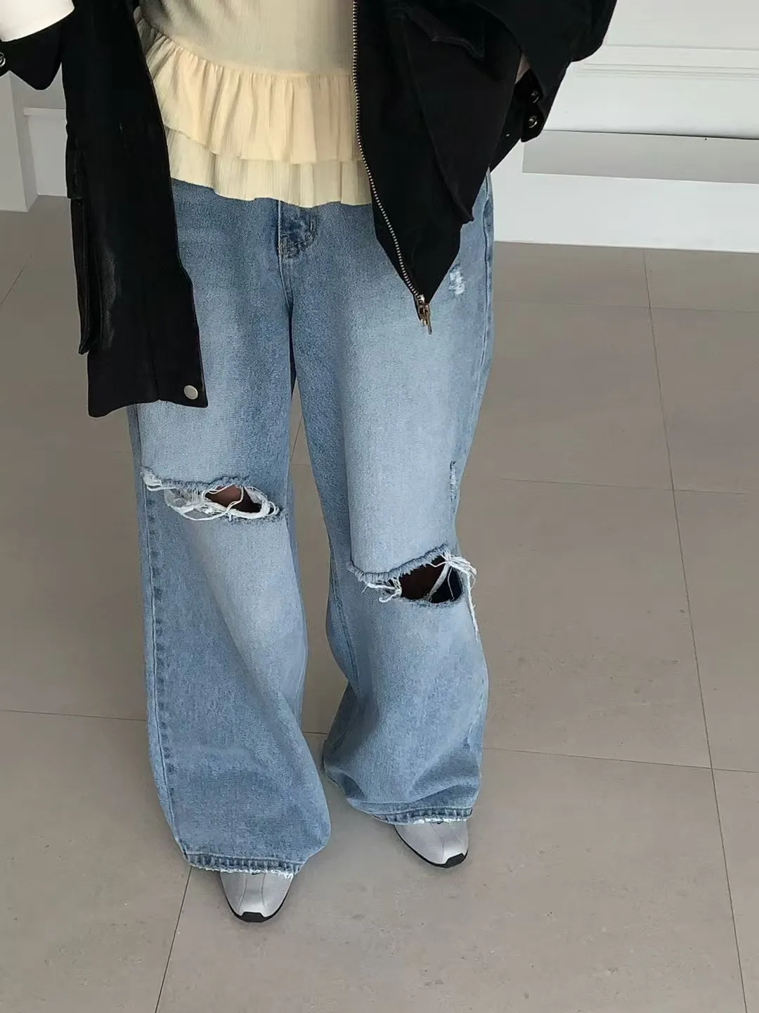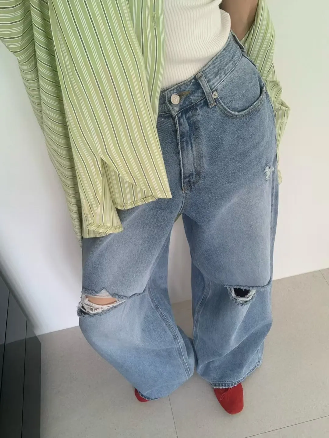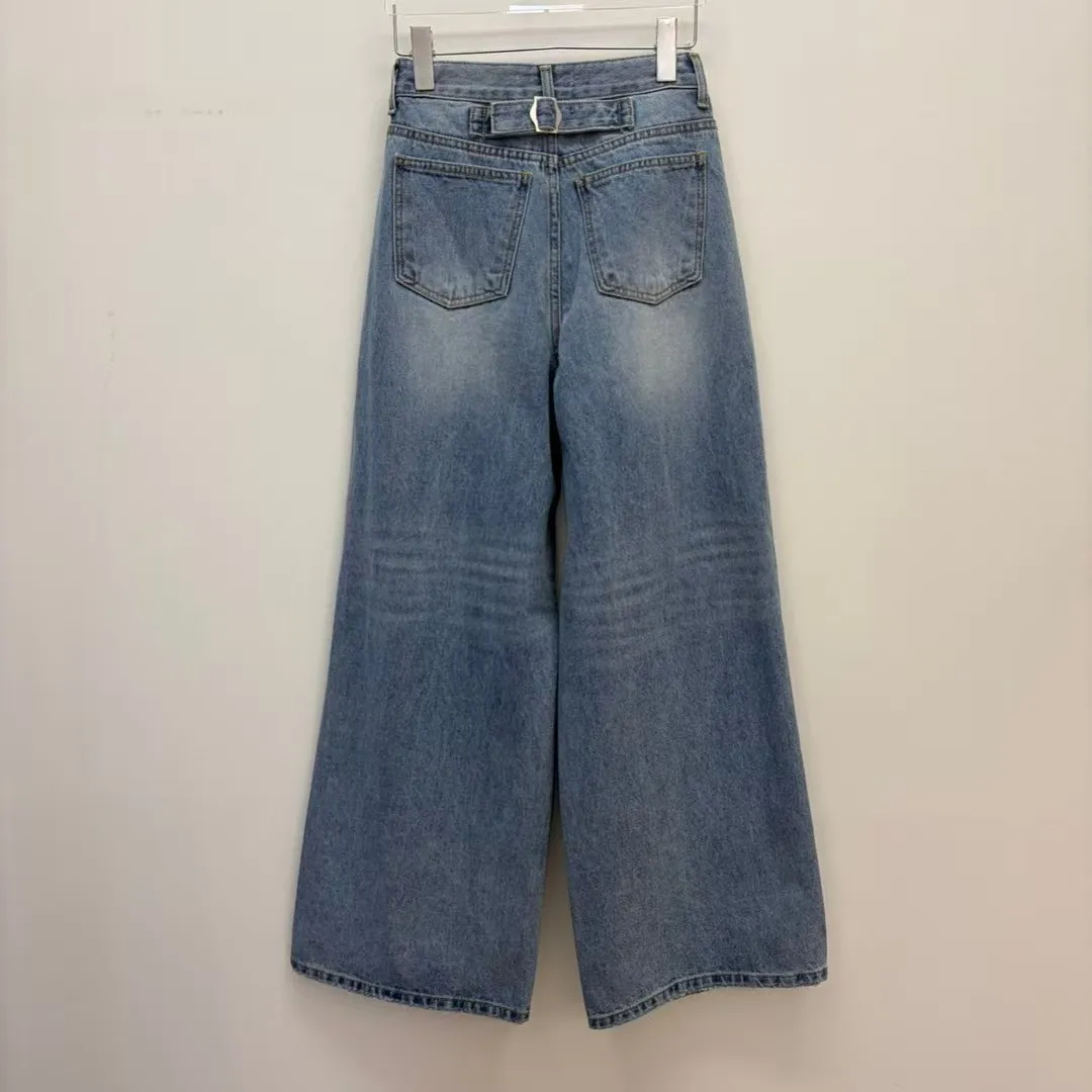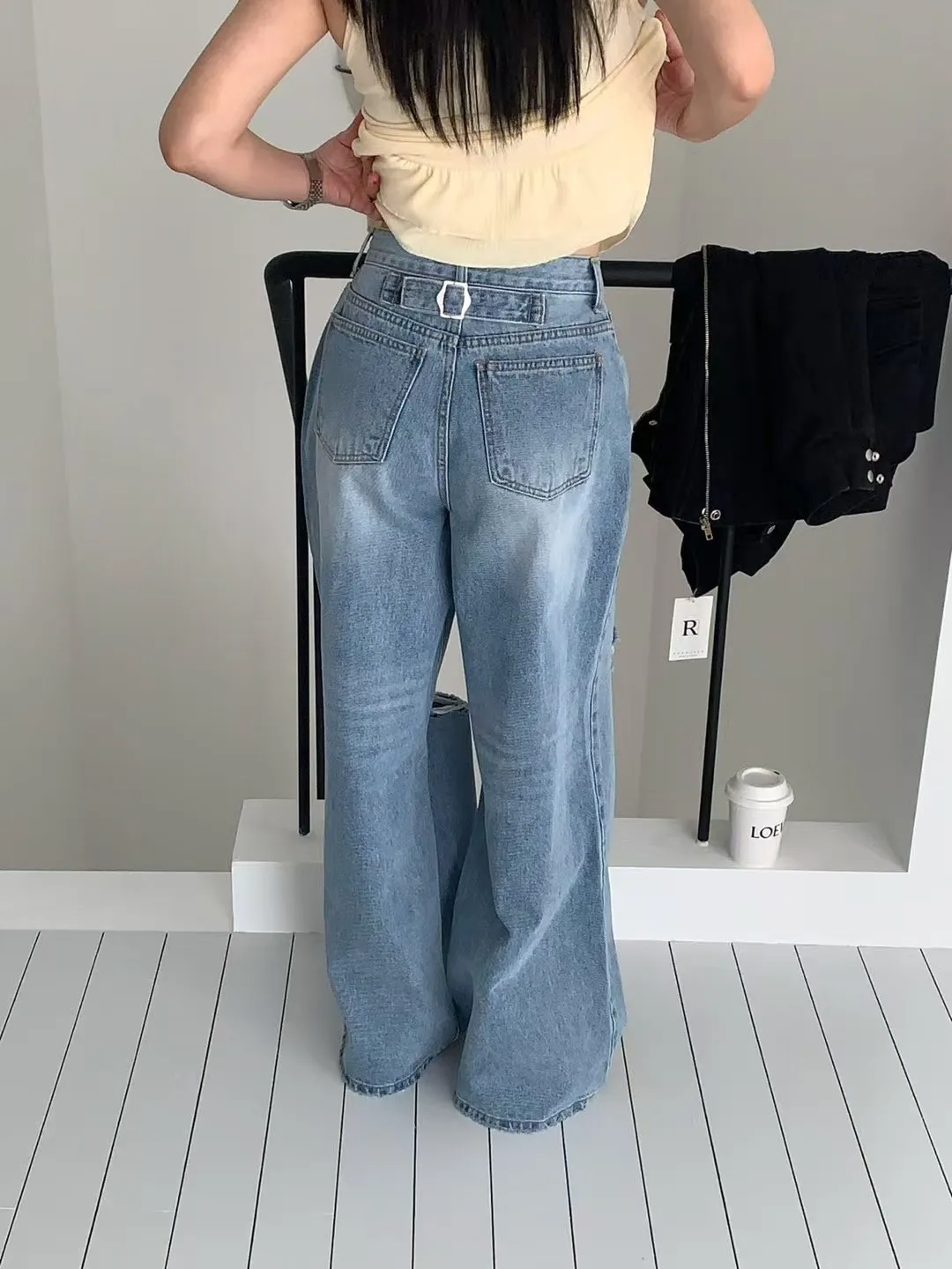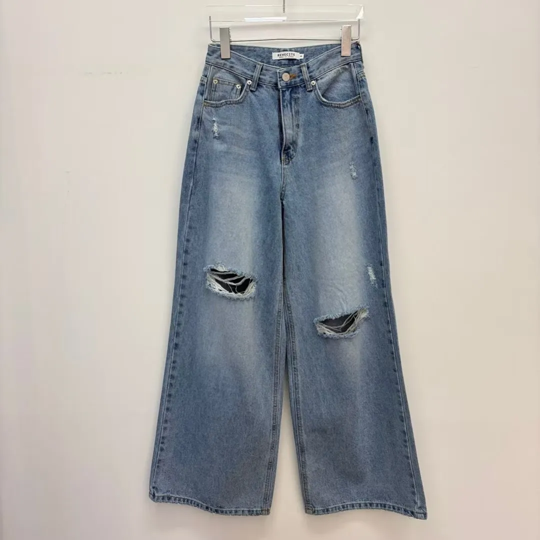 26DG21 破膝後臀扣中腰牛仔長褲 SML