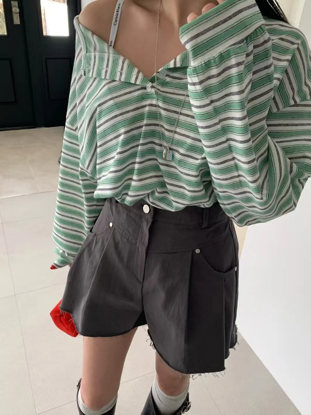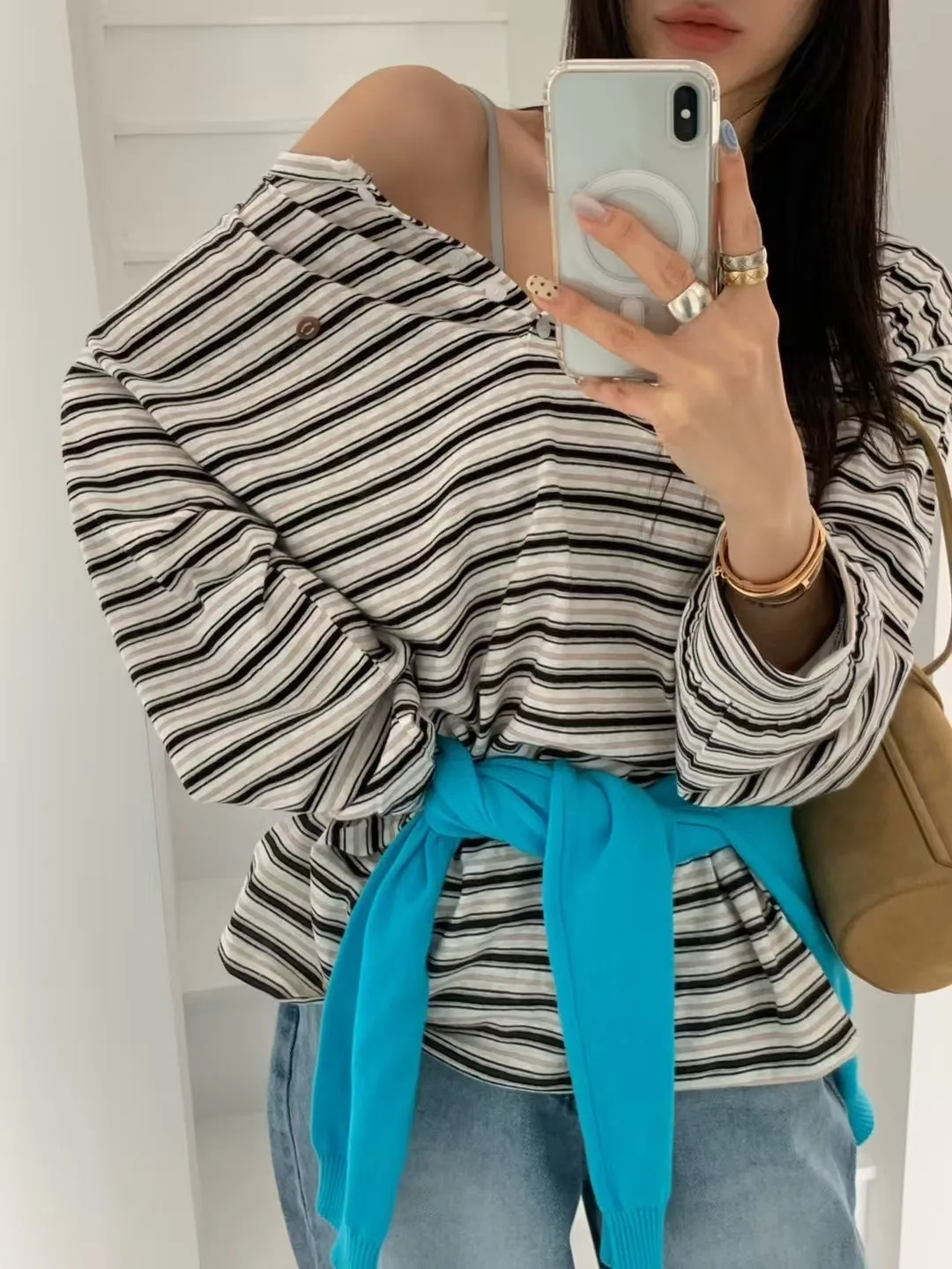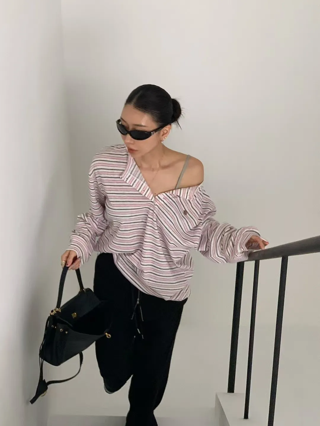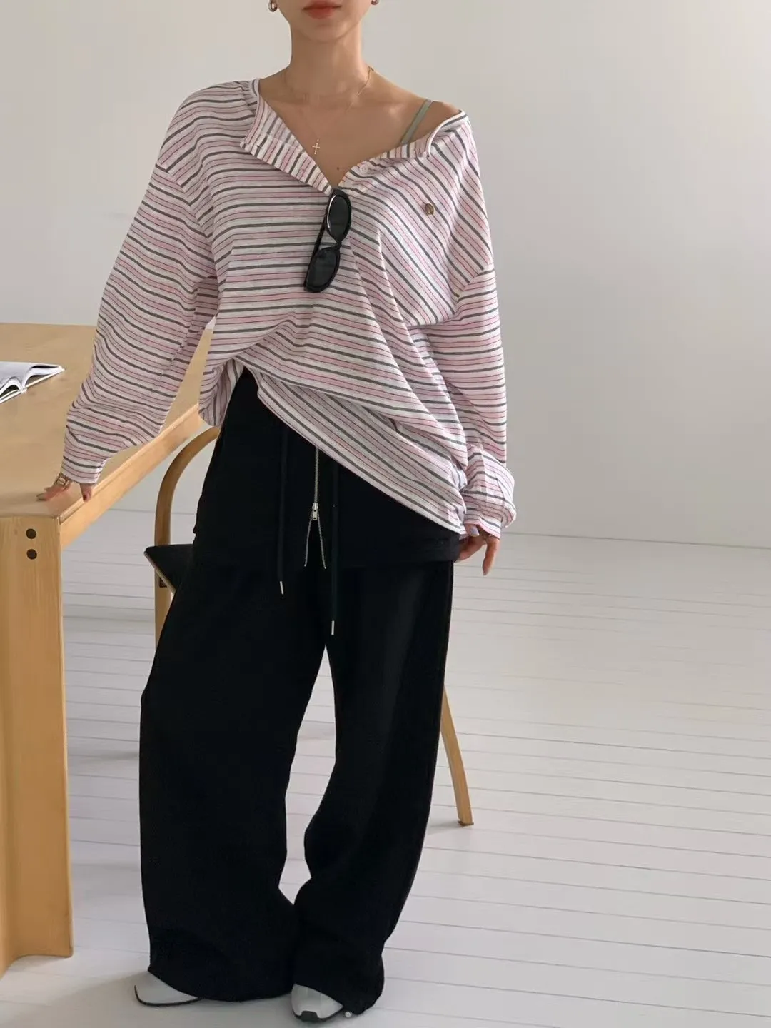 27DG27 條紋防曬排扣長T 3色