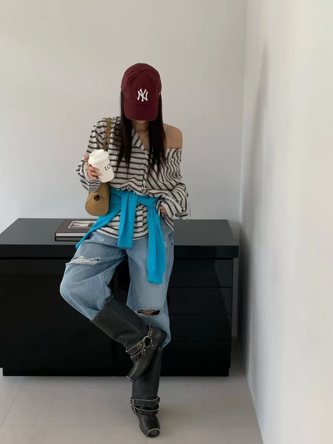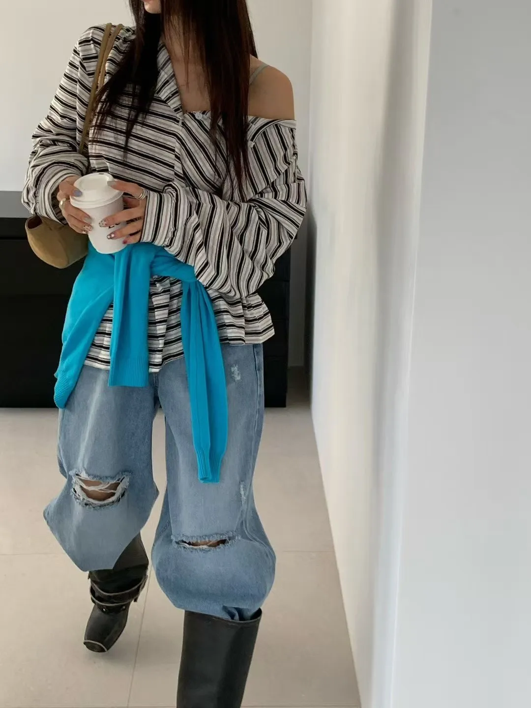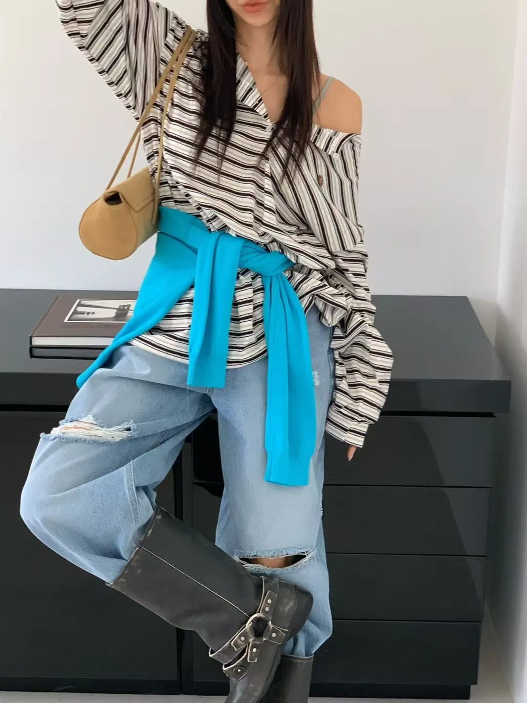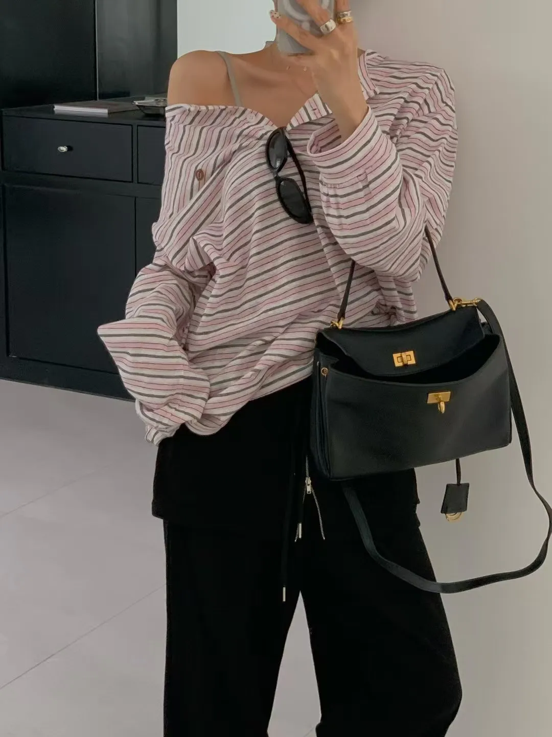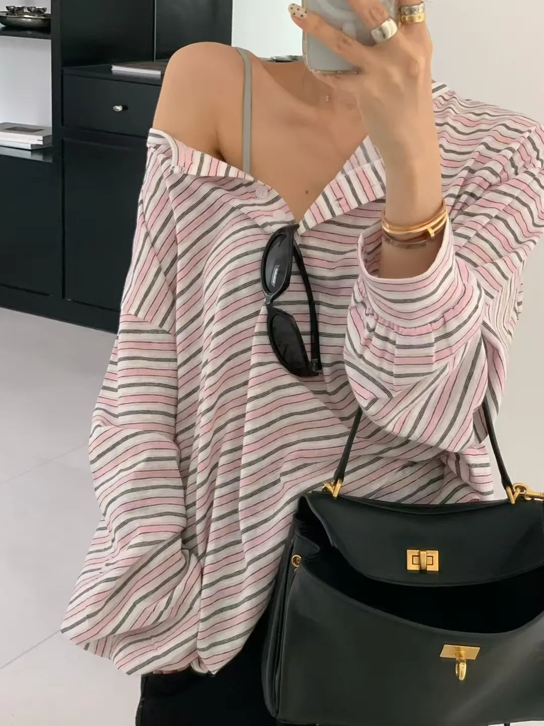 27DG27 條紋防曬排扣長T 3色