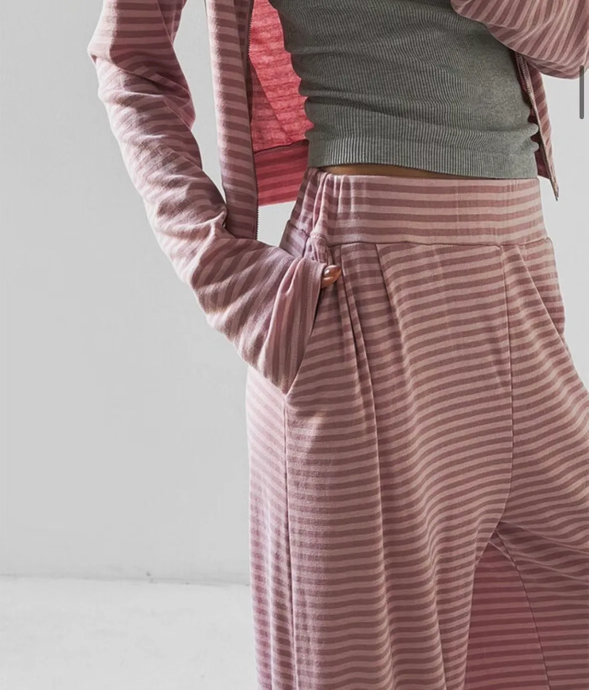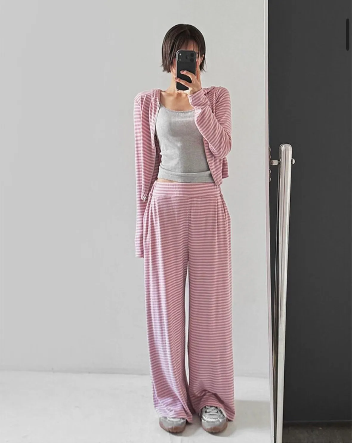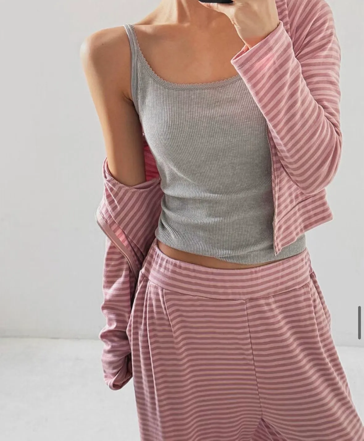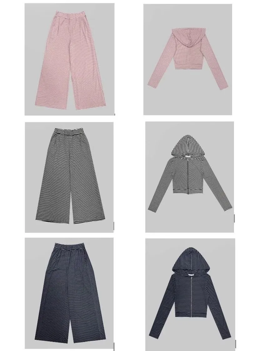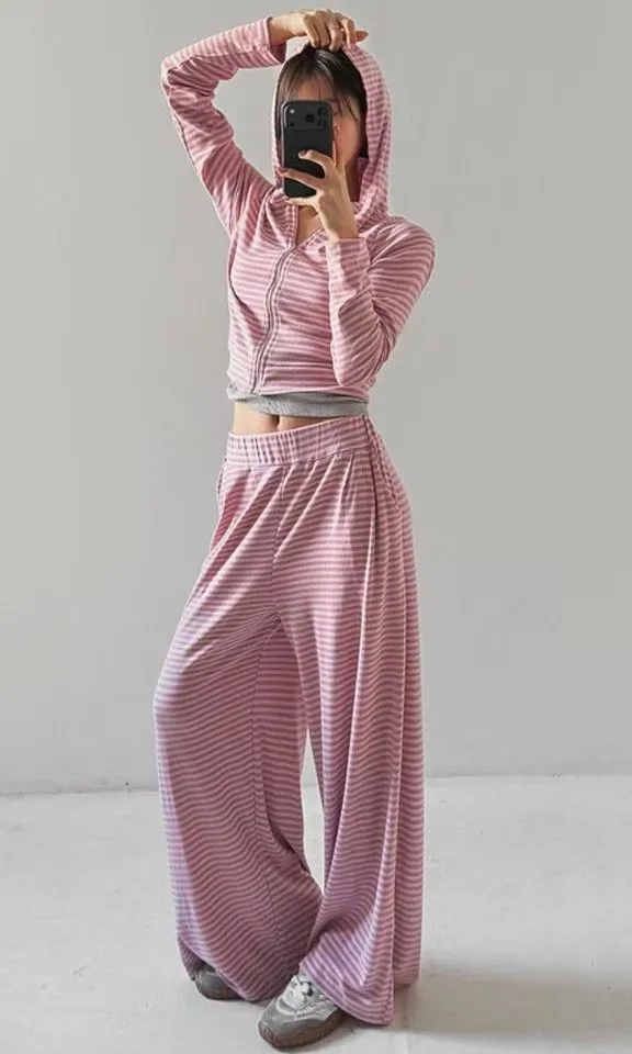 26DH08 莫代爾軟棉條紋連帽外套+長褲 set 3色
