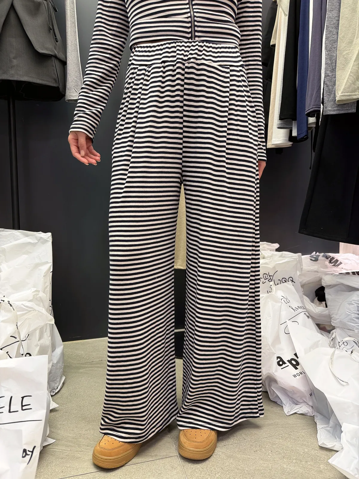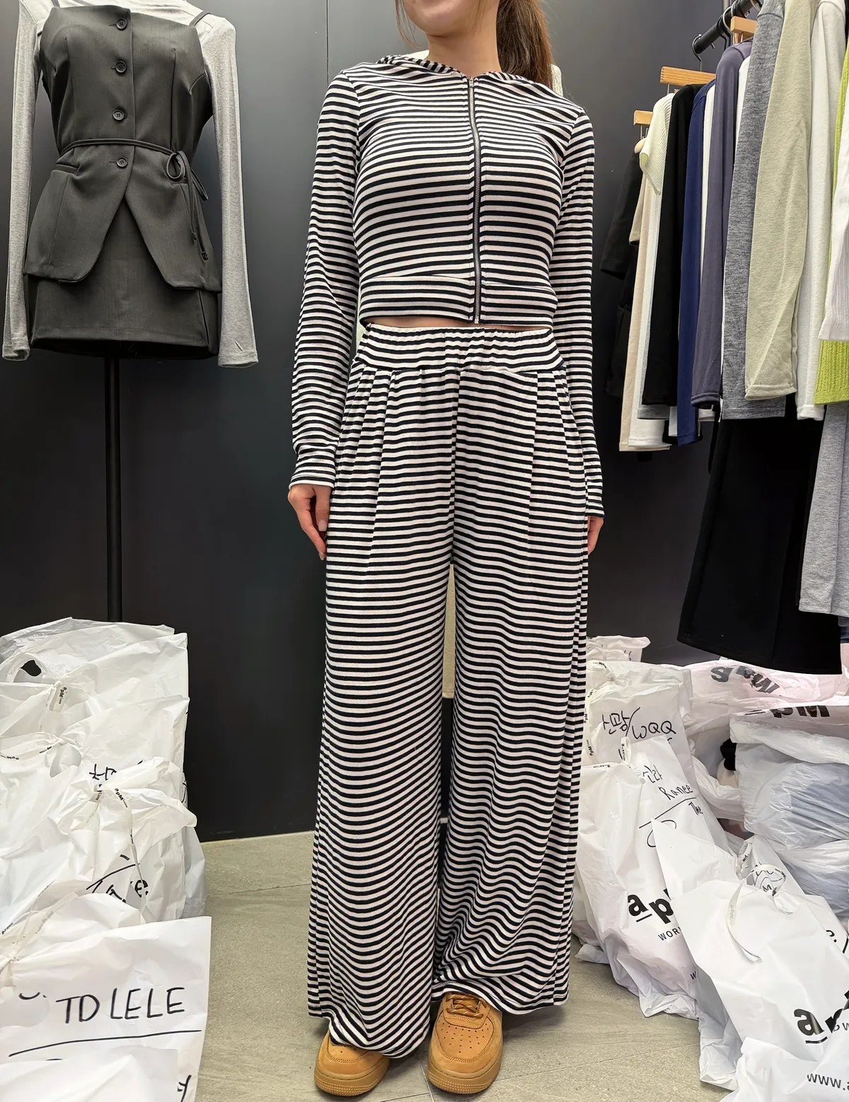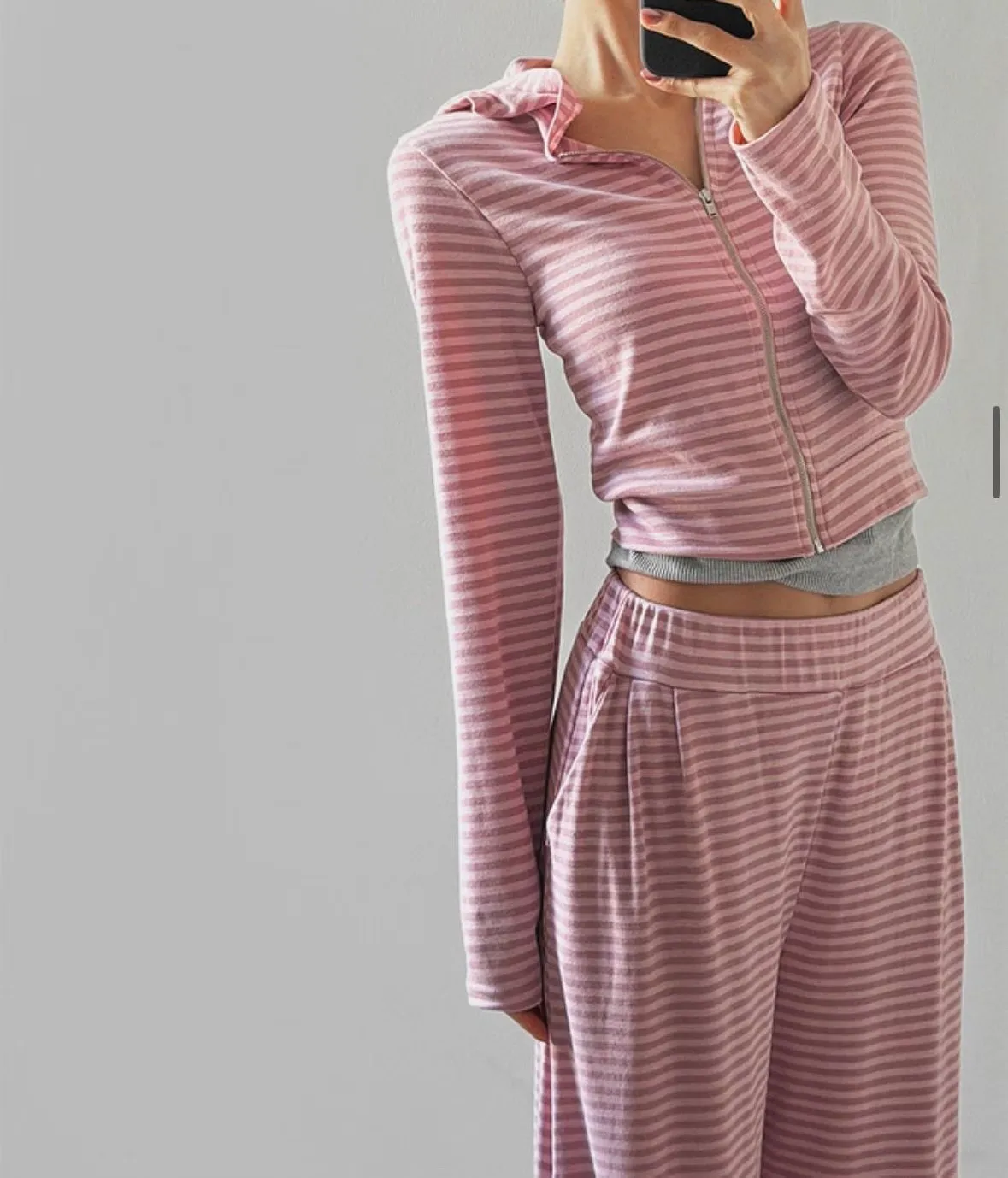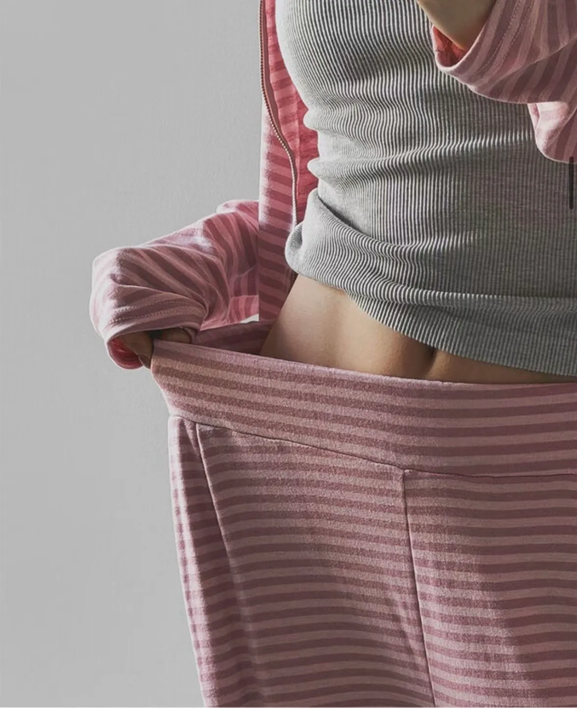 26DH08 莫代爾軟棉條紋連帽外套+長褲 set 3色