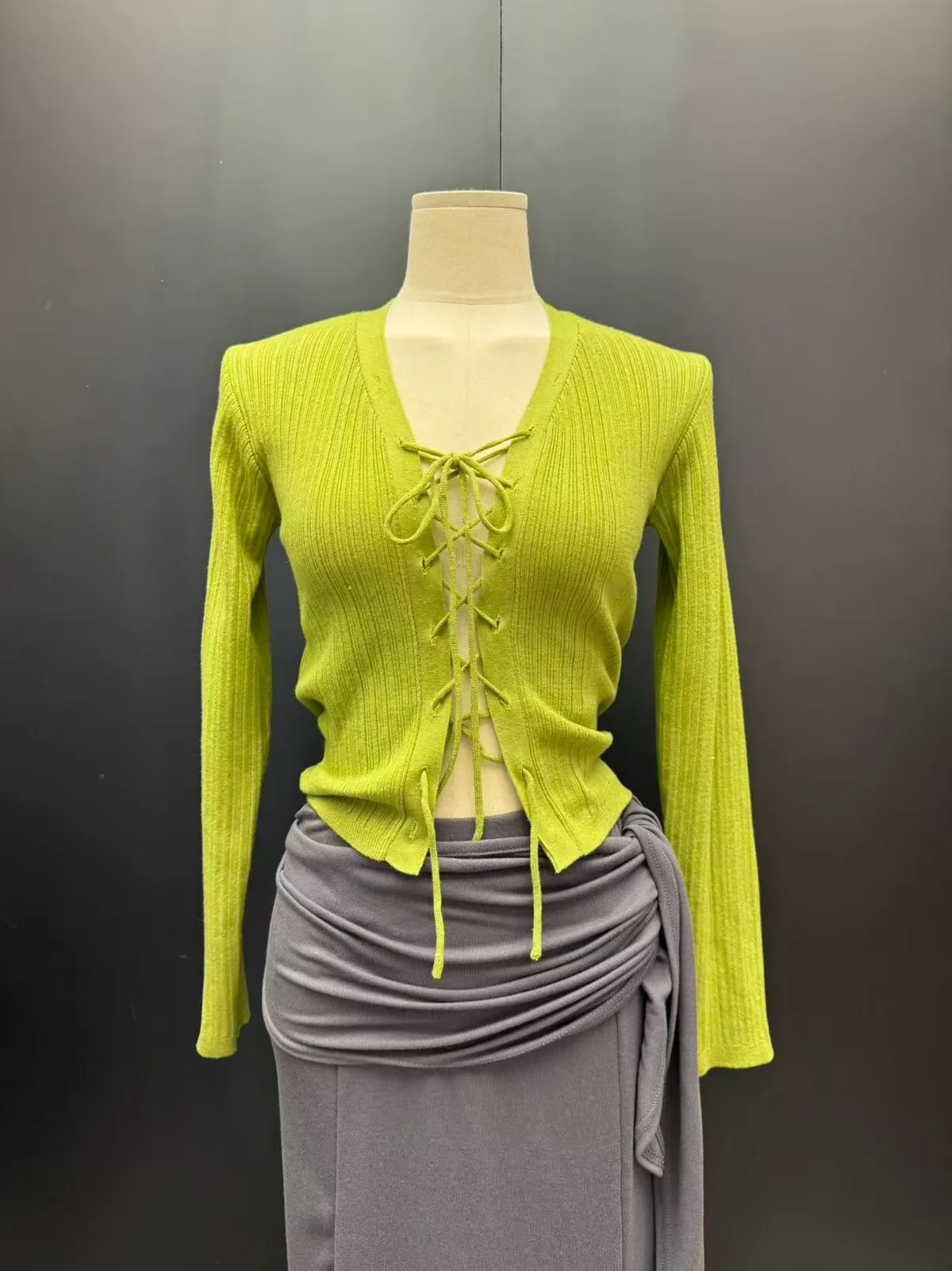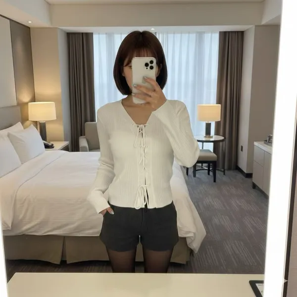 26DH12 綁繩羅紋外罩上衣 4色