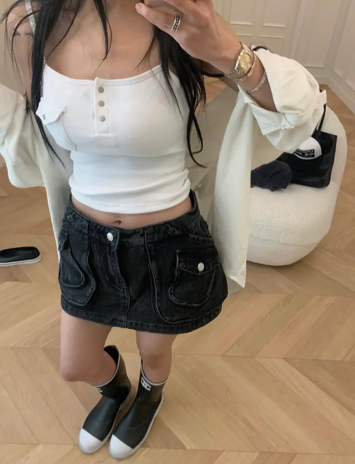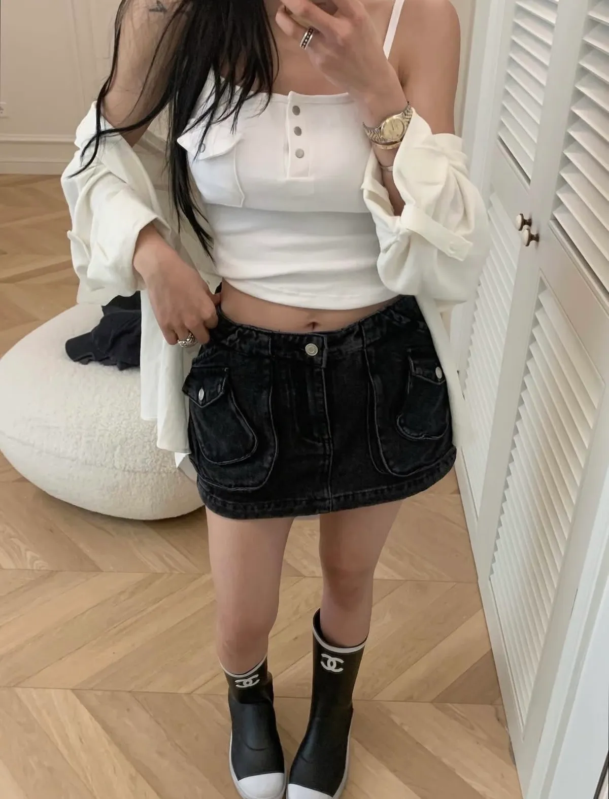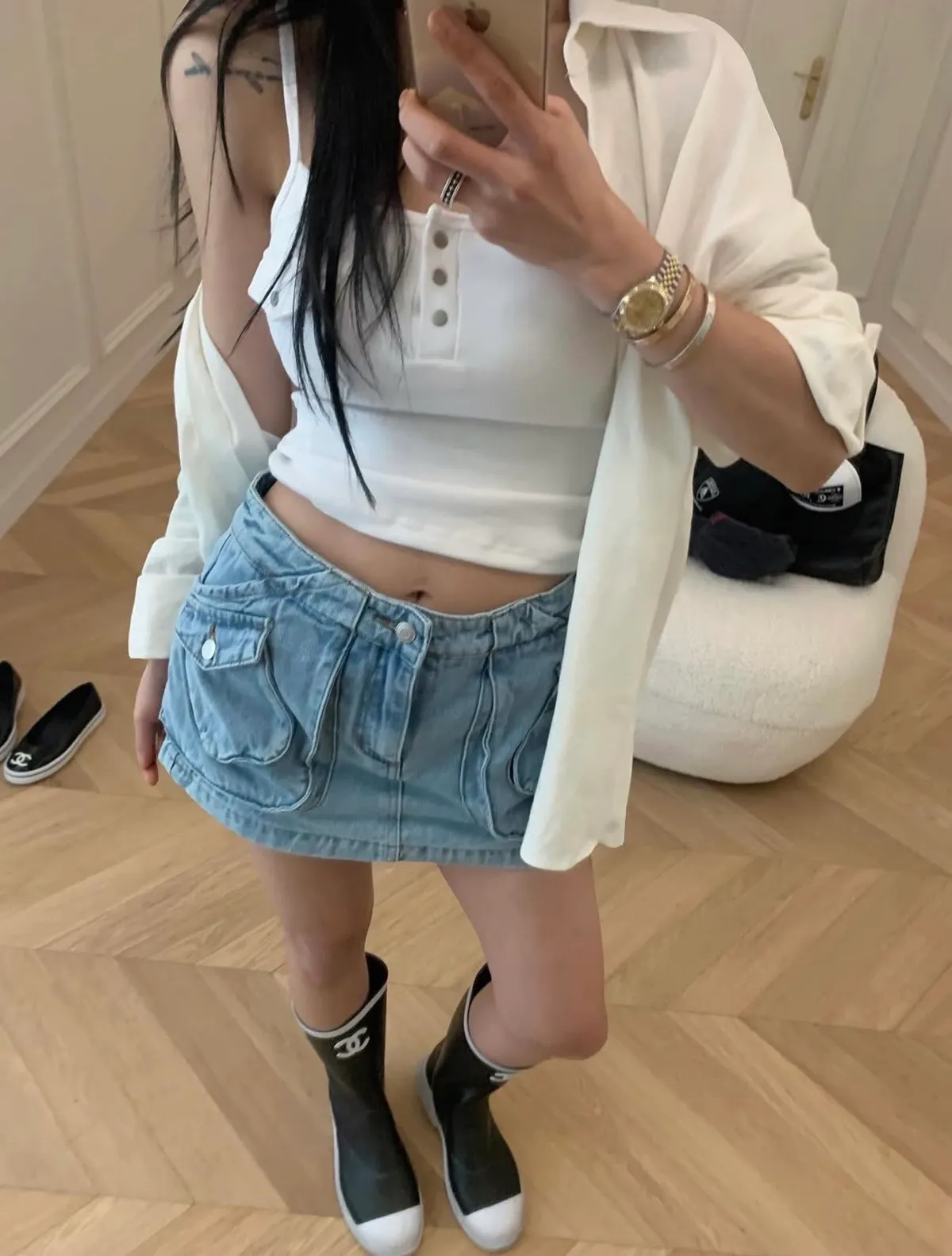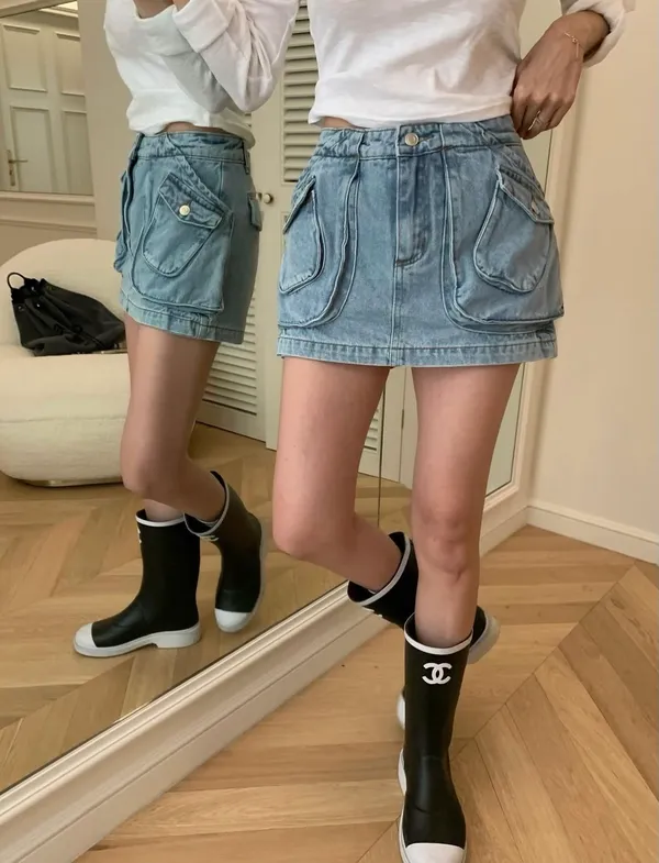 26DI04 中腰工裝口袋牛仔短褲裙 2色 SML