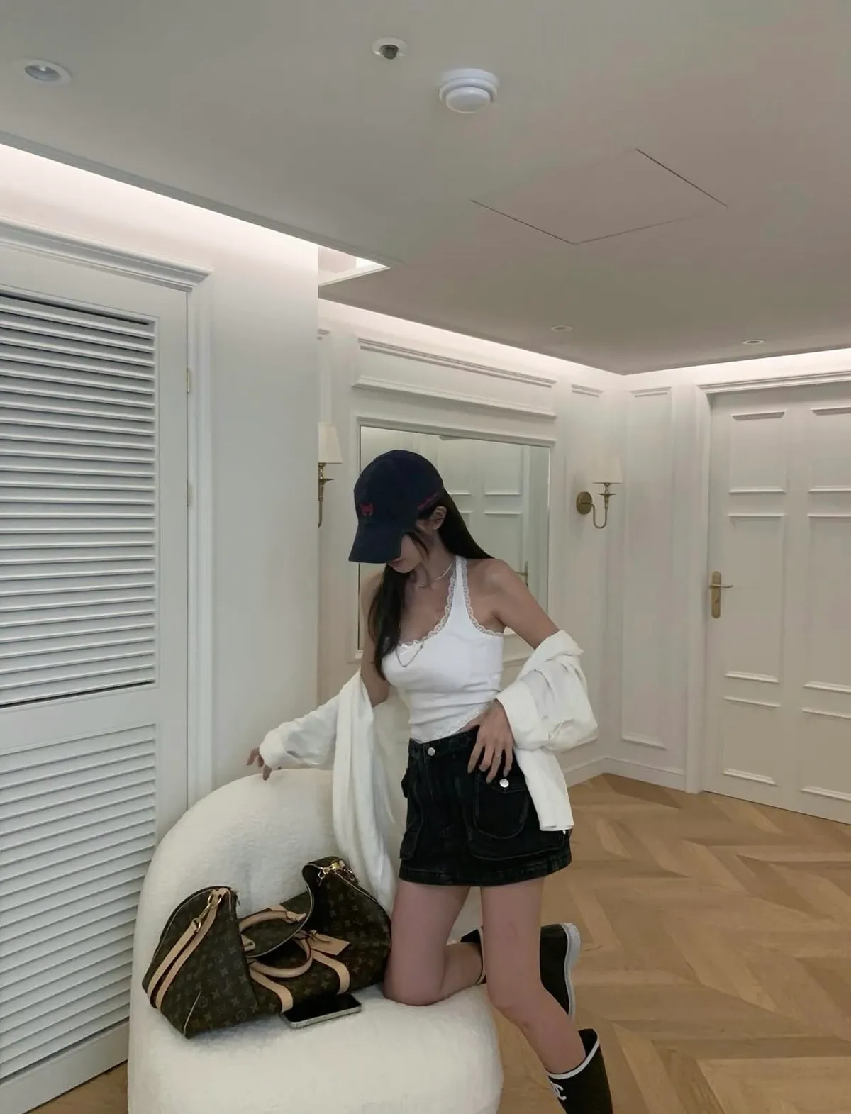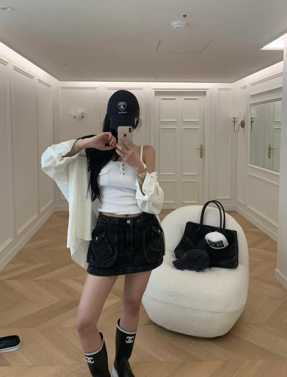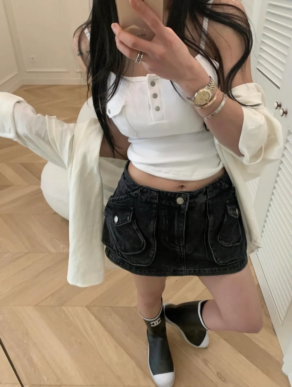 26DI04 中腰工裝口袋牛仔短褲裙 2色 SML