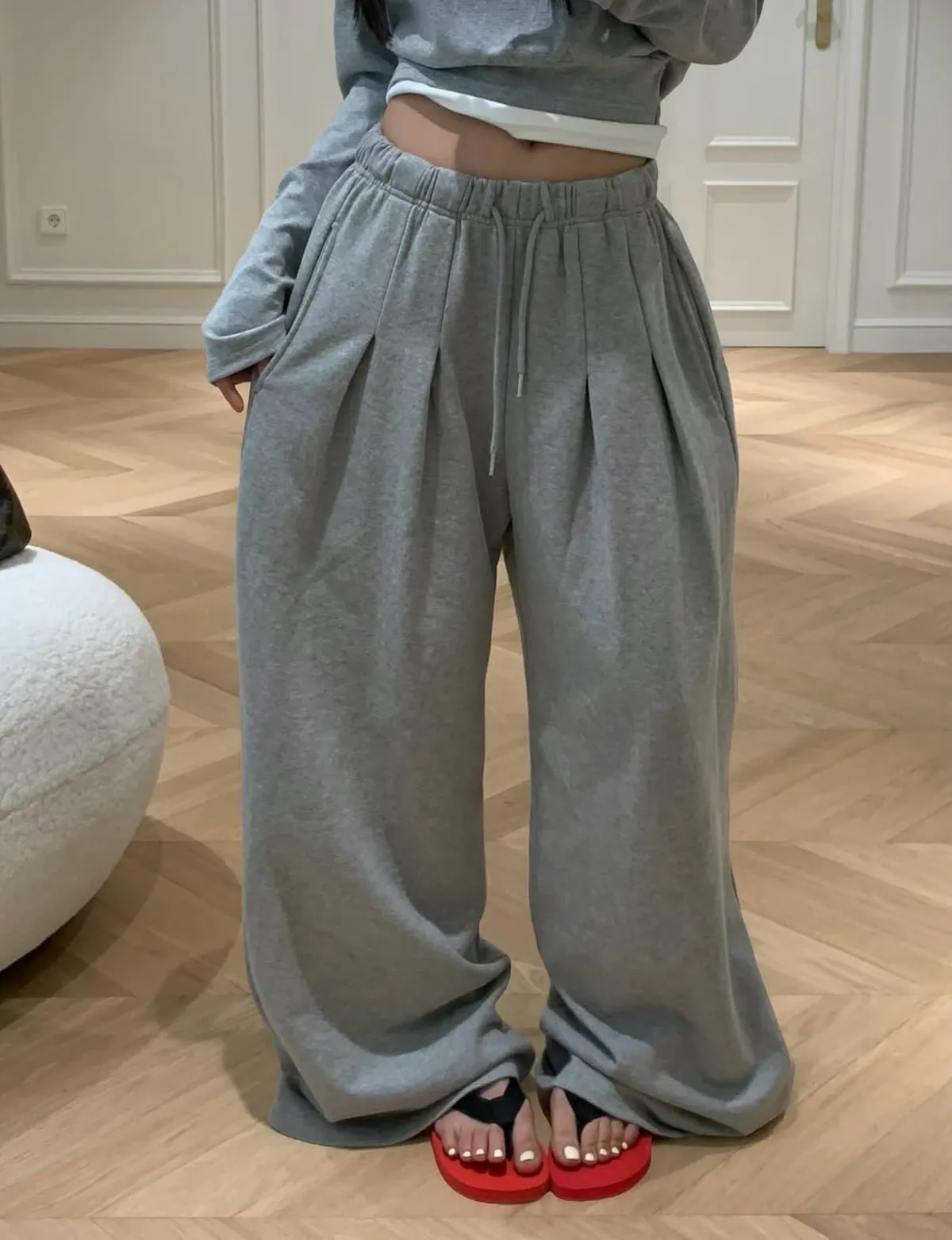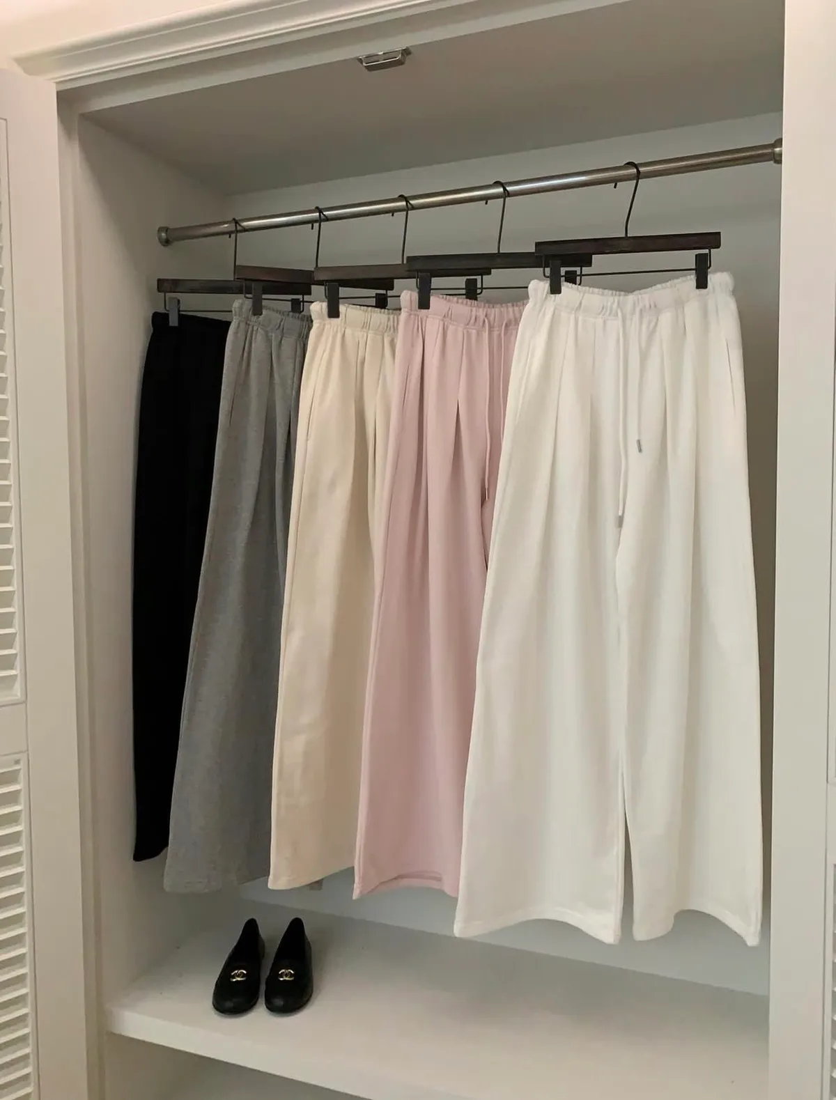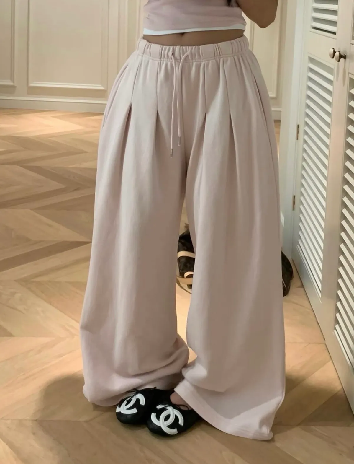 26DI23 多打褶薄毛巾棉寬褲 5色