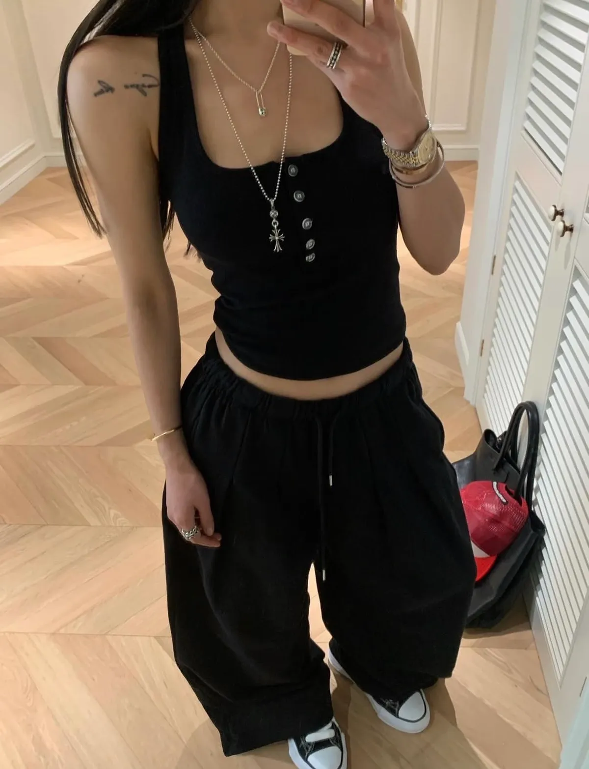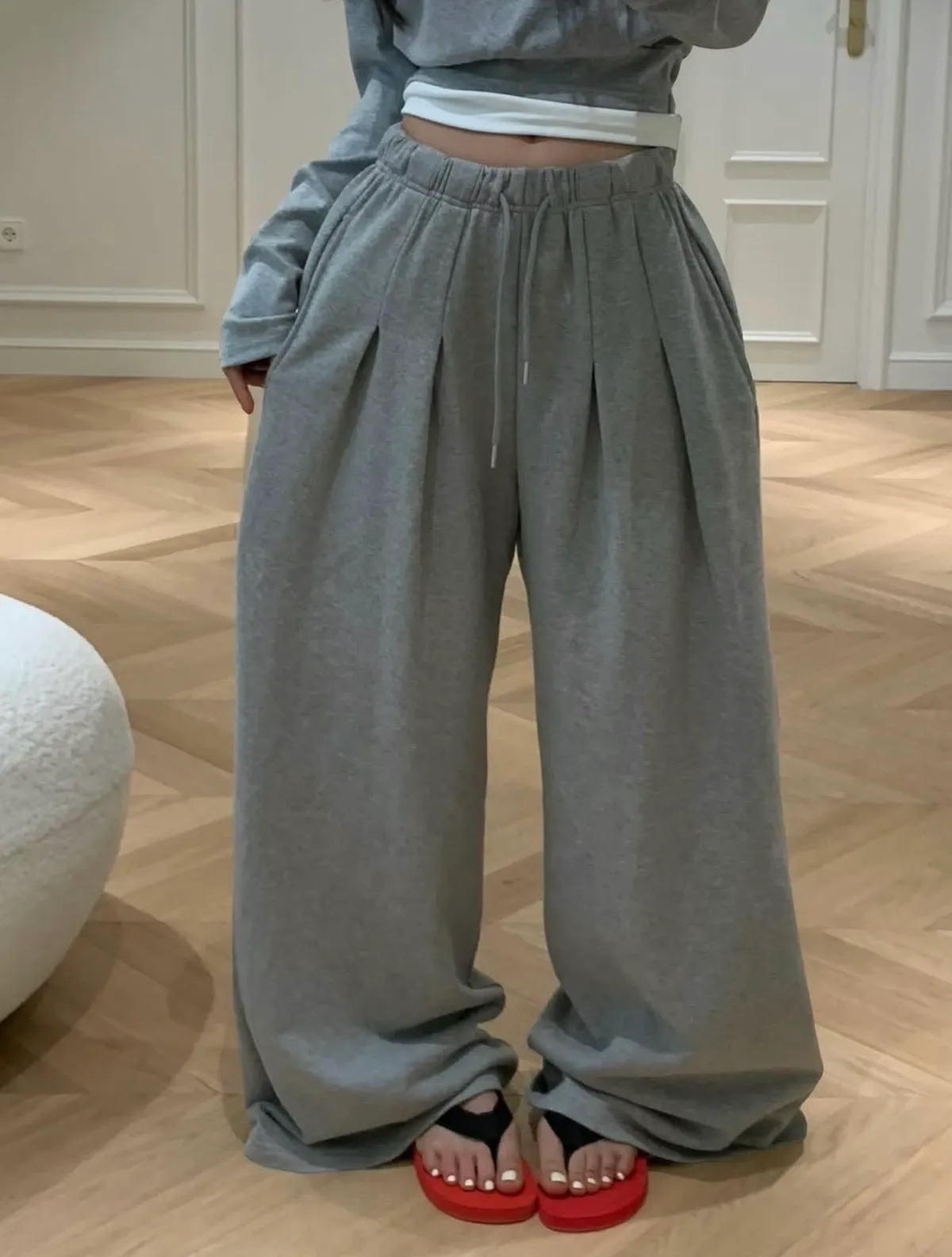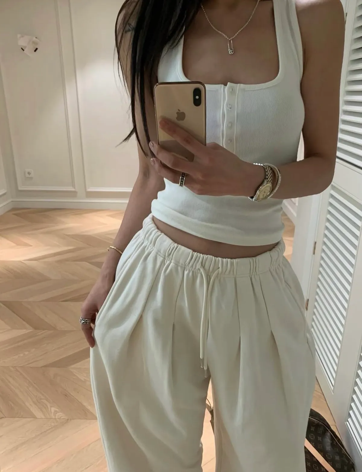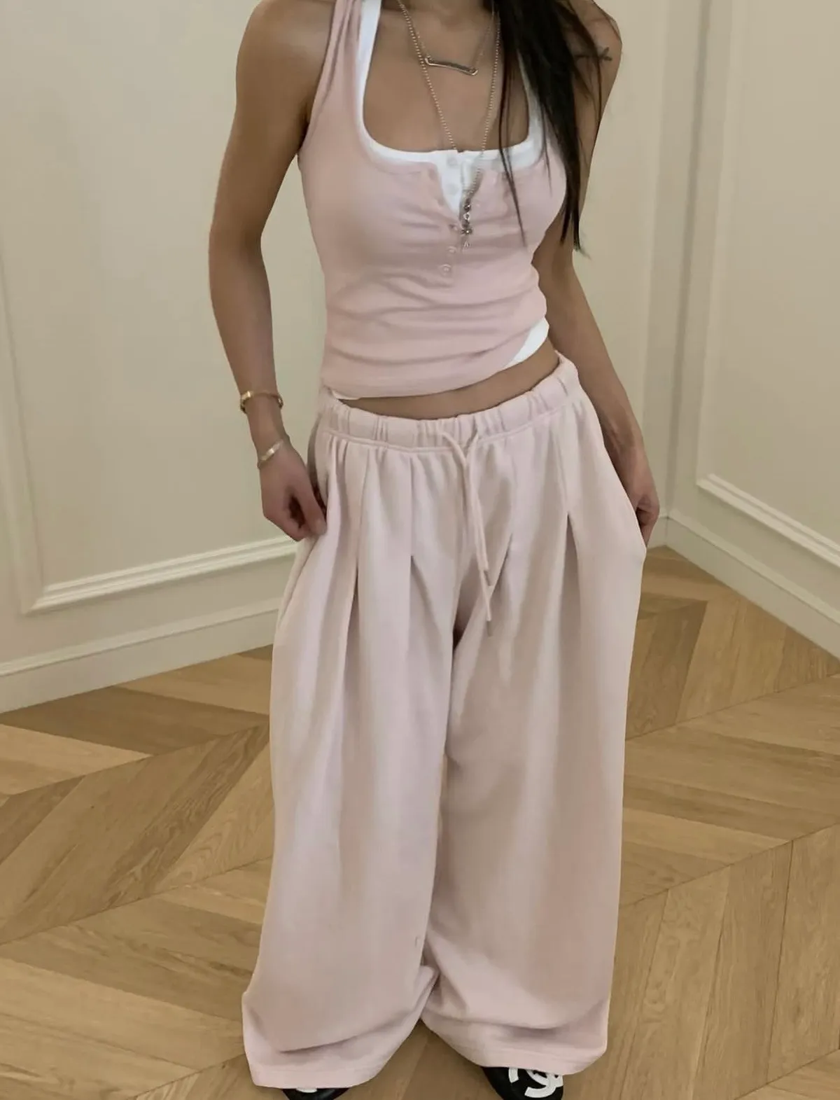 26DI23 多打褶薄毛巾棉寬褲 5色