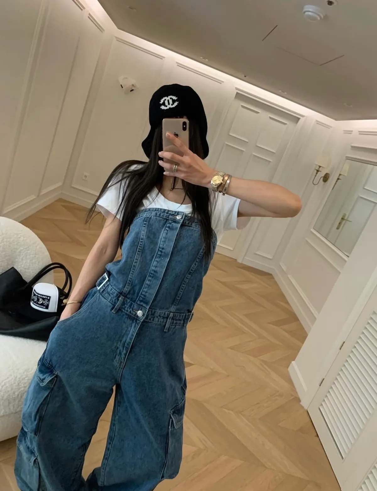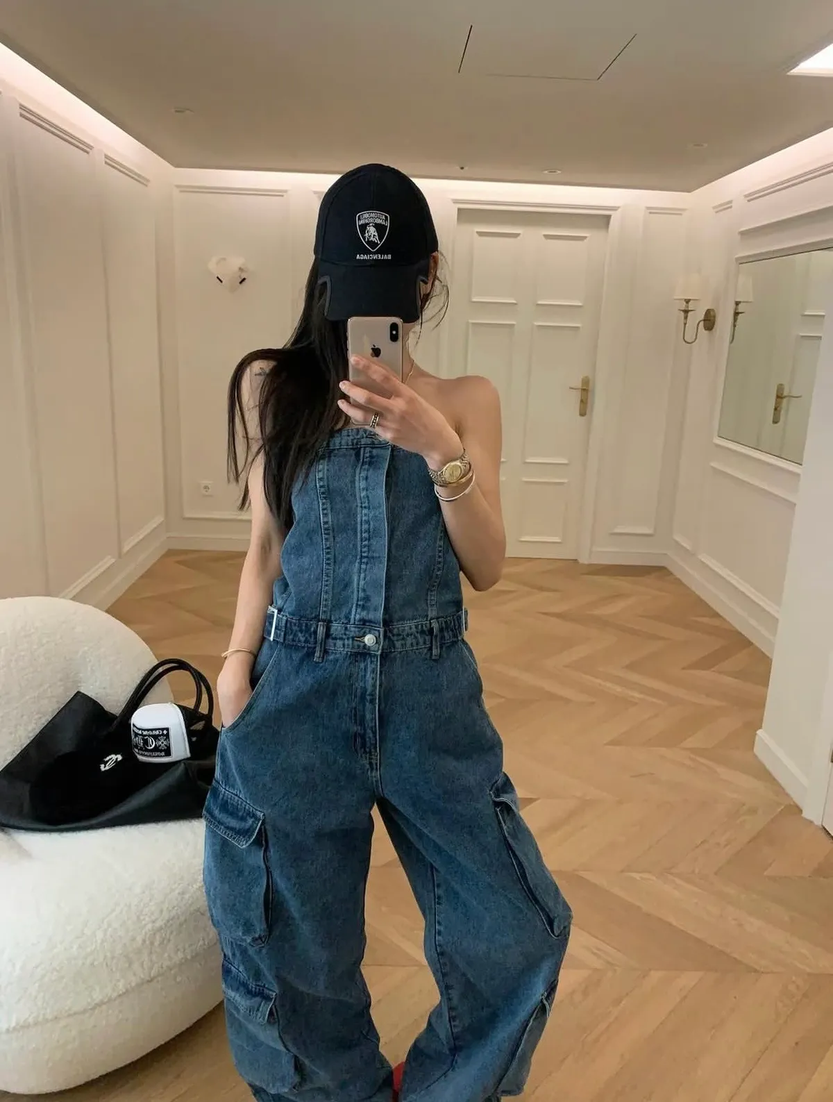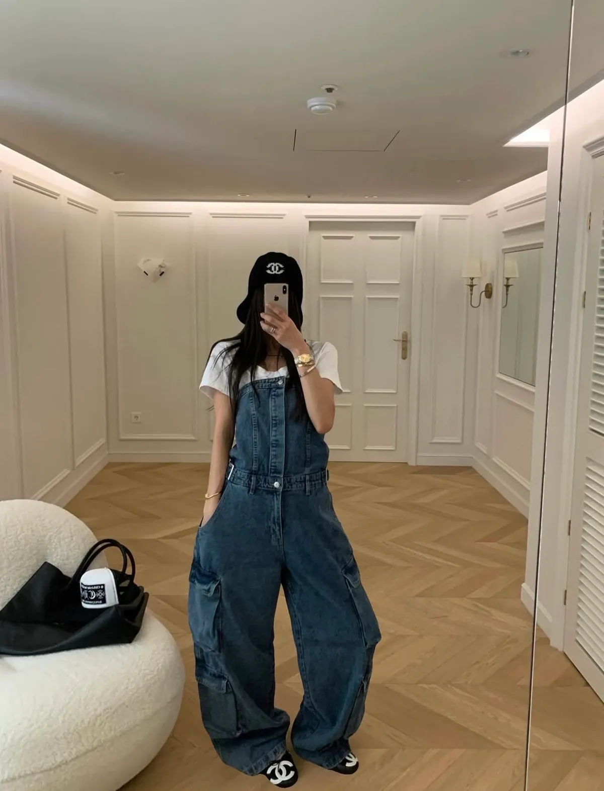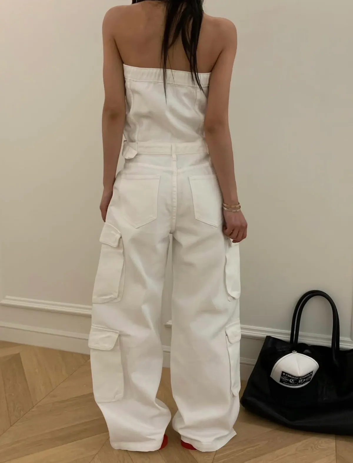 26DI32 平口連身收腰扣斜紋牛仔長褲 2色 SM