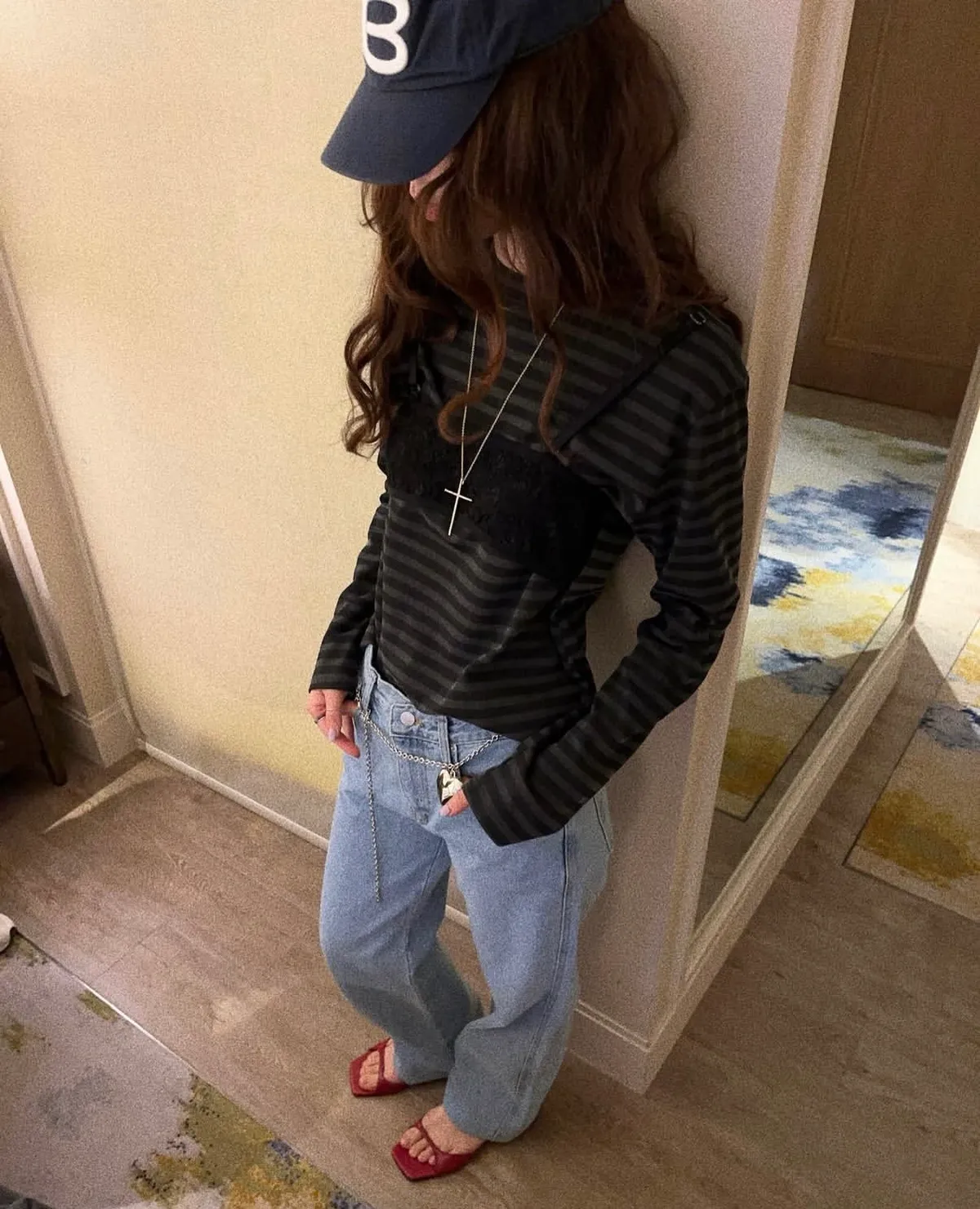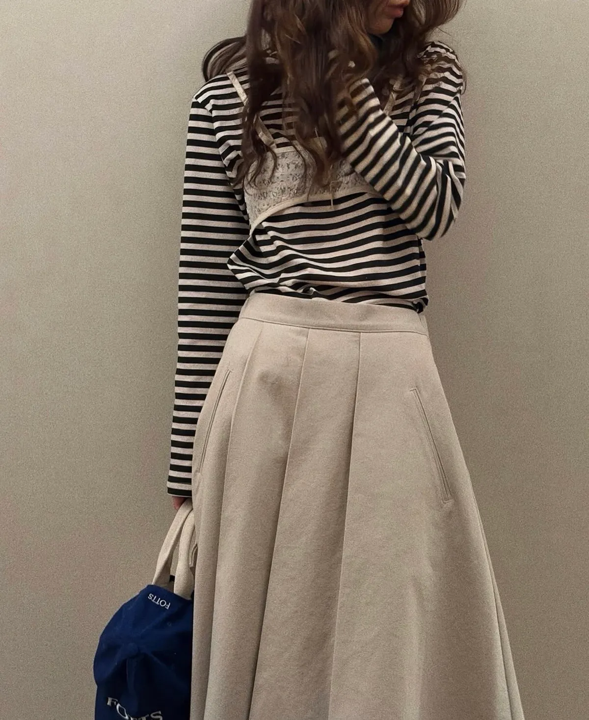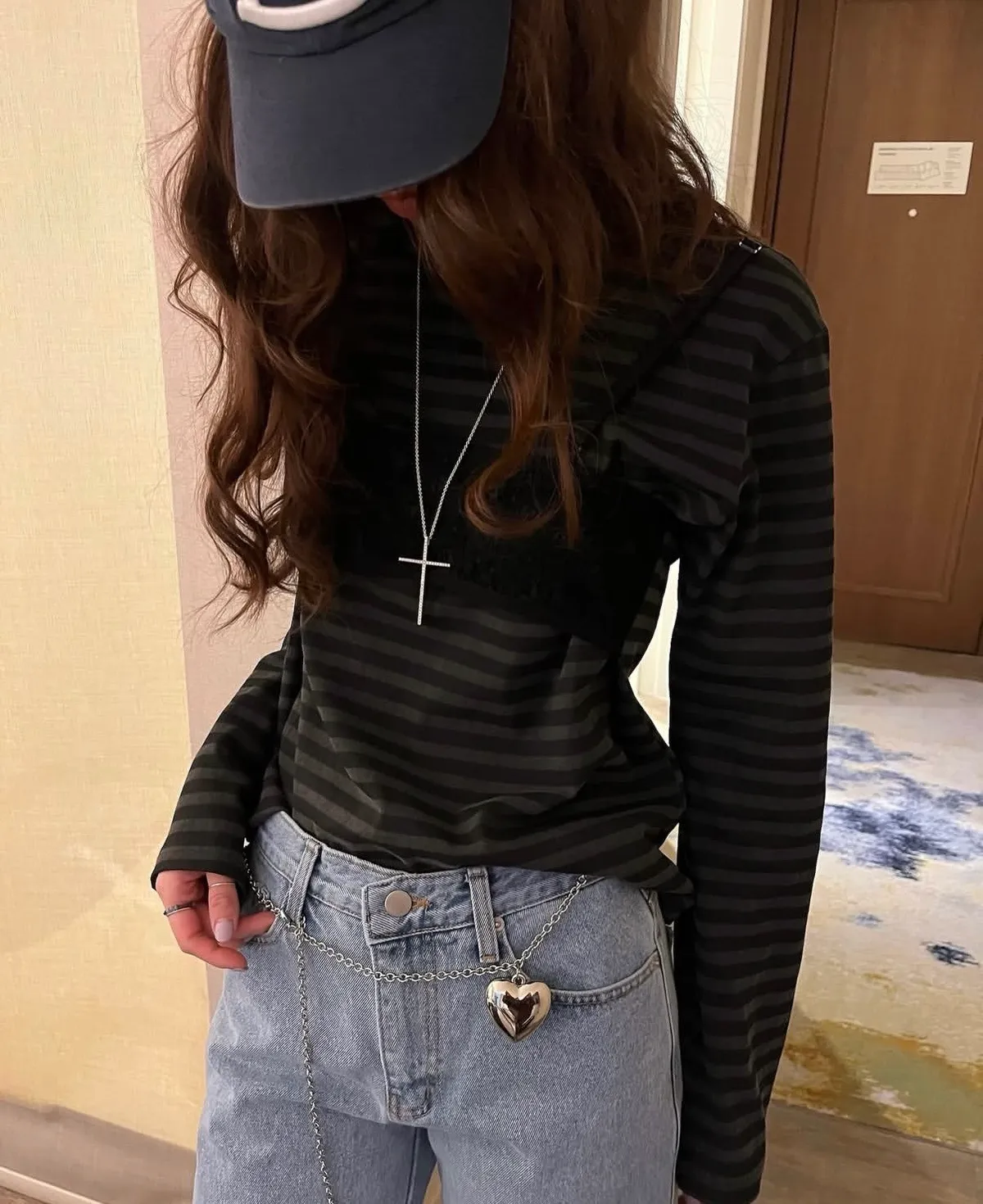 26DJ08 假兩蕾絲背心條紋長T 2色