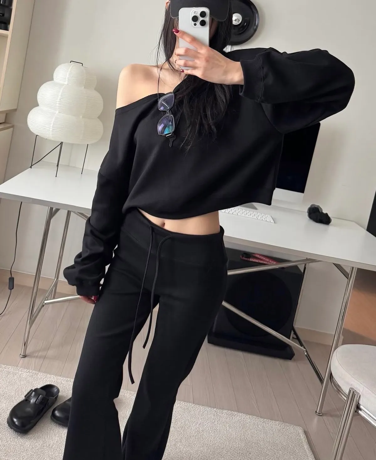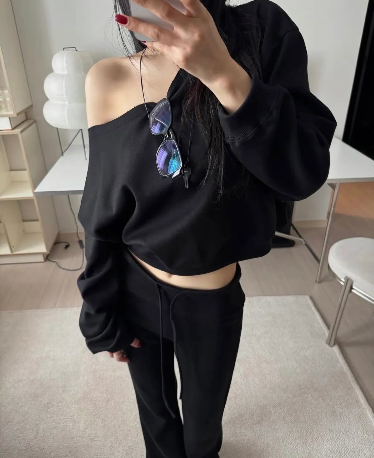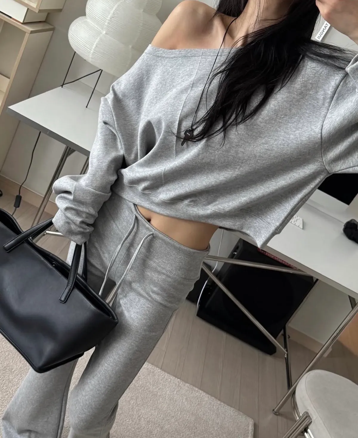 26DJ12 船領滑挺棉短版寬鬆大學T 3色