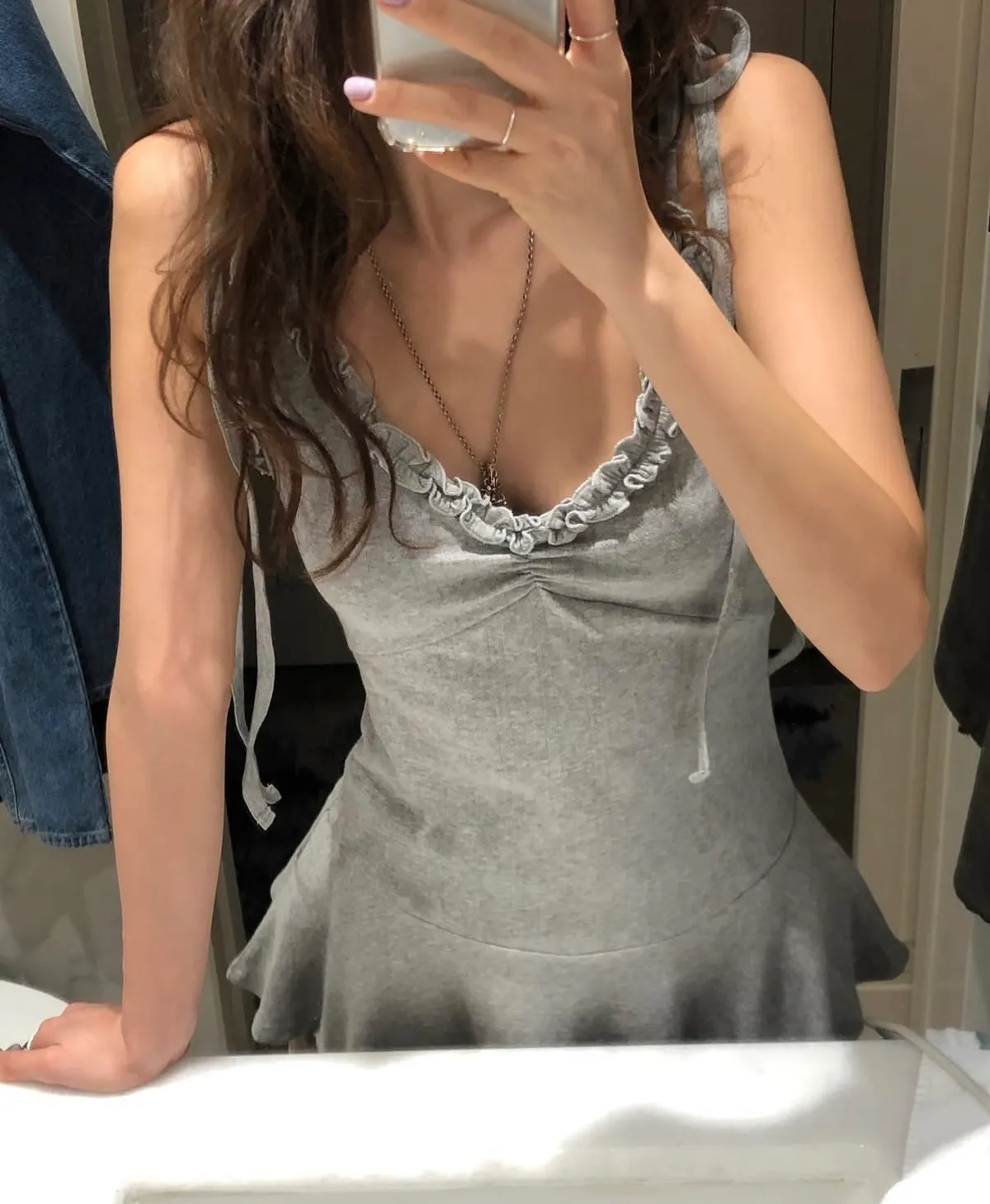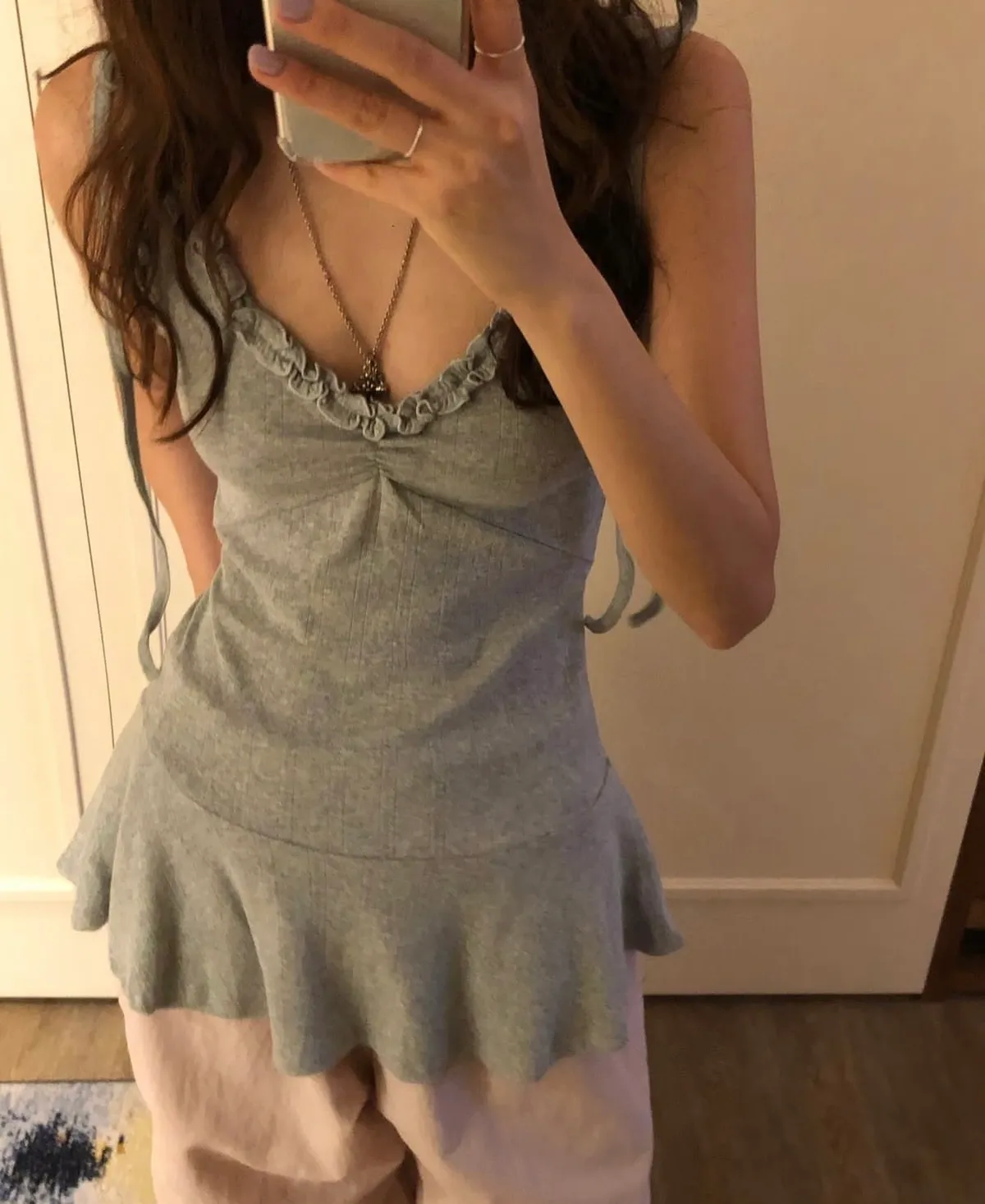 26DJ22 綁繩肩帶擠花V領上衣裙 3色