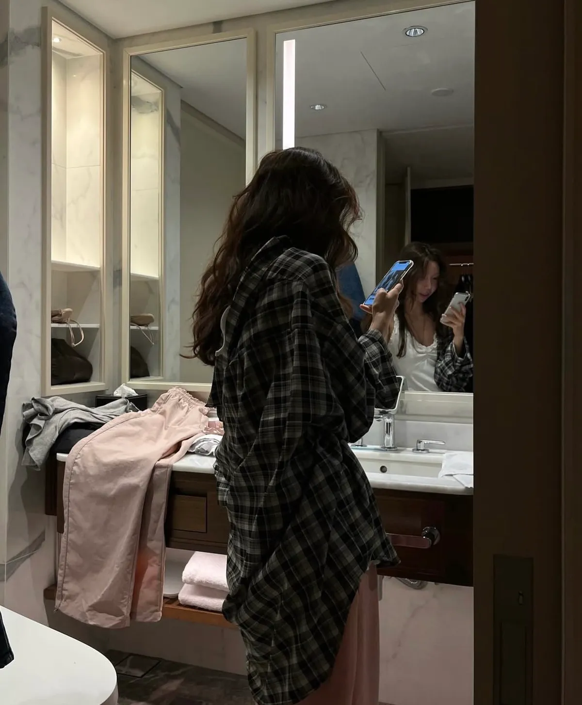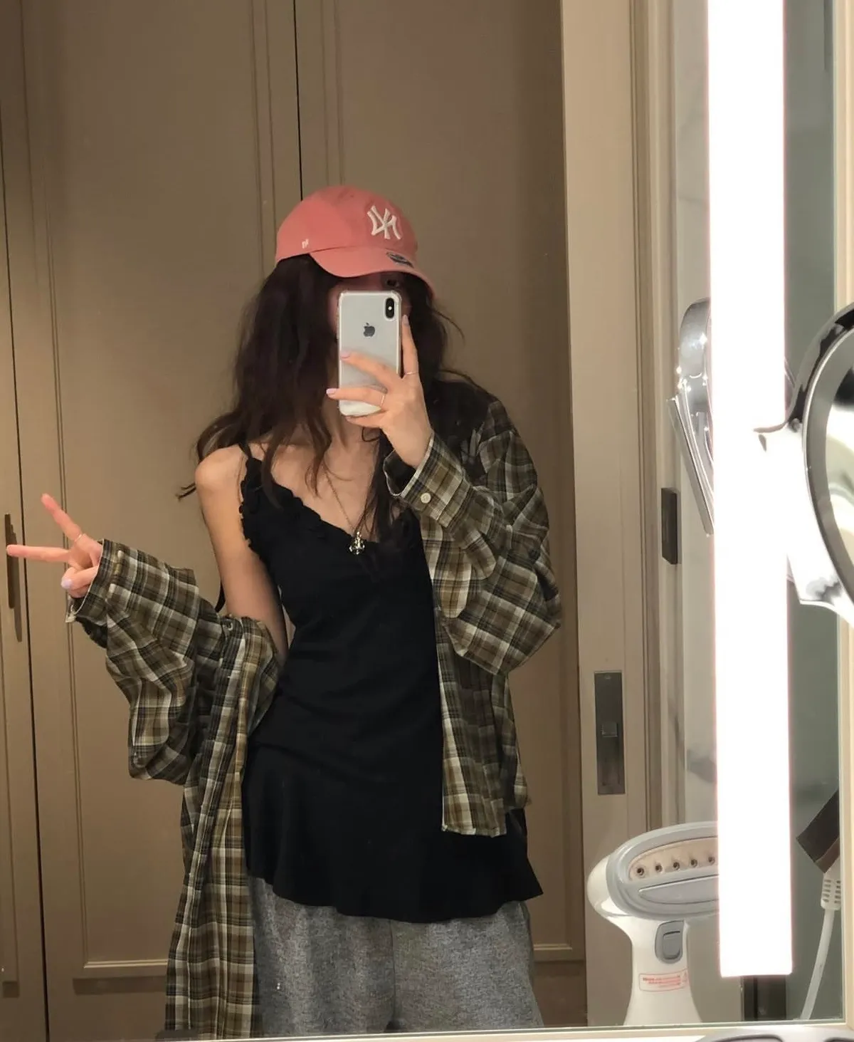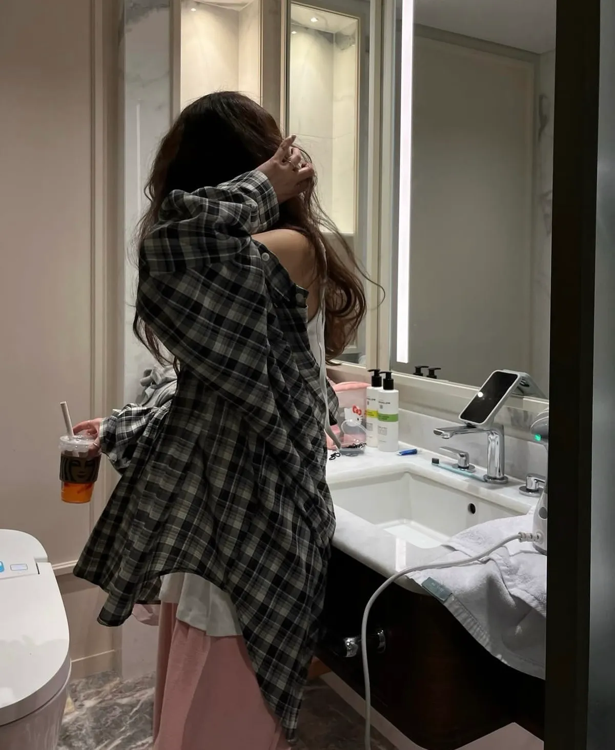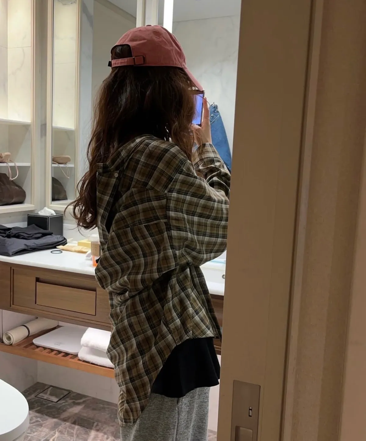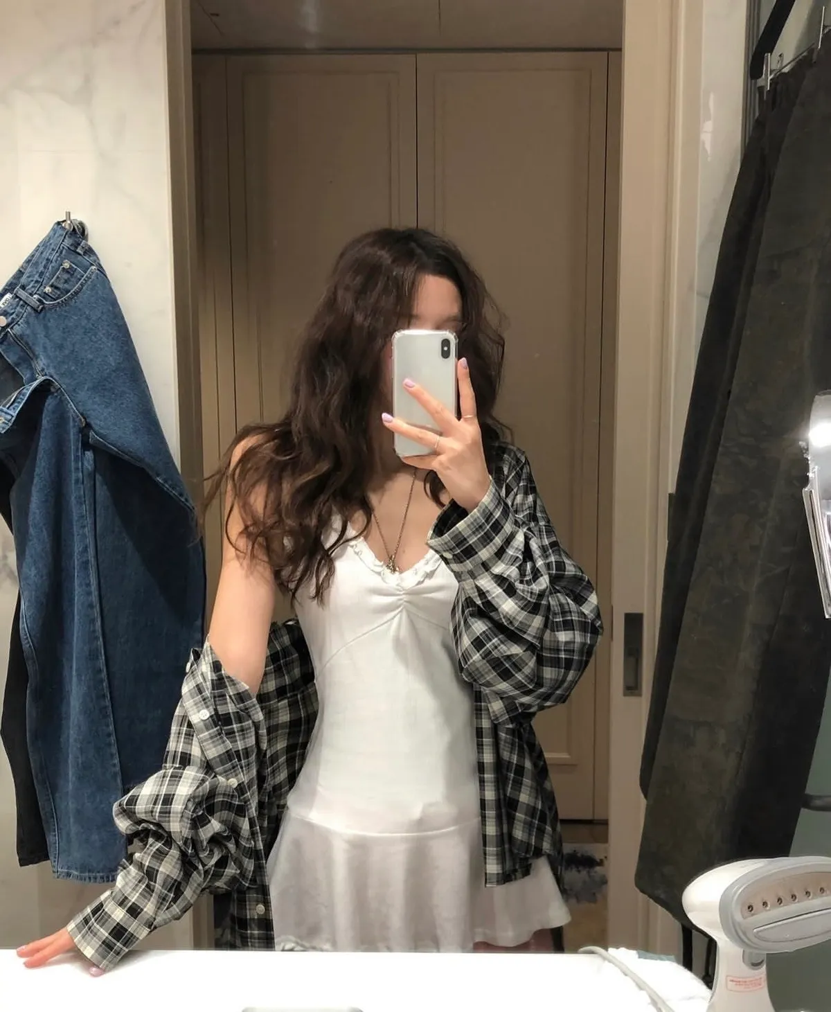 26DJ24 滑料中長版格紋襯衫 2色