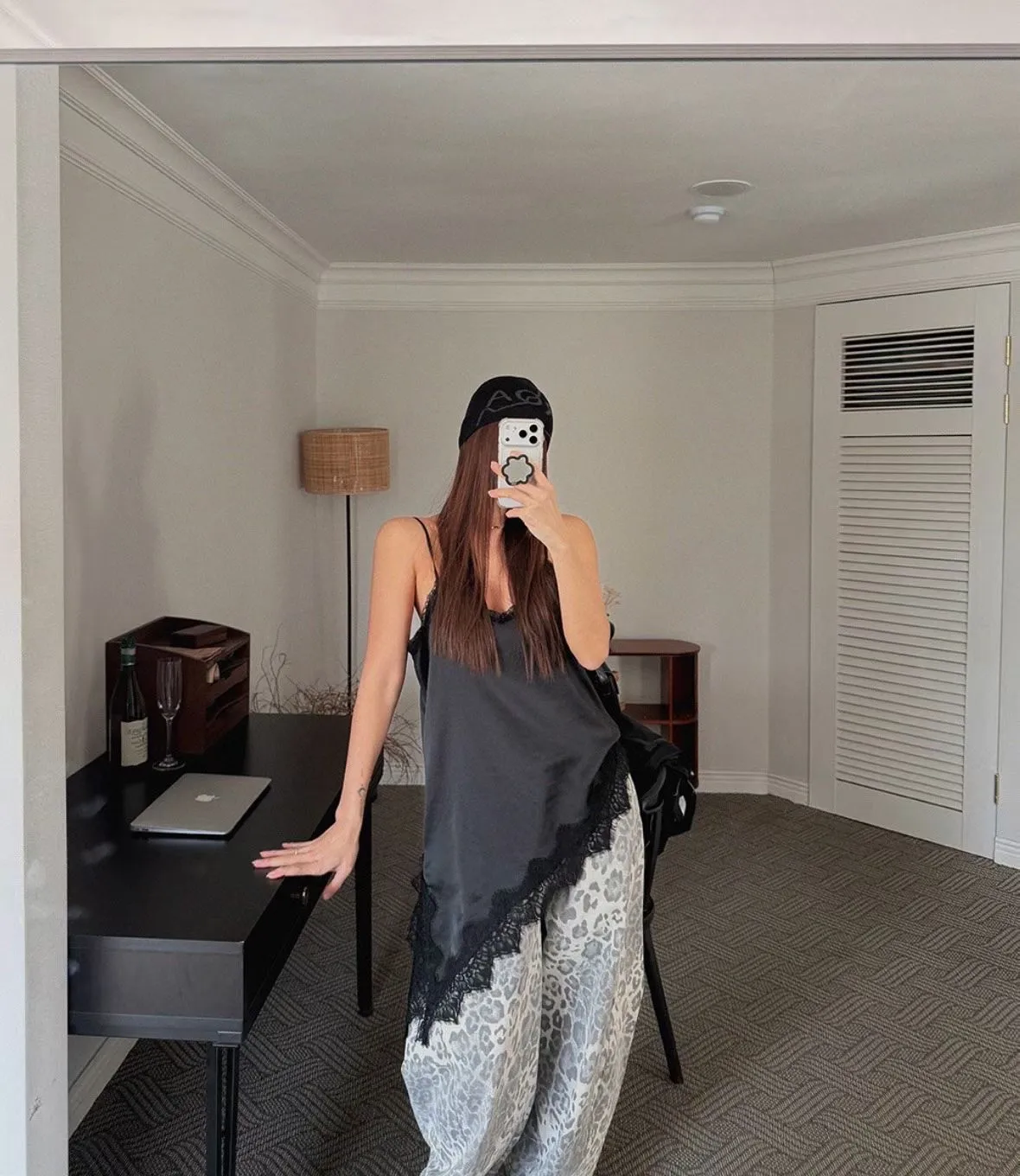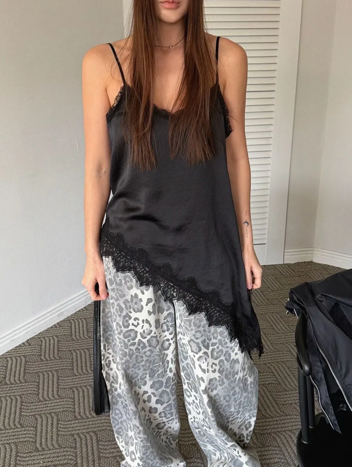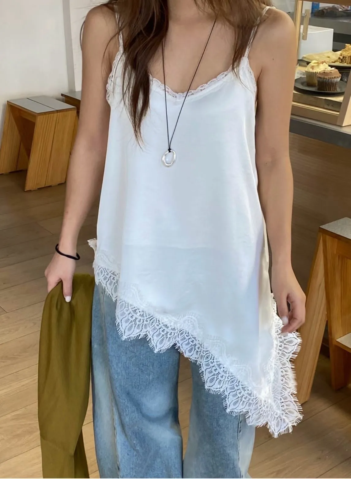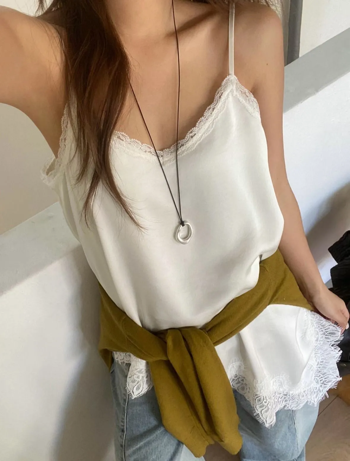 26DS07 斜邊開岔拚蕾絲緞面背心 3色