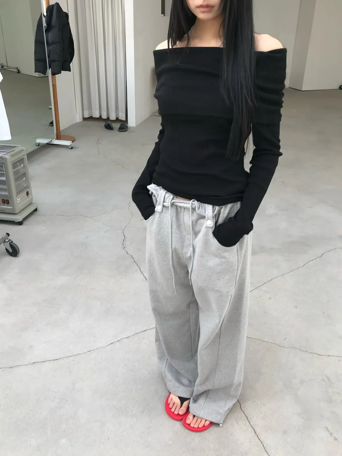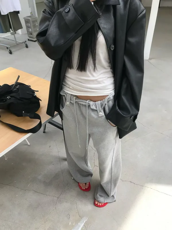 26DS22 反摺扣腰頭薄毛巾兩穿梭腳棉褲 2色