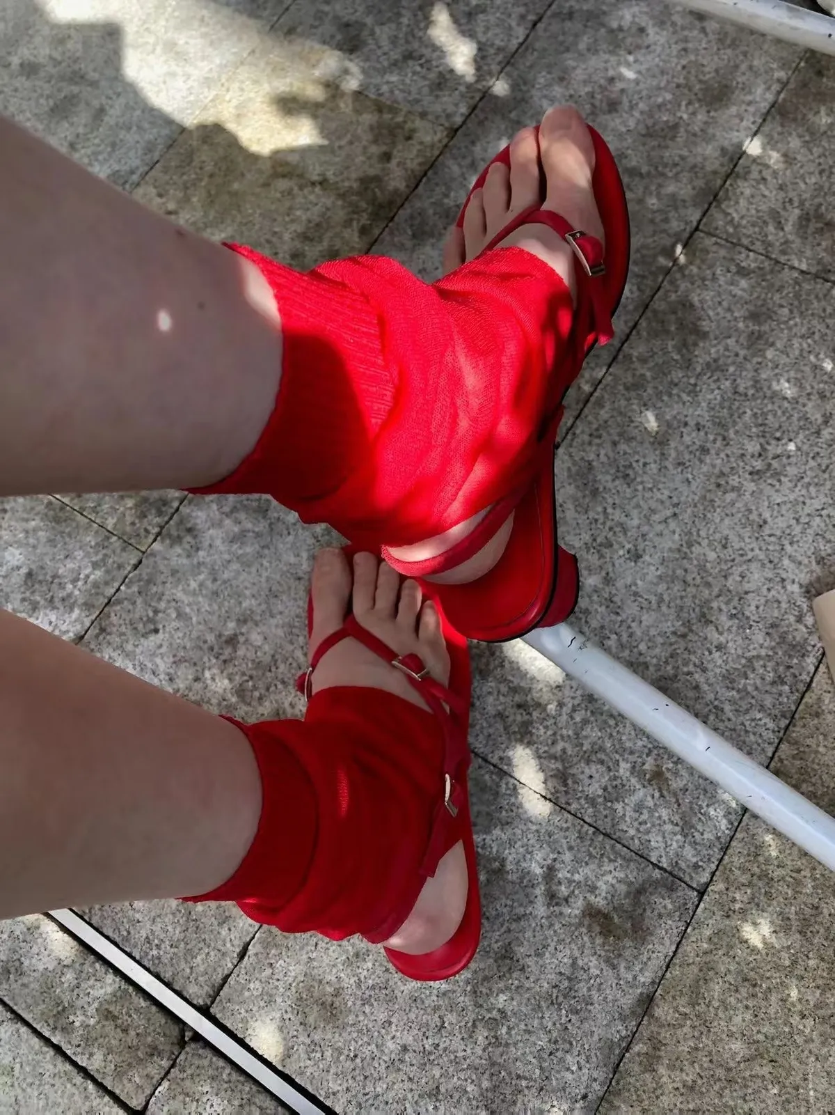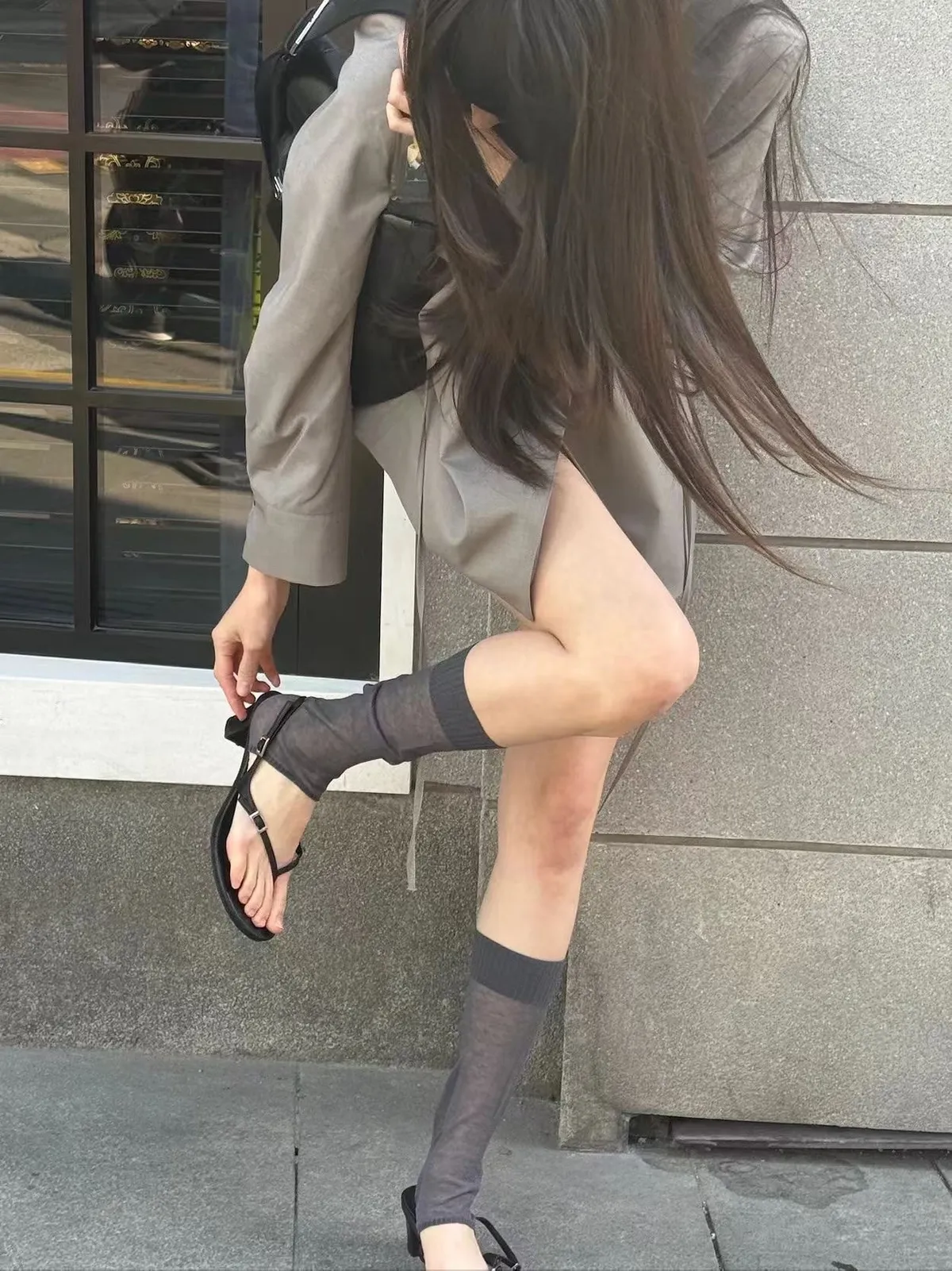 26DS27 品牌(羊皮)超美夾腳粗跟涼鞋 2色