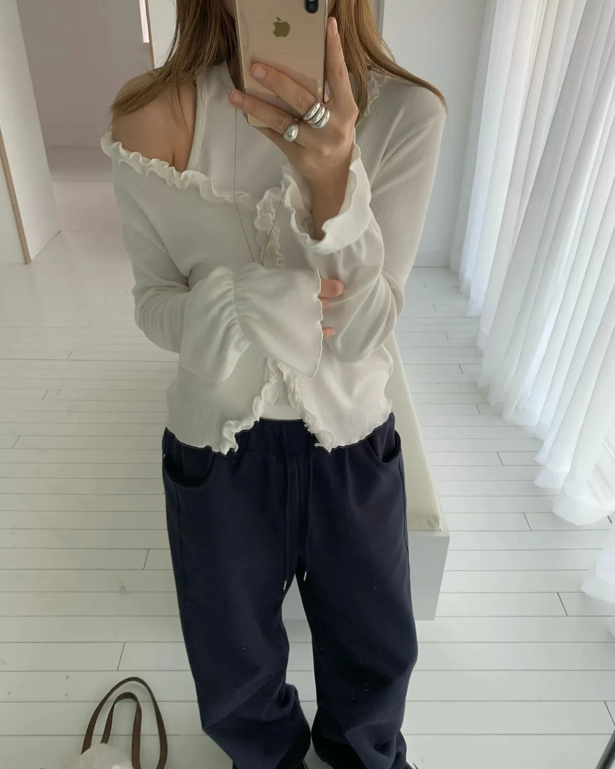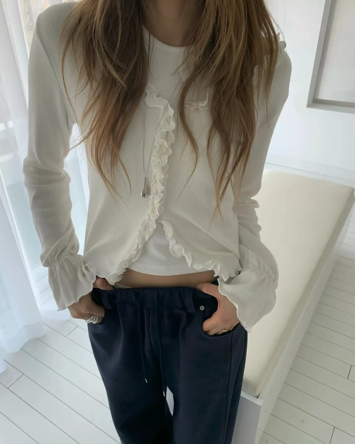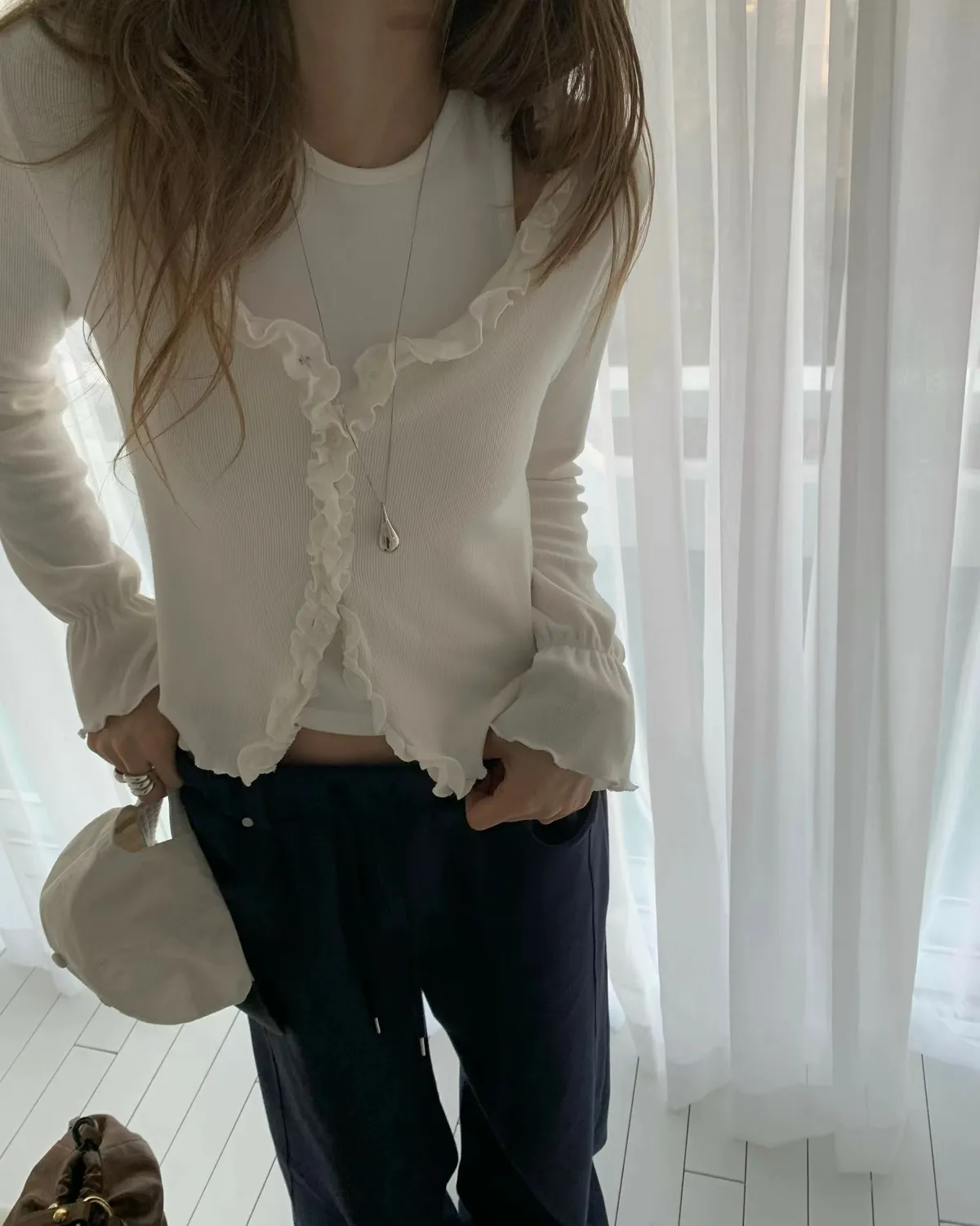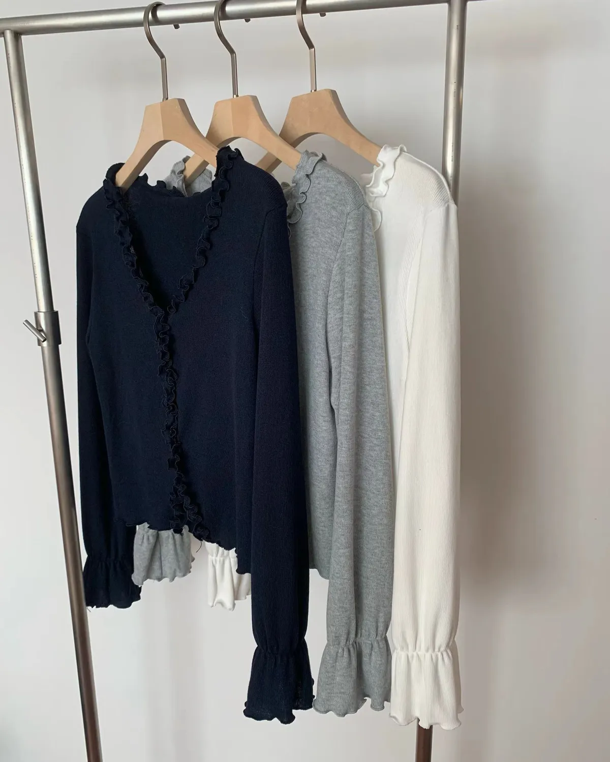 26DS37 小荷葉捲邊排扣罩衫上衣 3色