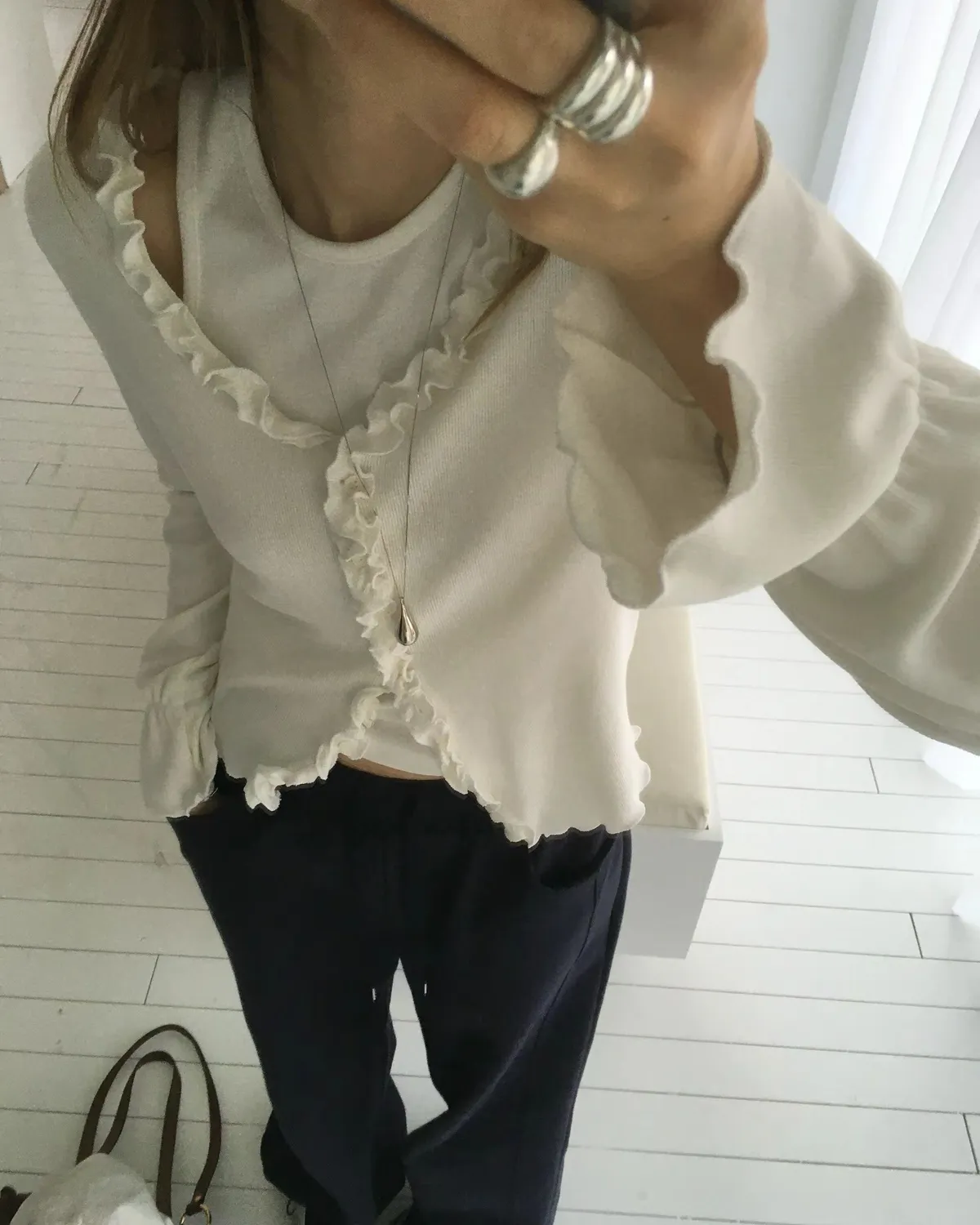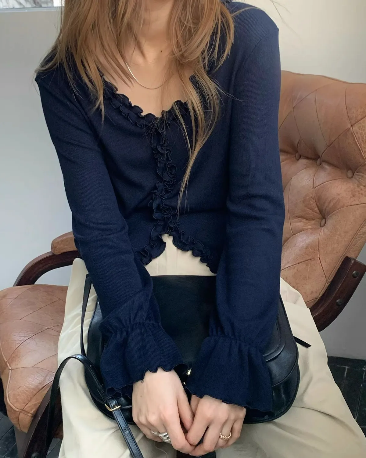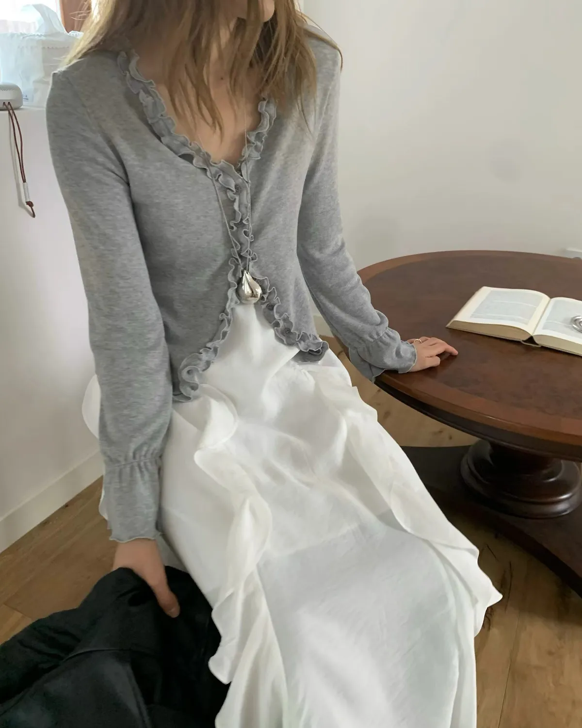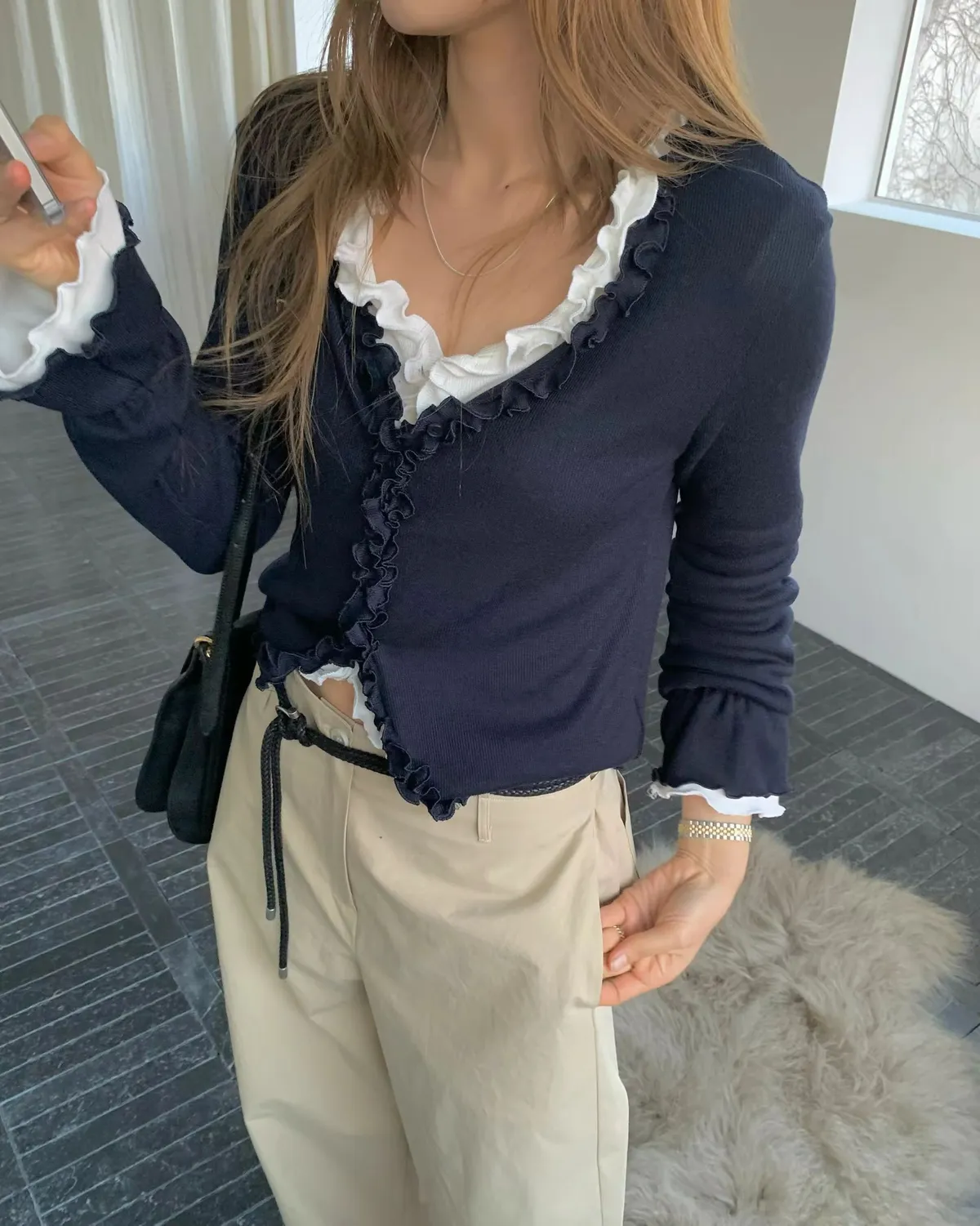 26DS37 小荷葉捲邊排扣罩衫上衣 3色