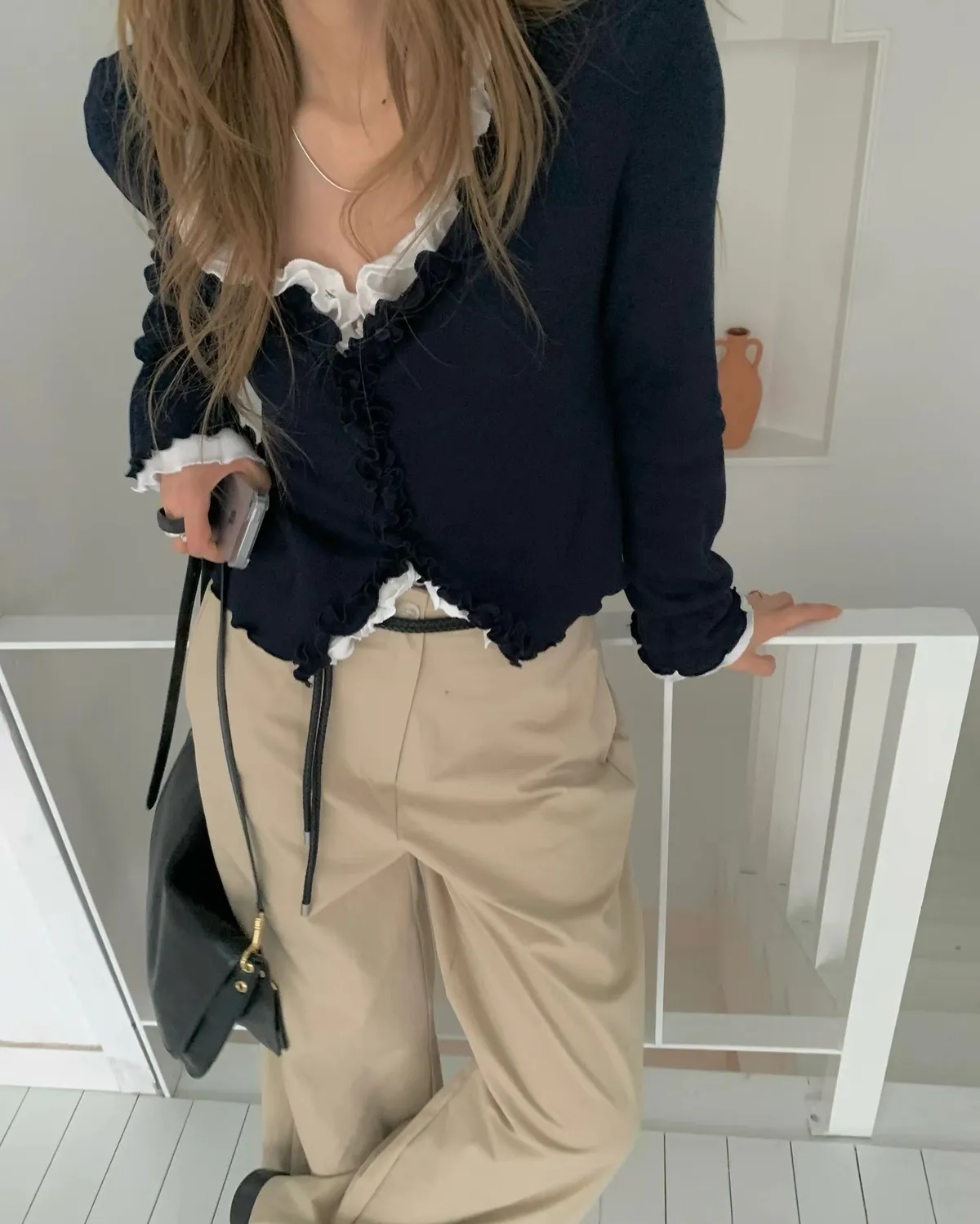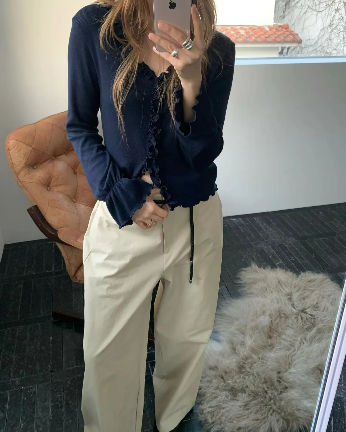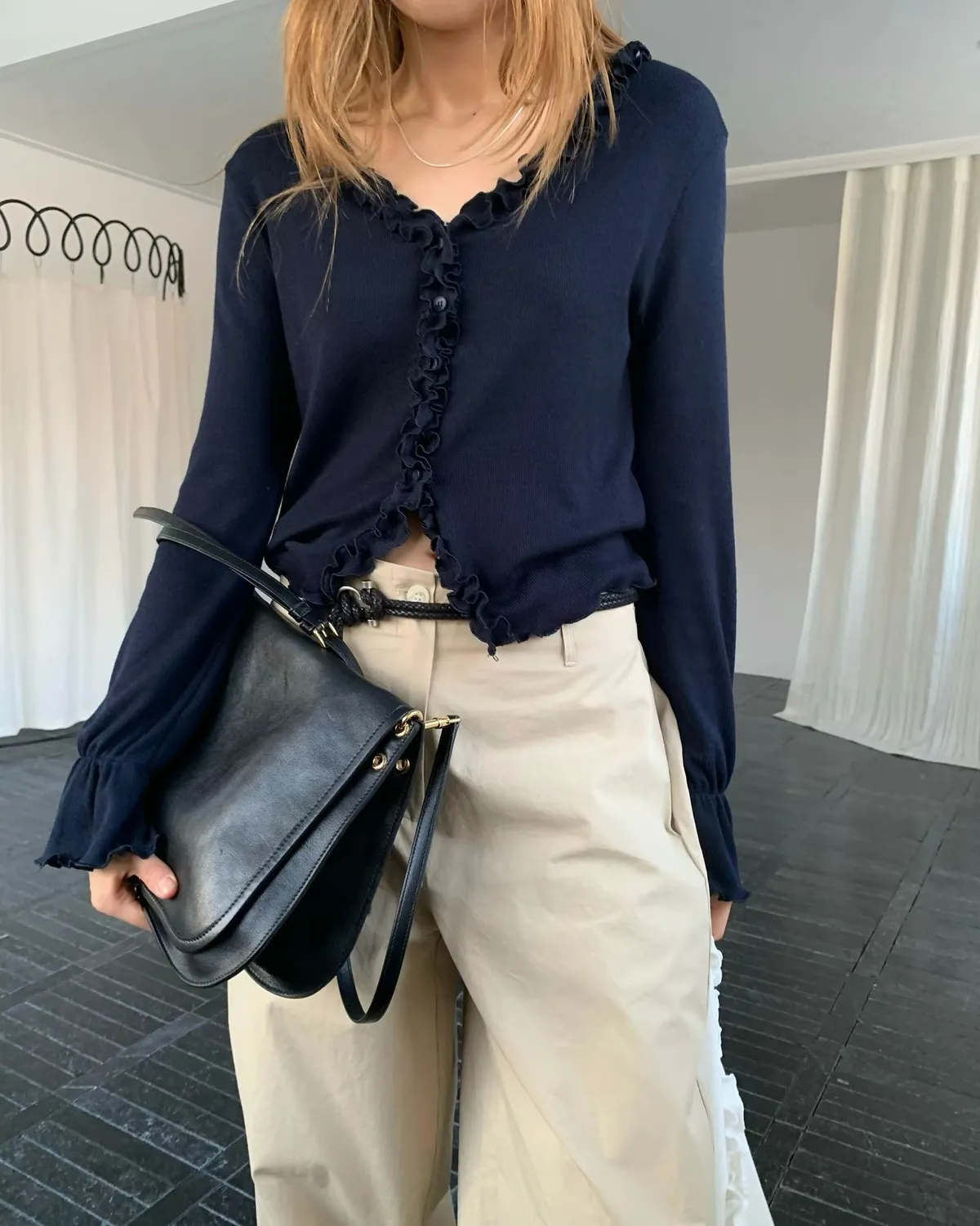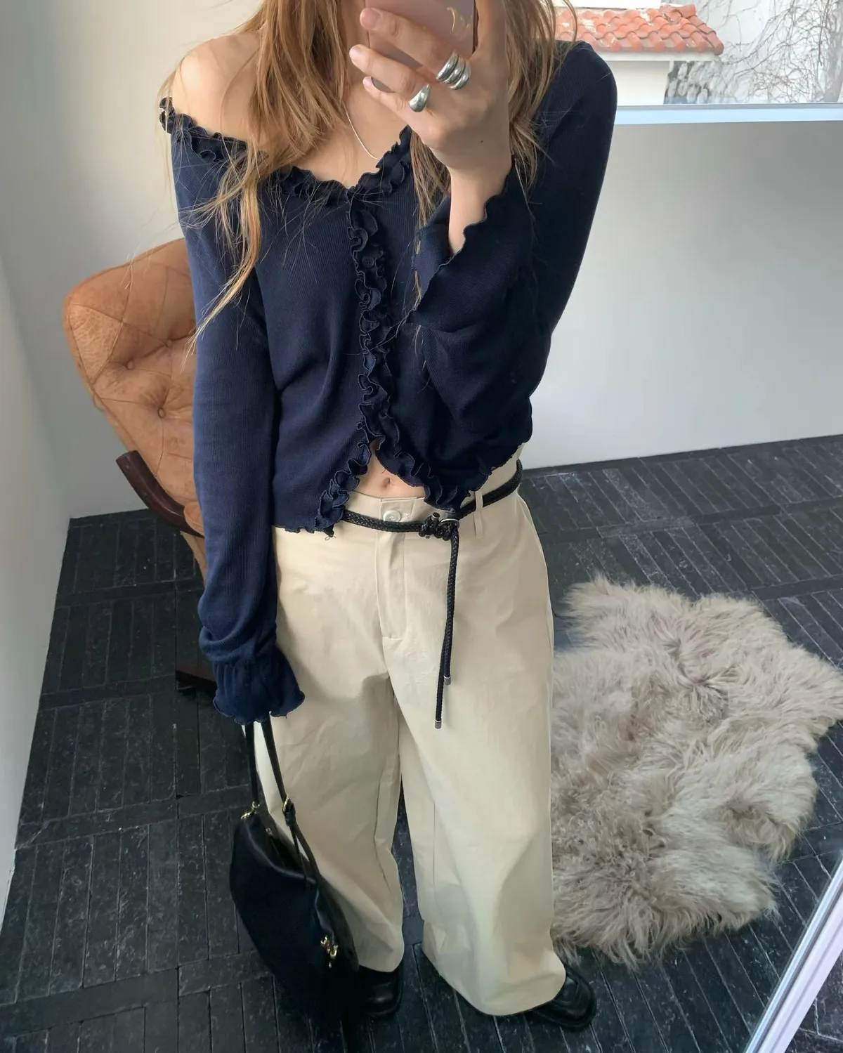 26DS37 小荷葉捲邊排扣罩衫上衣 3色