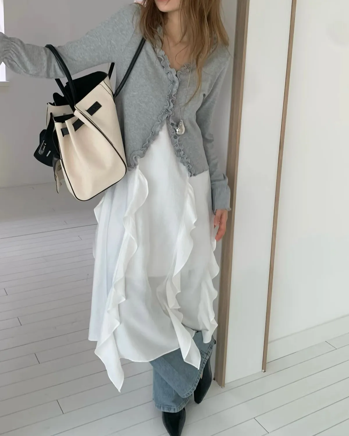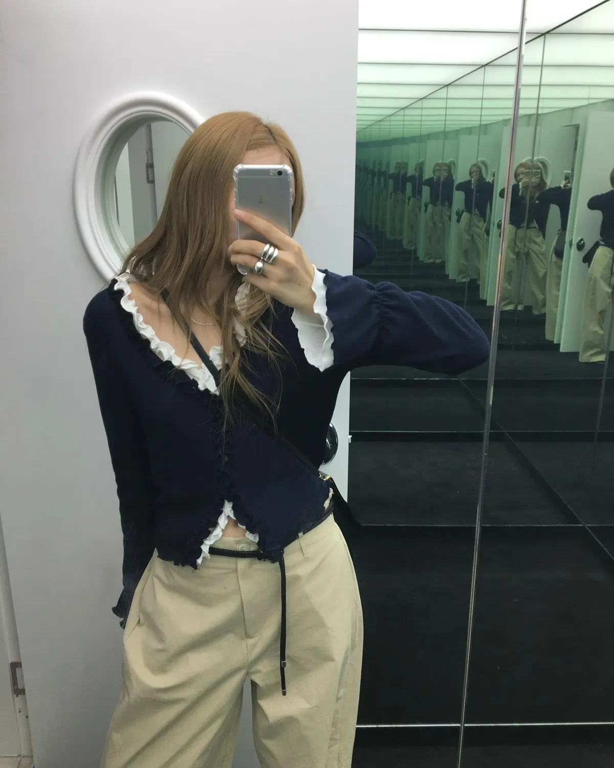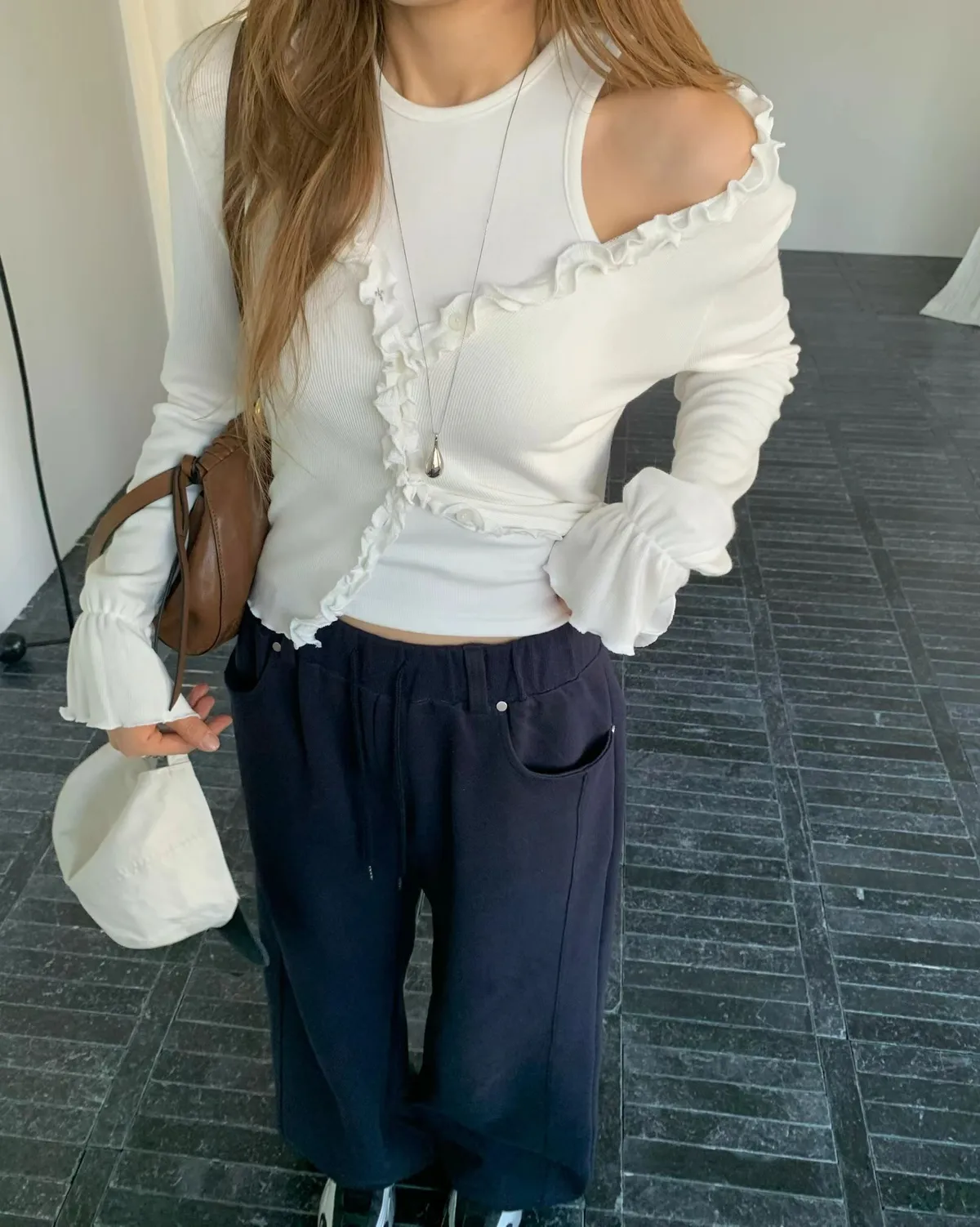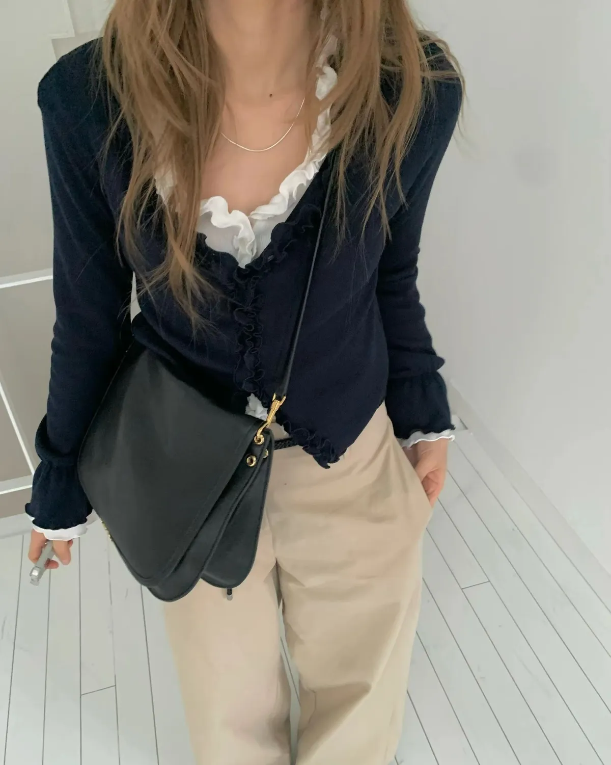 26DS37 小荷葉捲邊排扣罩衫上衣 3色
