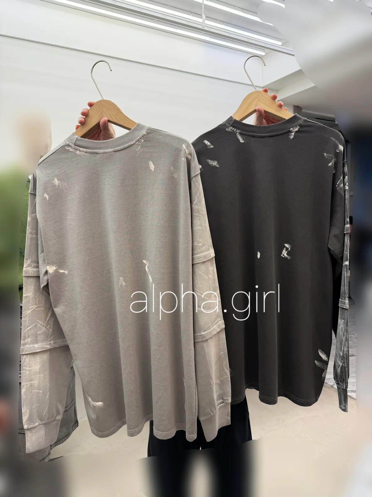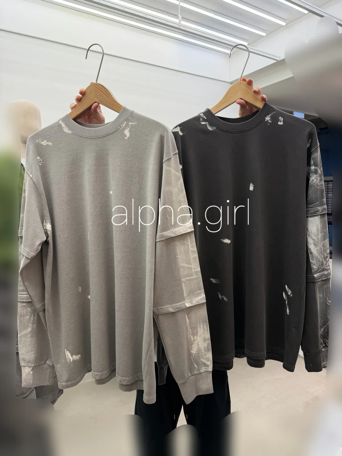 26DS41 (男裝)塗鴉潑墨拚袖長T 2色