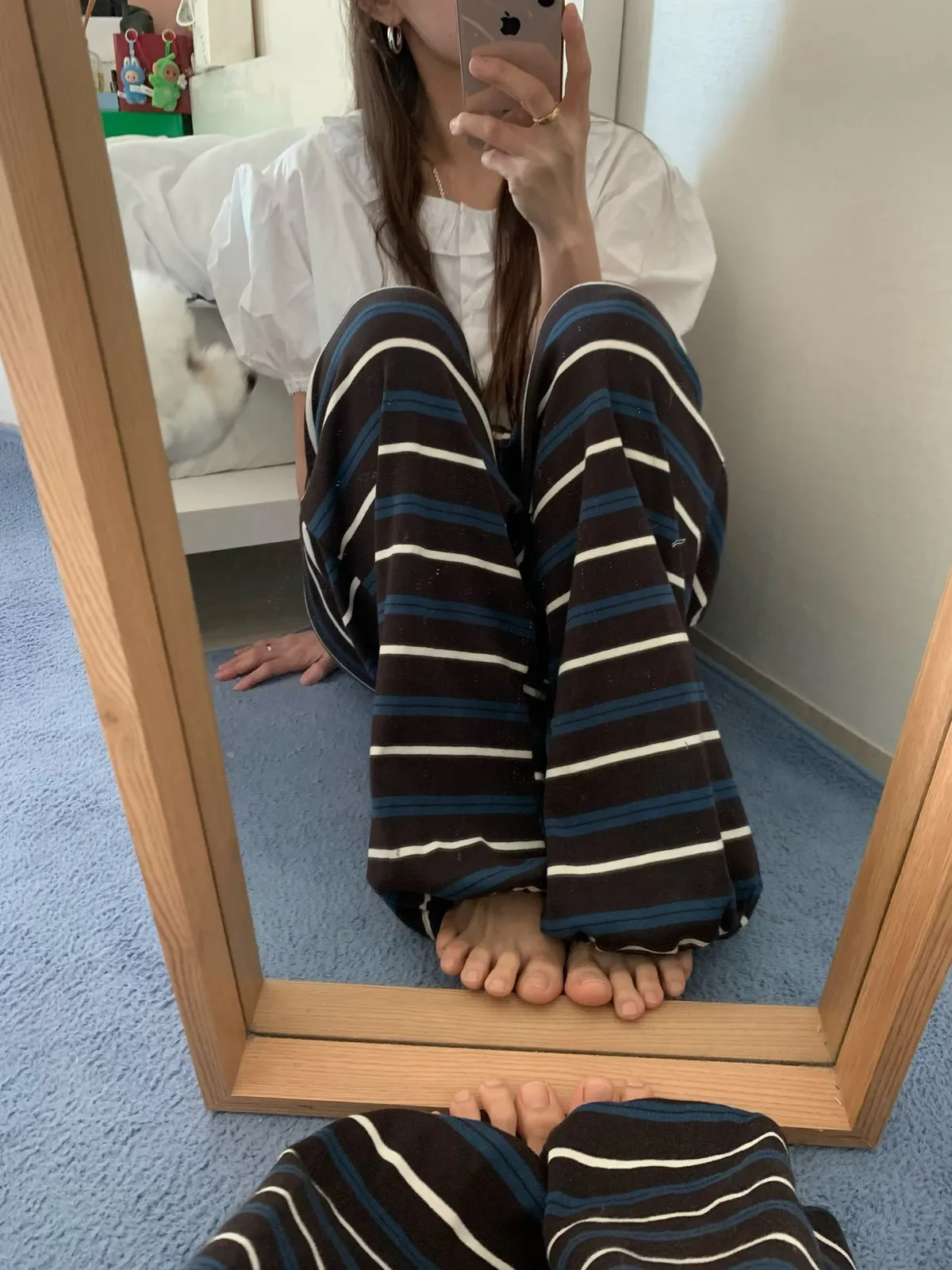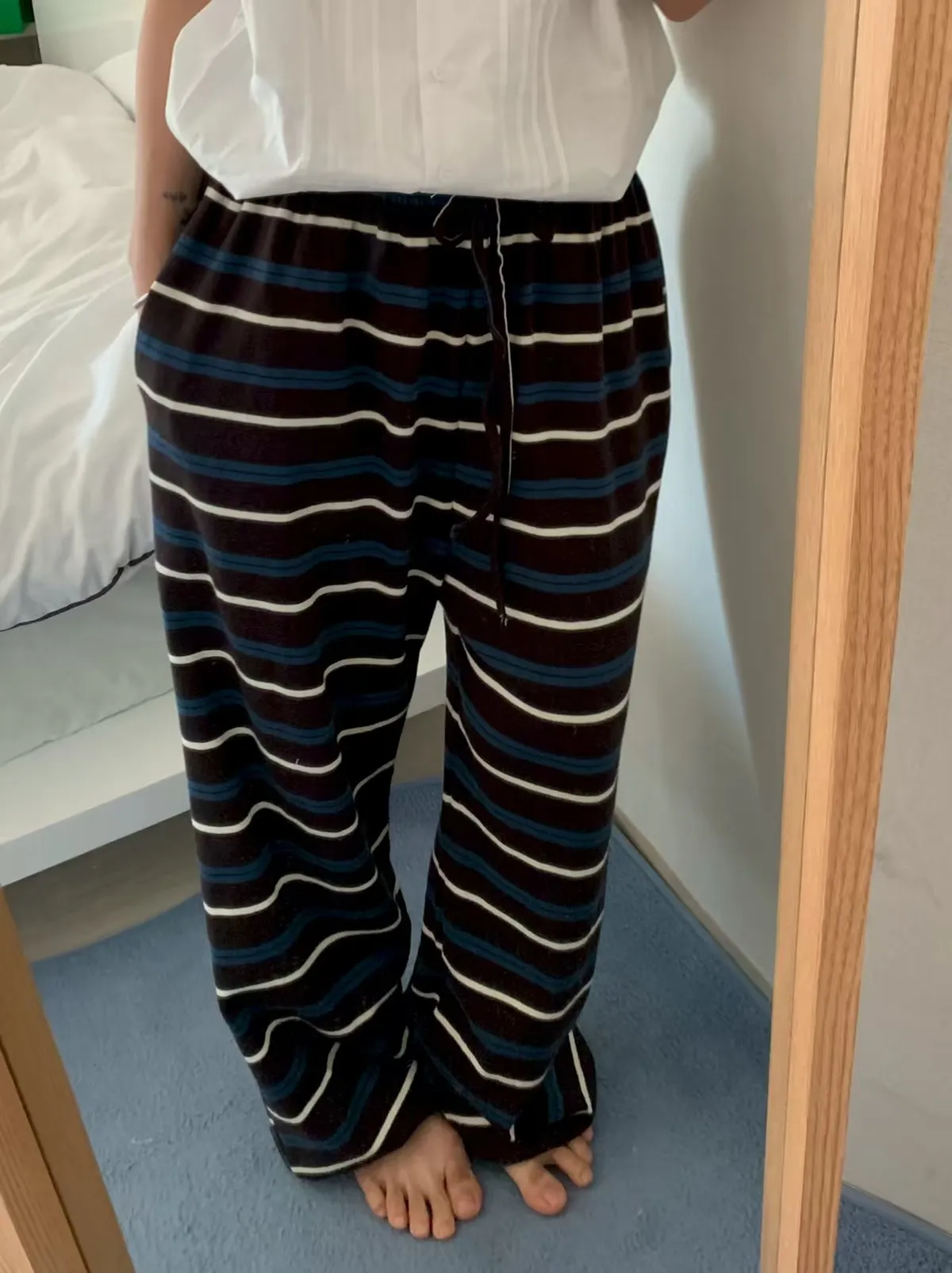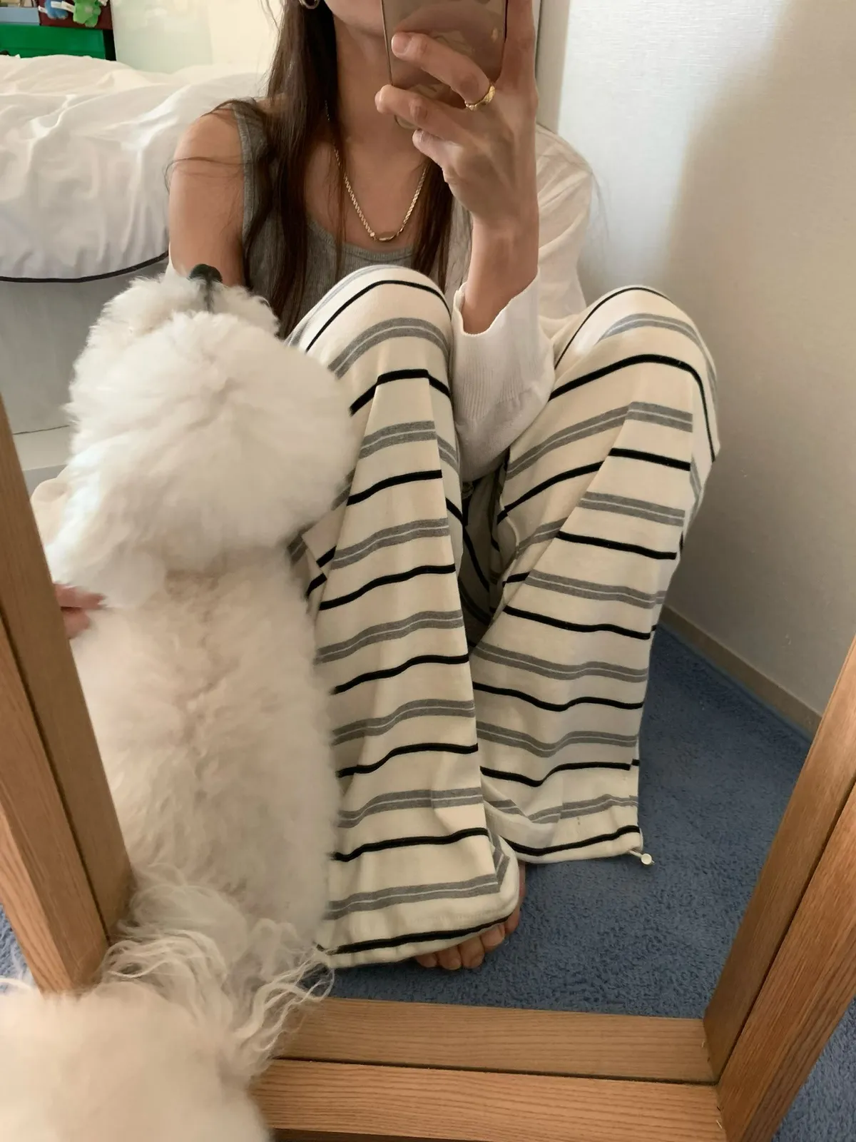 26DS49 鬆鬆軟軟撞色條紋棉長褲2色