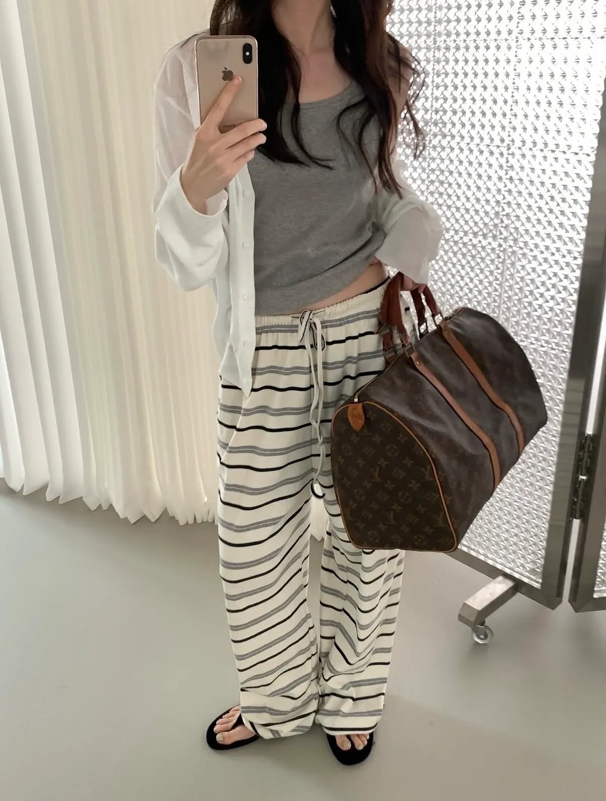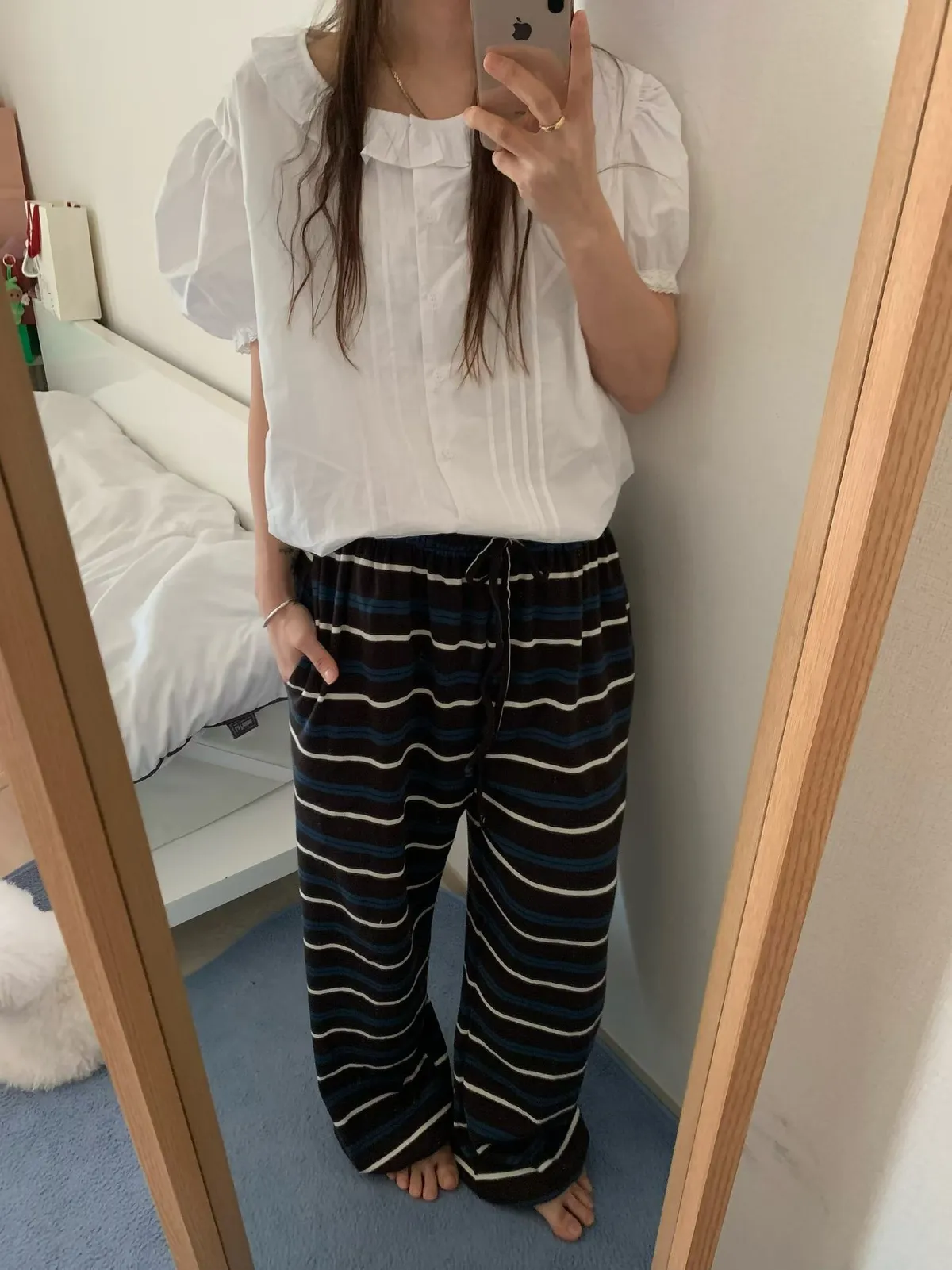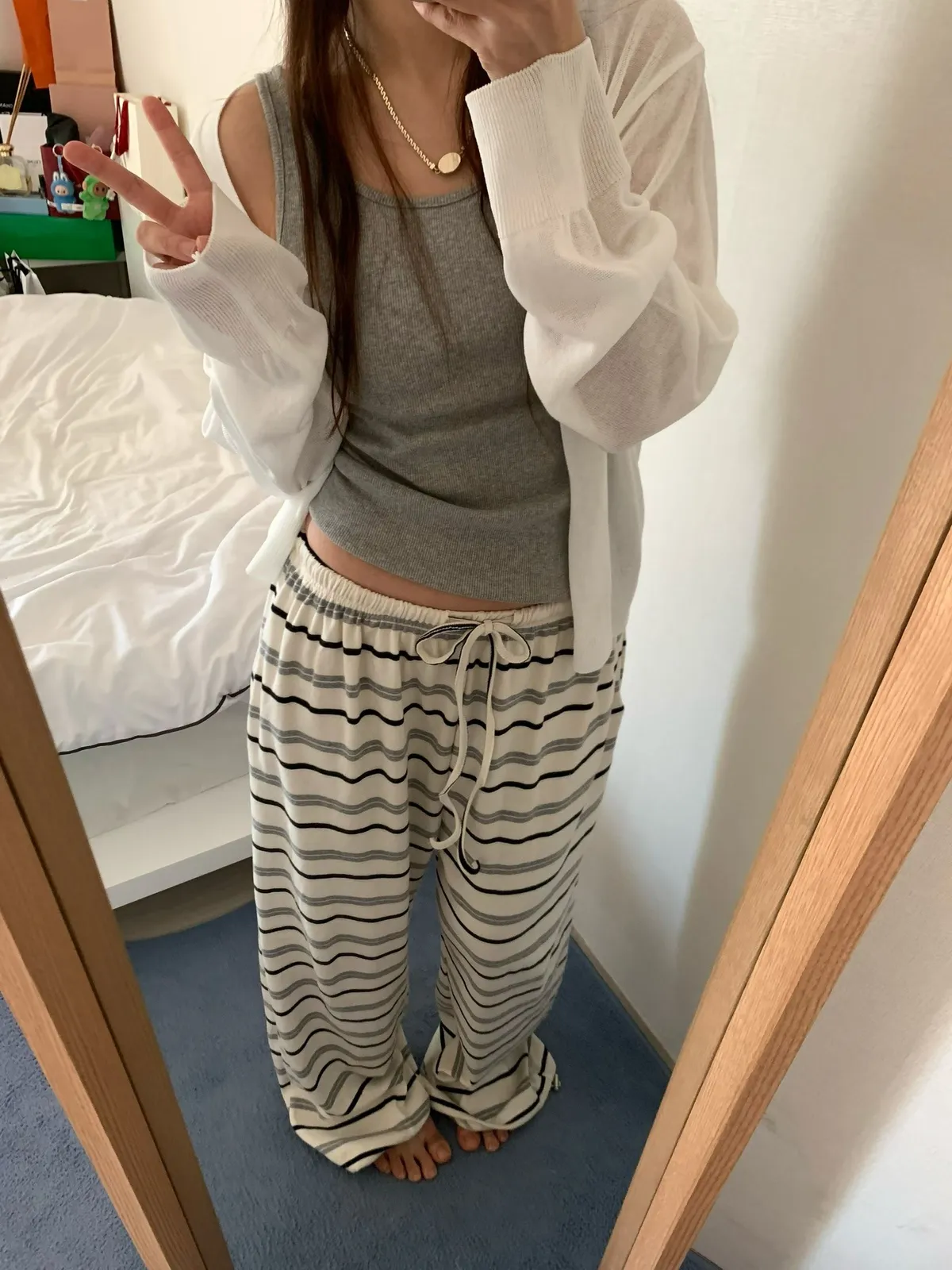 26DS49 鬆鬆軟軟撞色條紋棉長褲2色