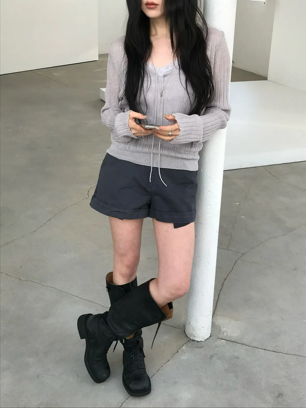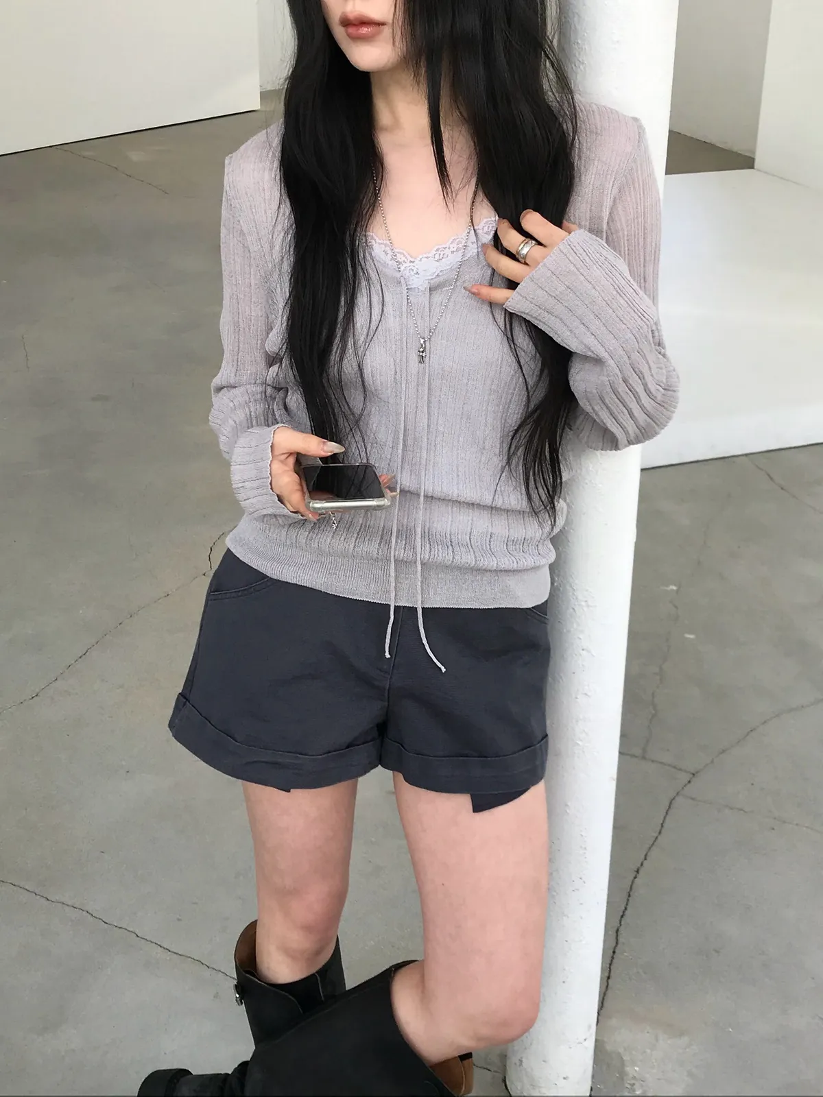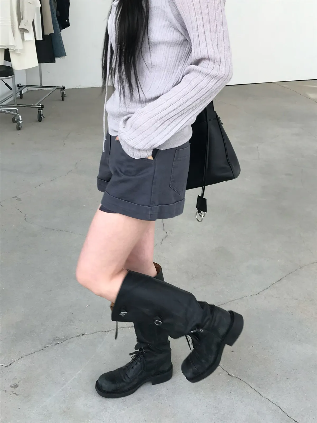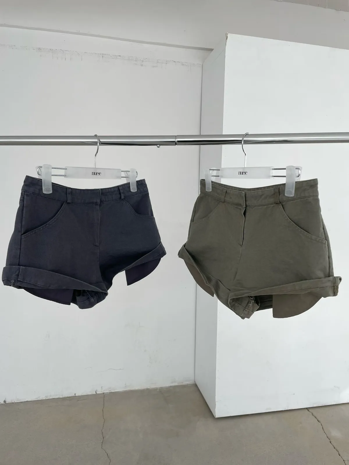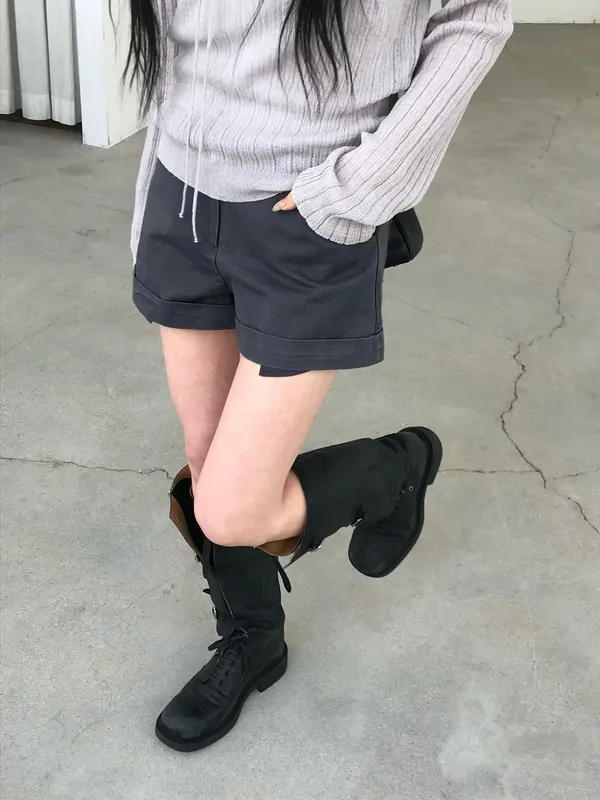 26DS59 中腰反摺薄斜紋棉短褲 2色 SM