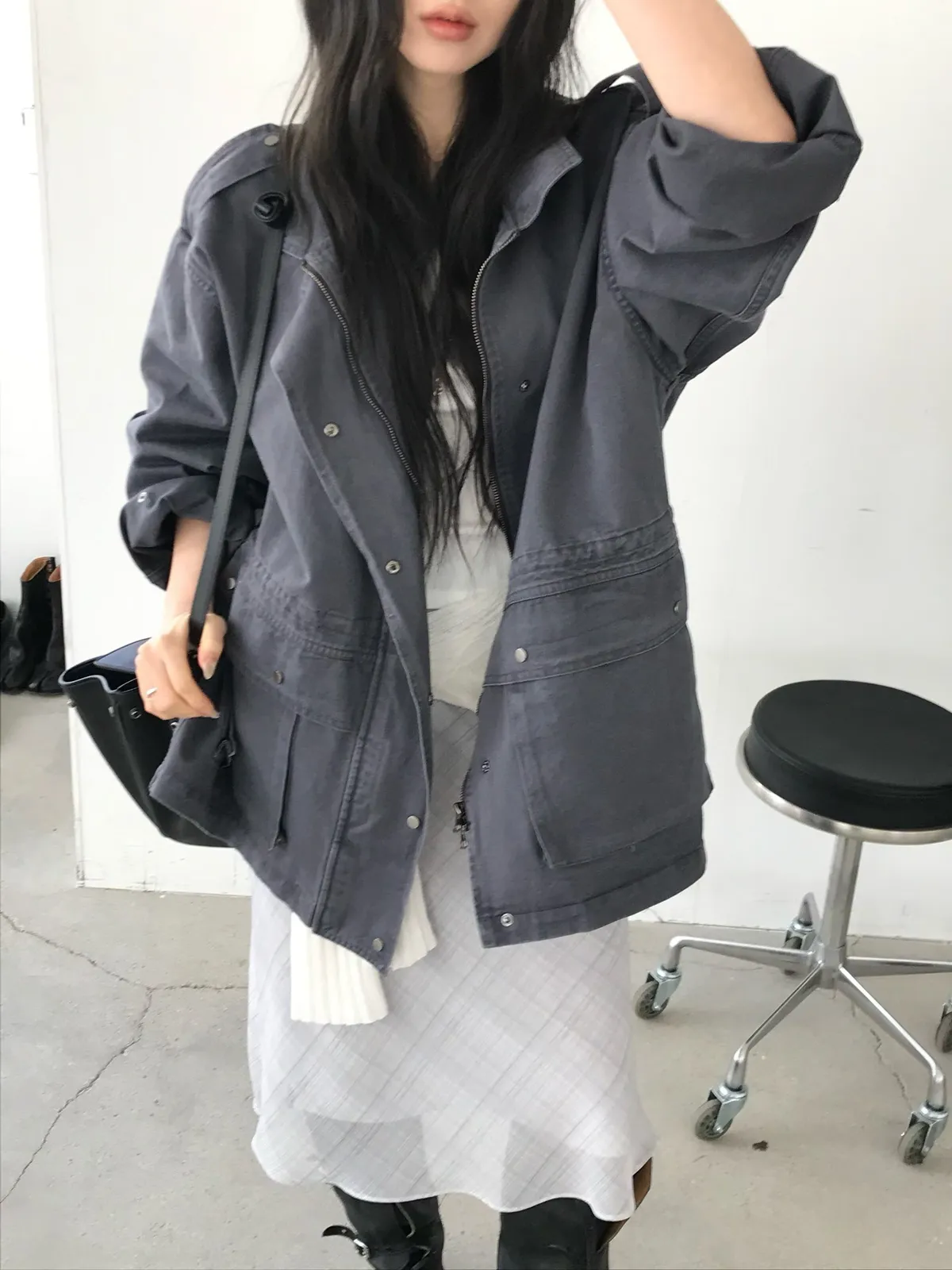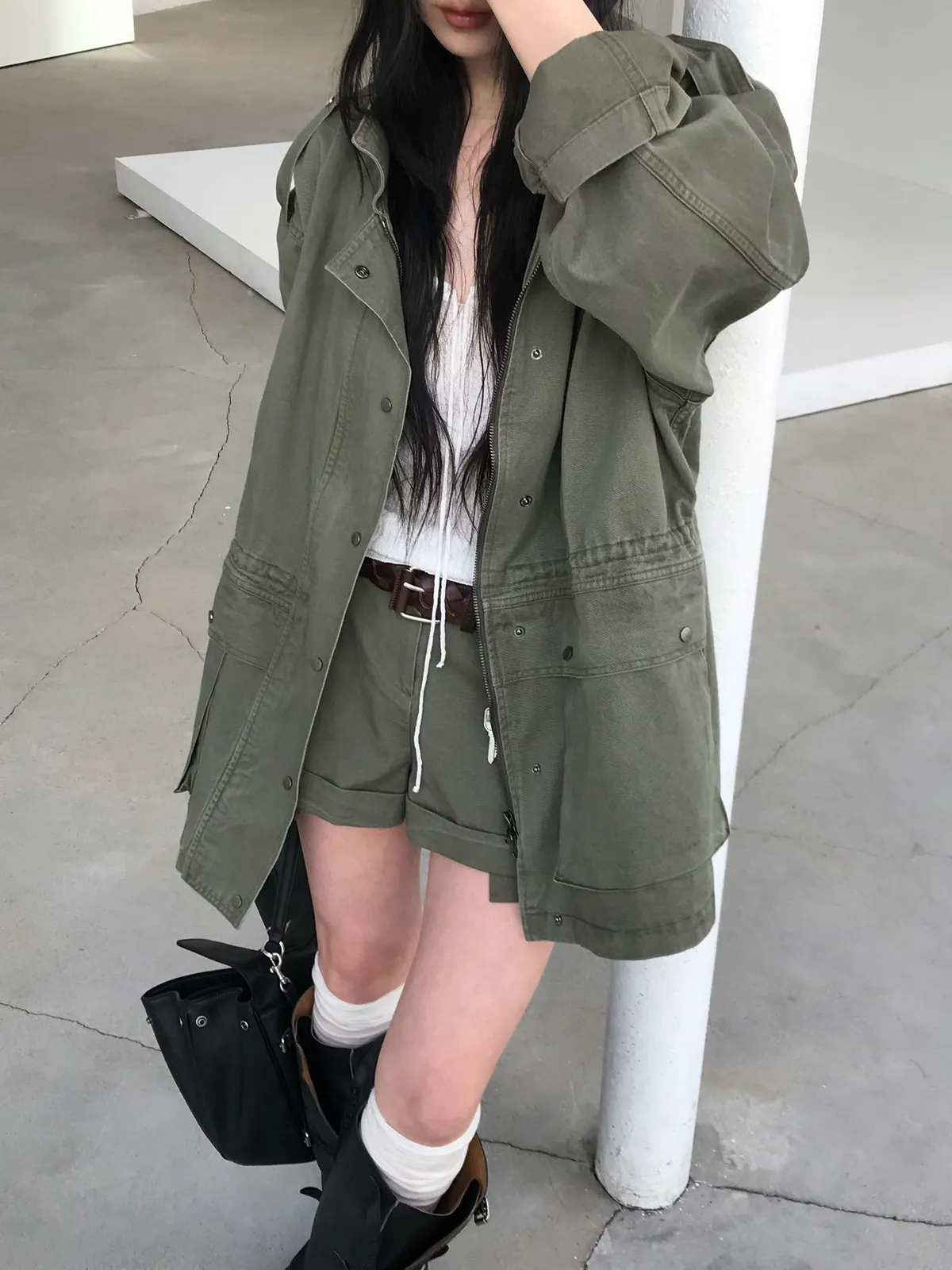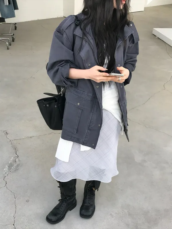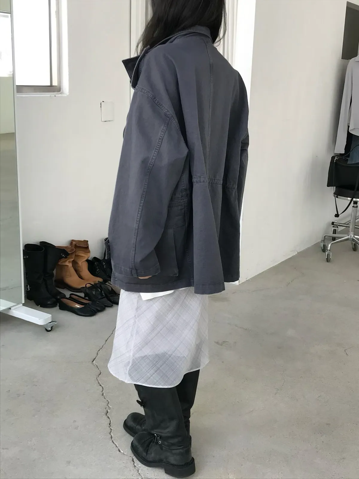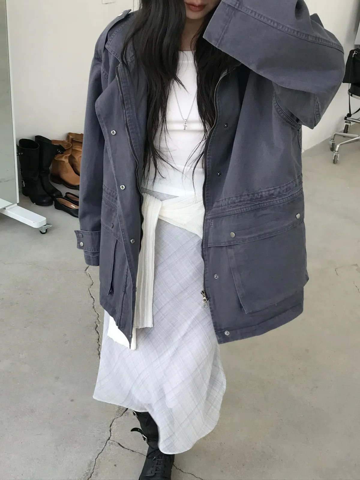 26DS60 中長版立領洗色薄斜紋棉工裝外套 2色