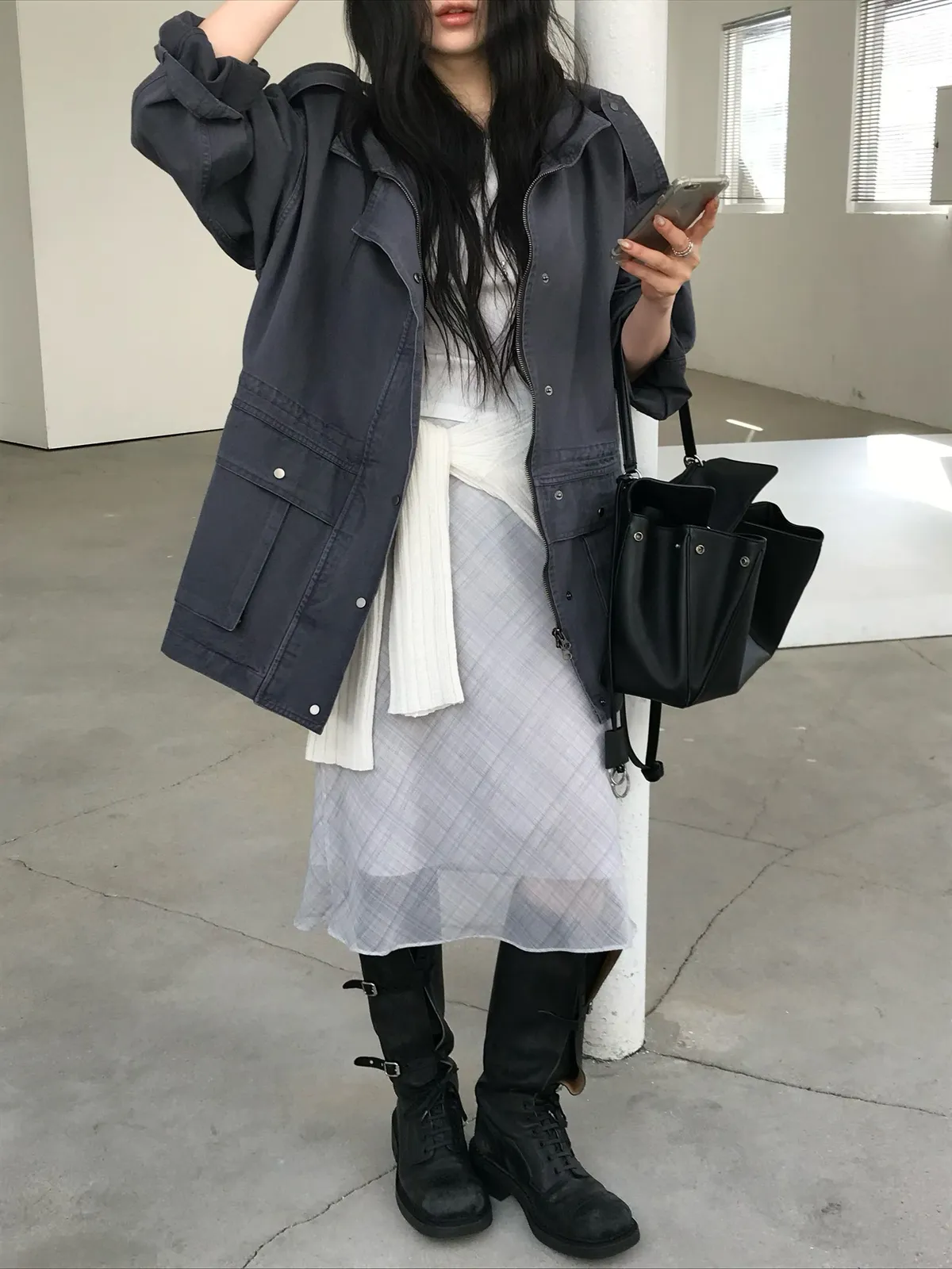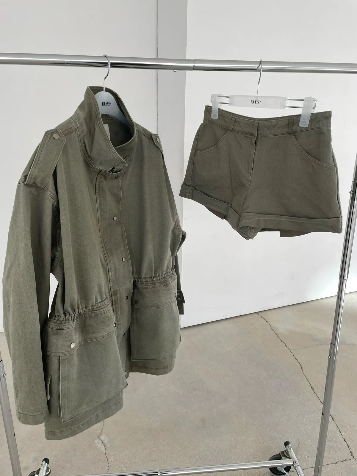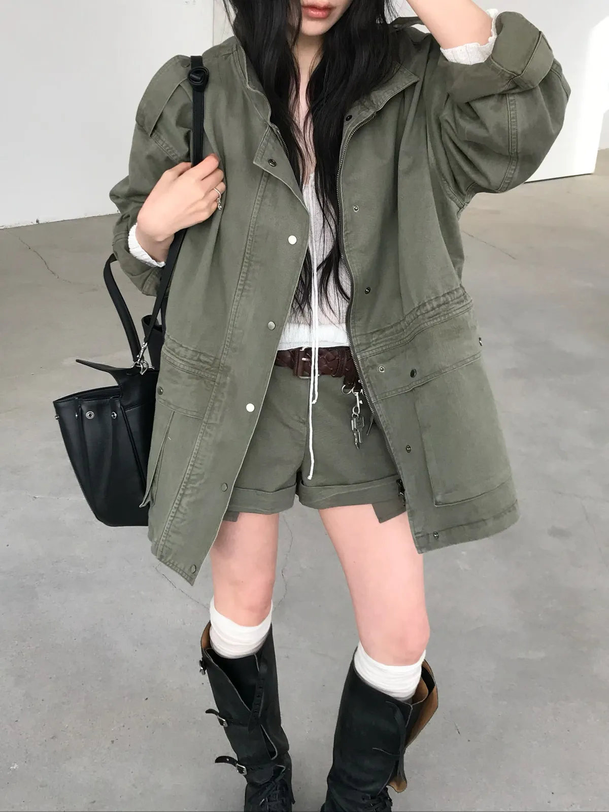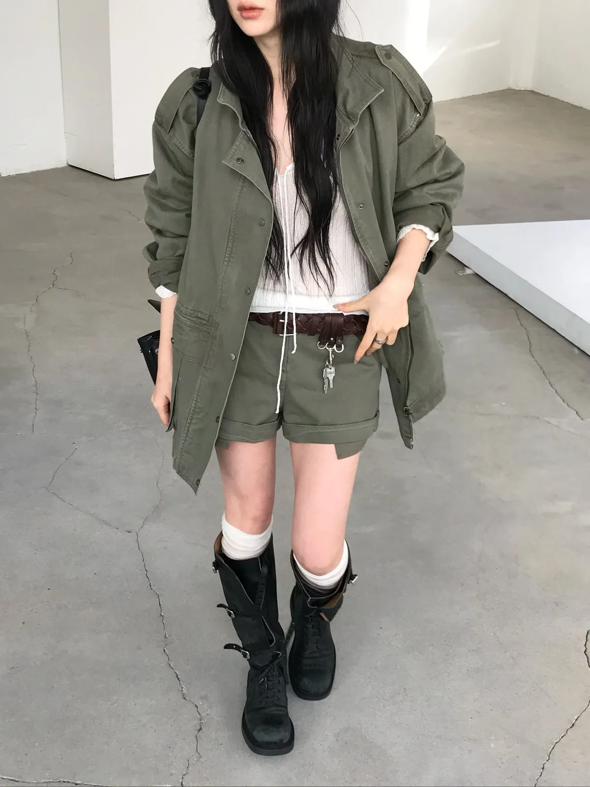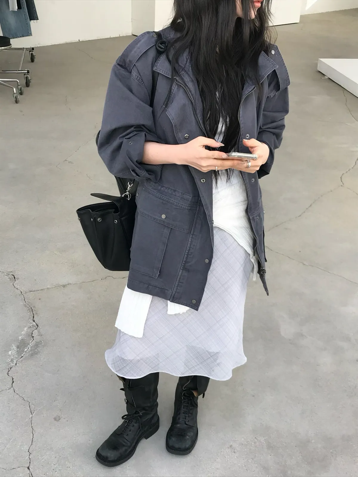 26DS60 中長版立領洗色薄斜紋棉工裝外套 2色