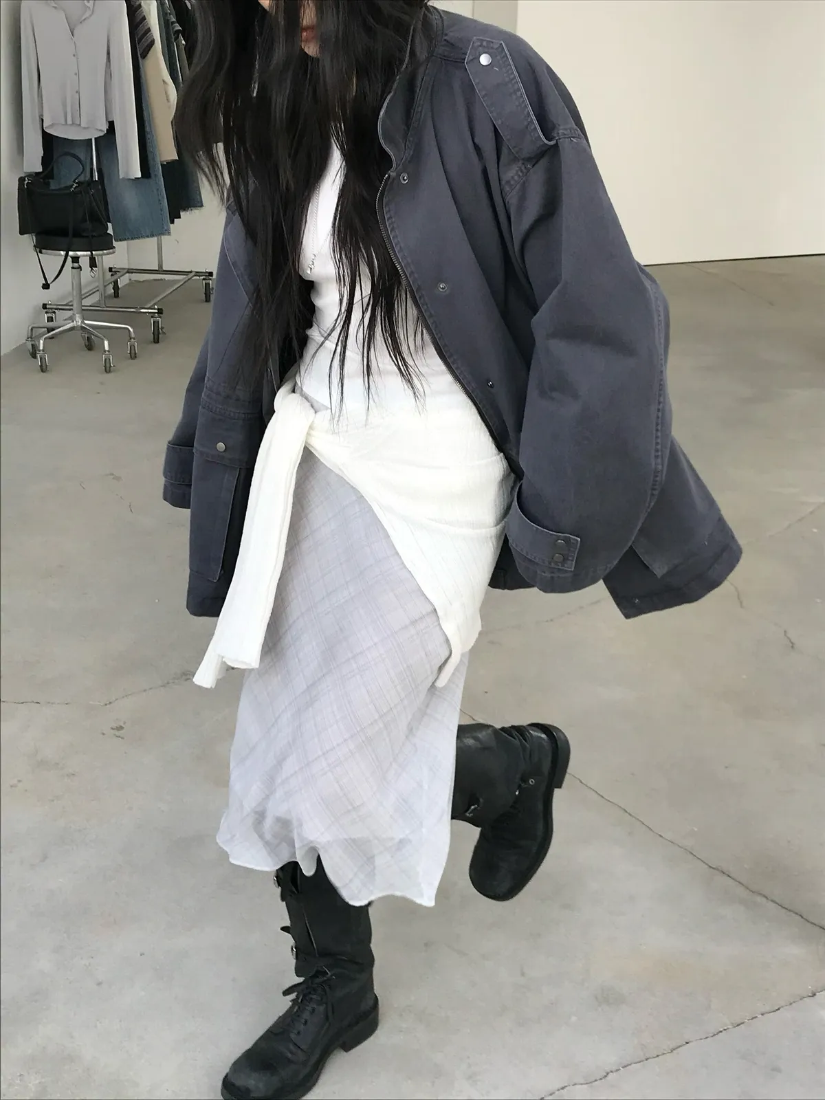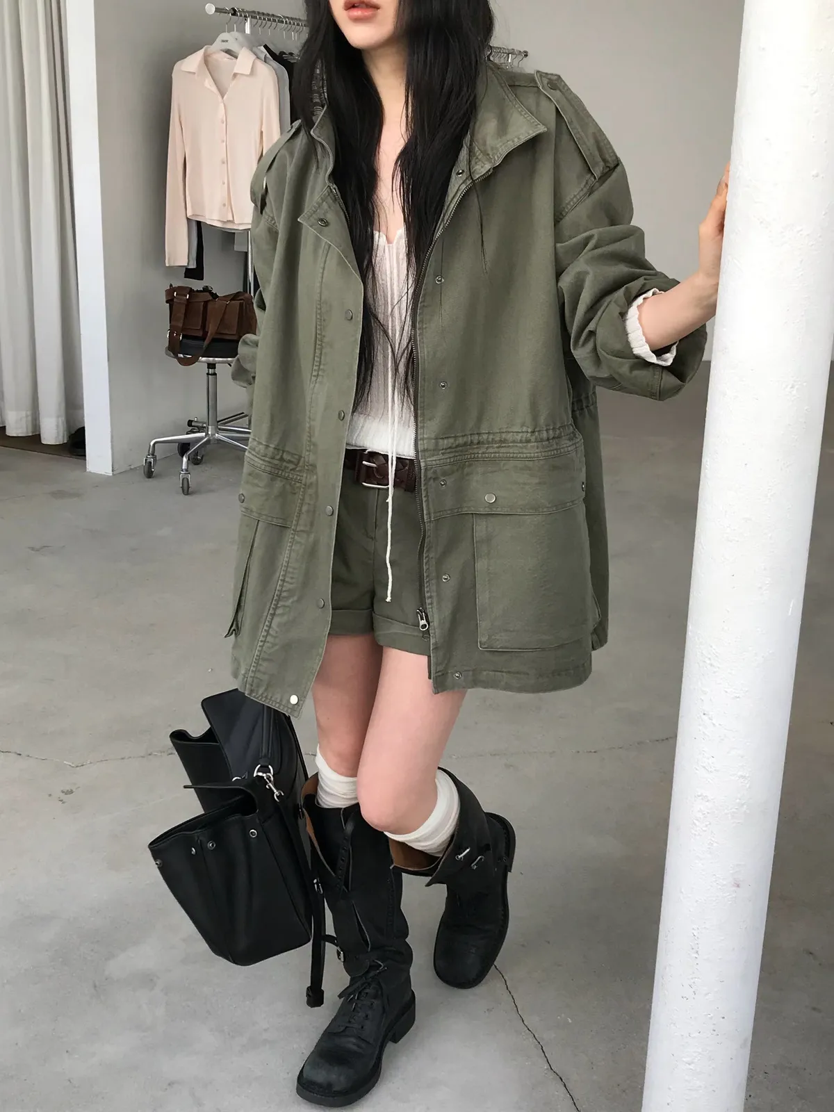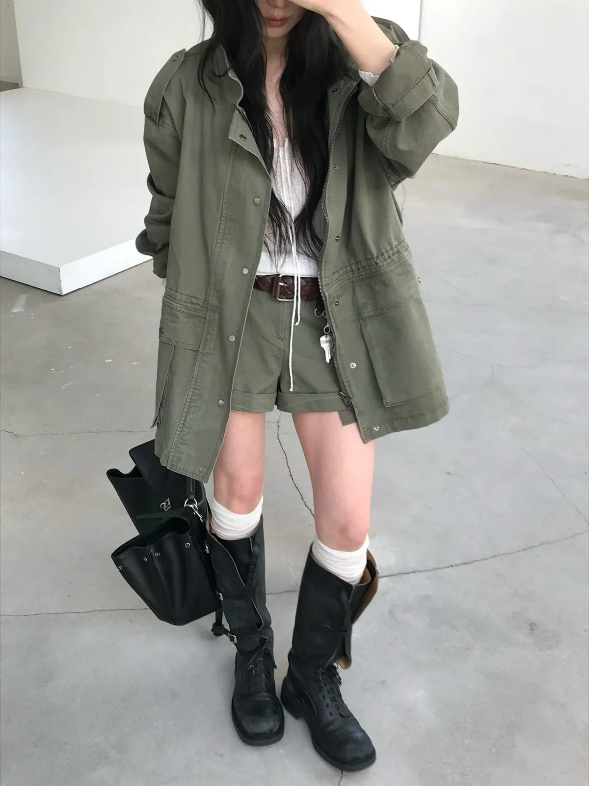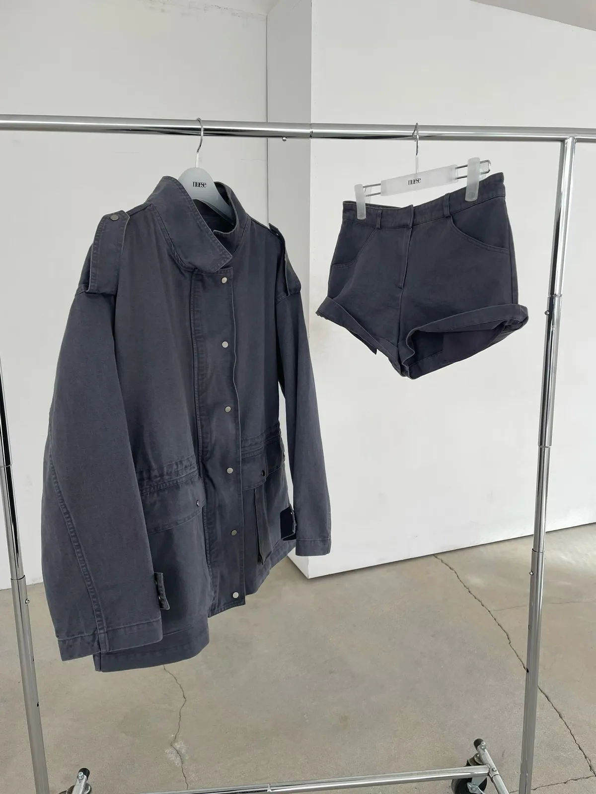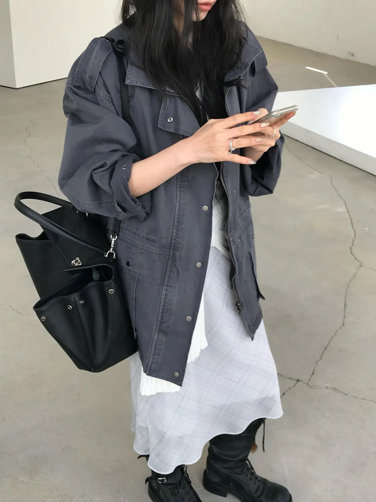 26DS60 中長版立領洗色薄斜紋棉工裝外套 2色