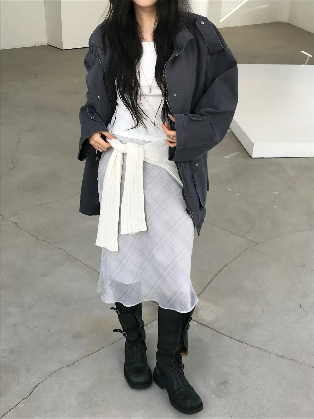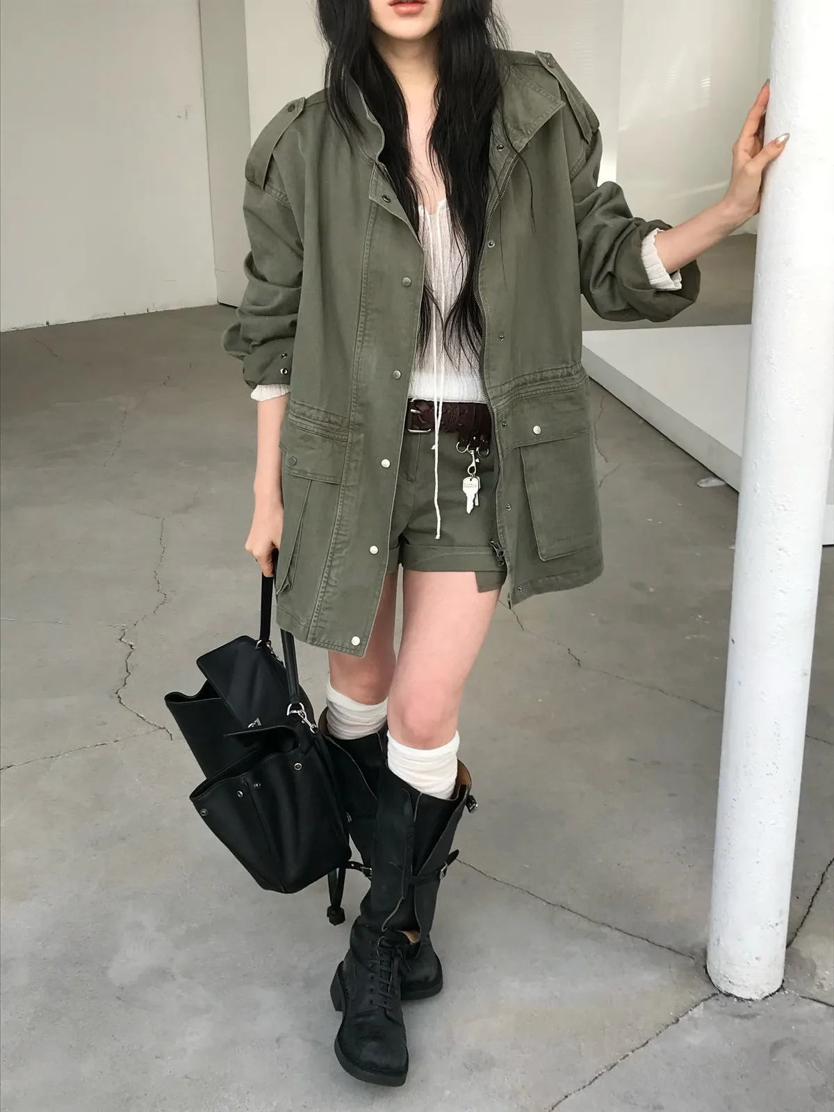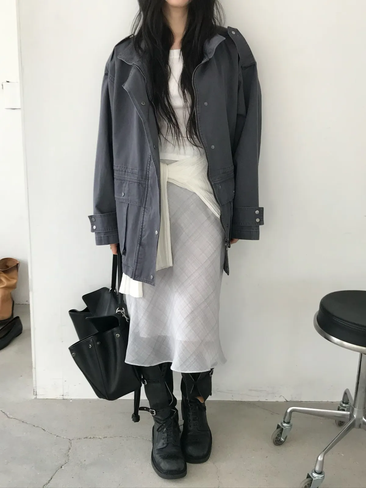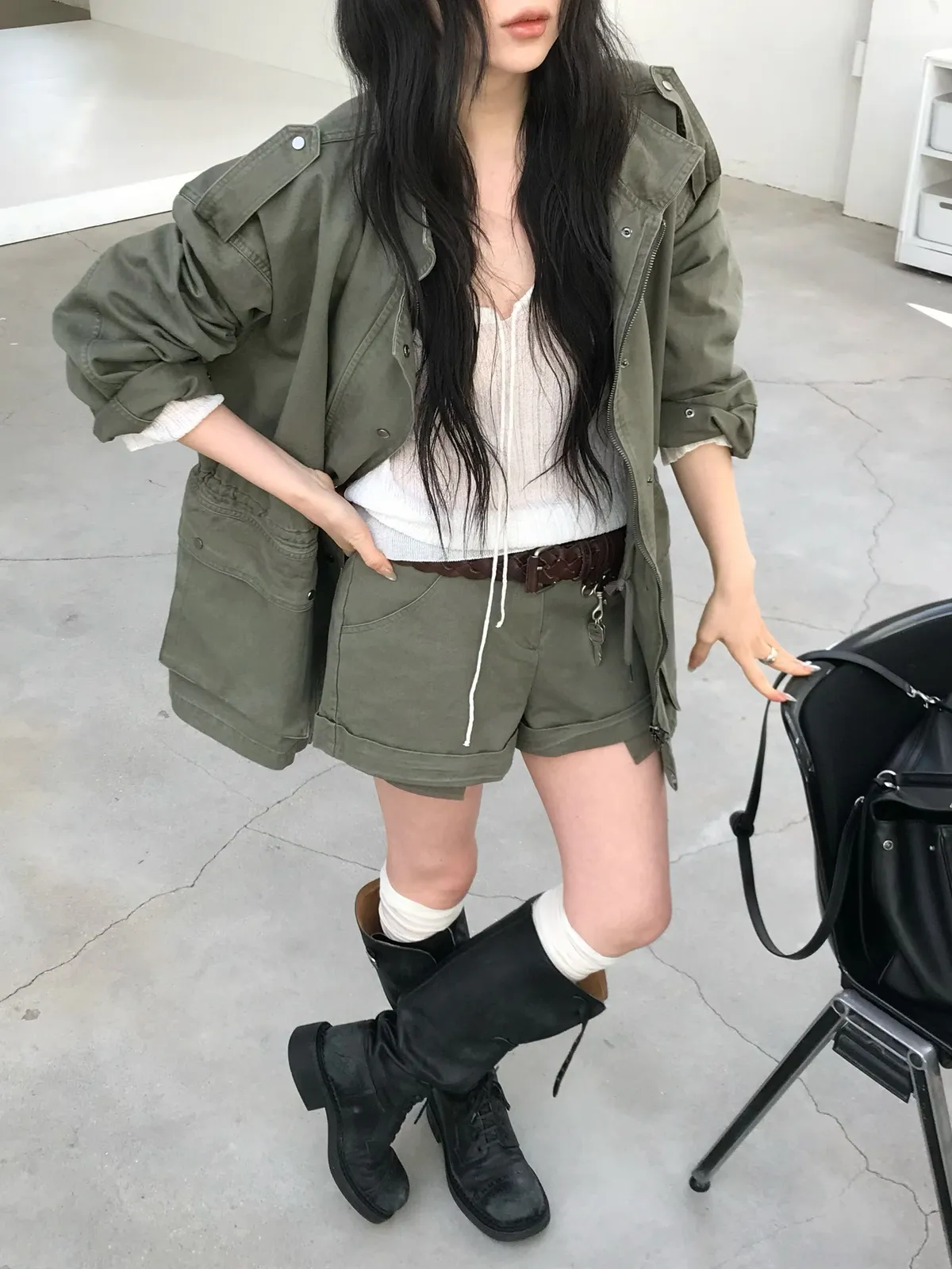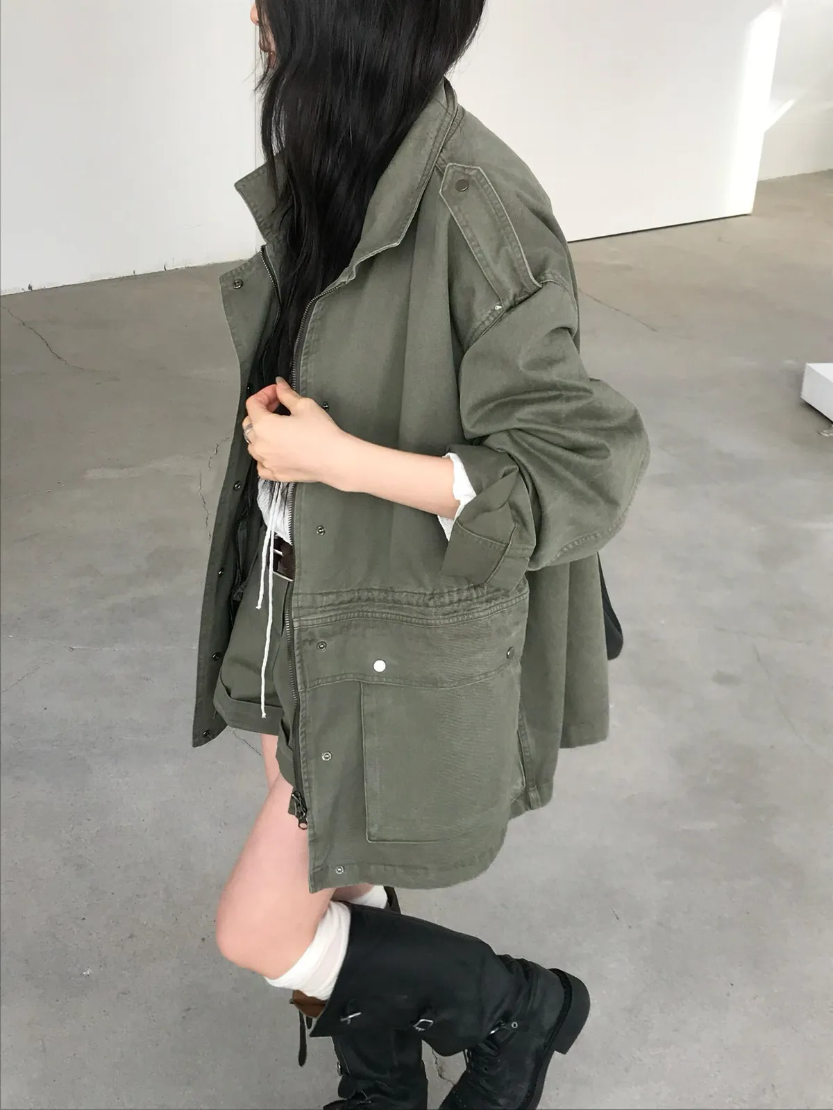 26DS60 中長版立領洗色薄斜紋棉工裝外套 2色