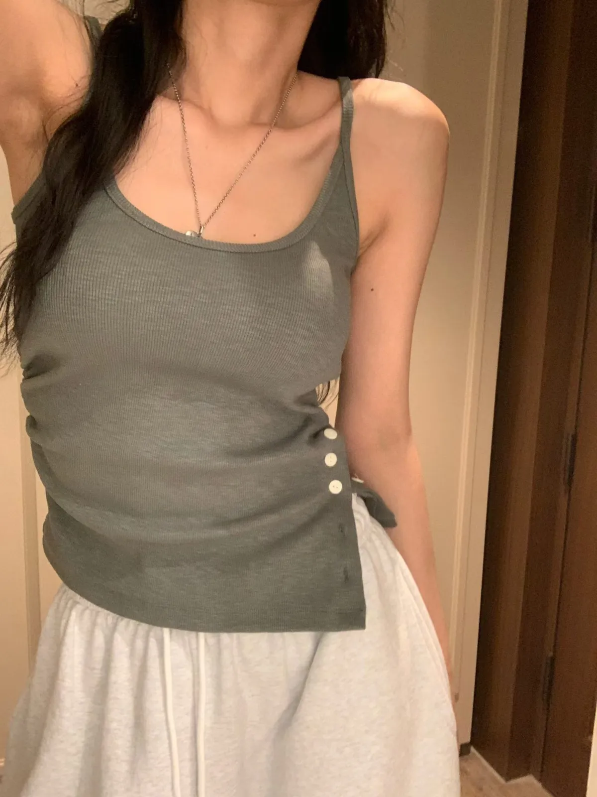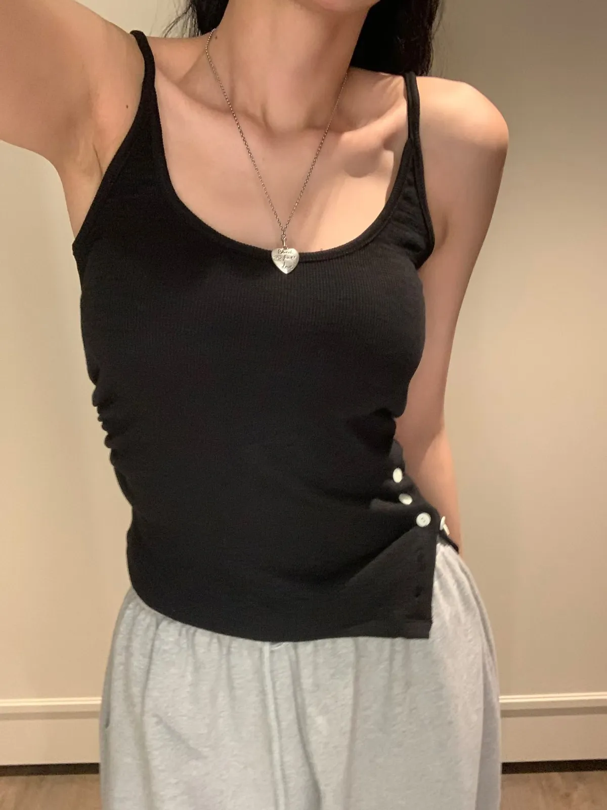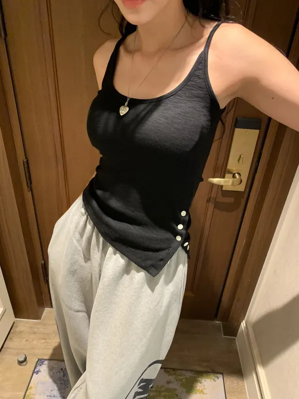 26EA14 細肩帶開岔斜邊背心 4色