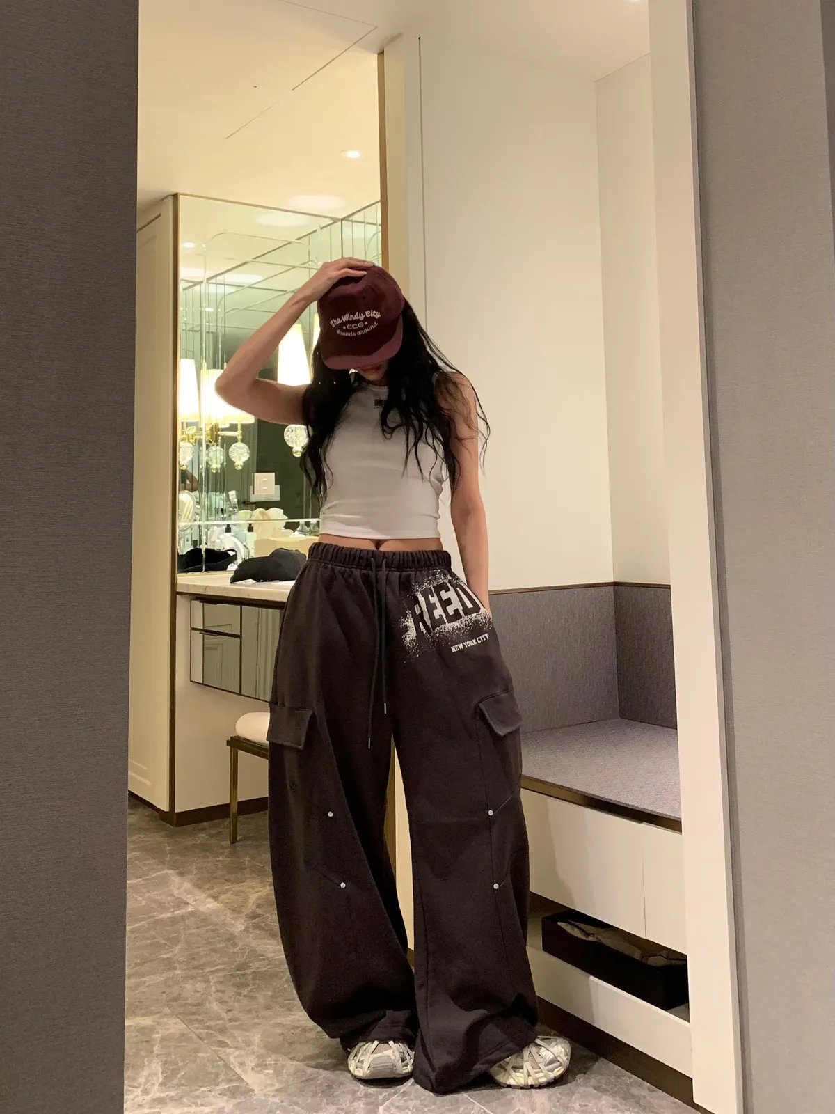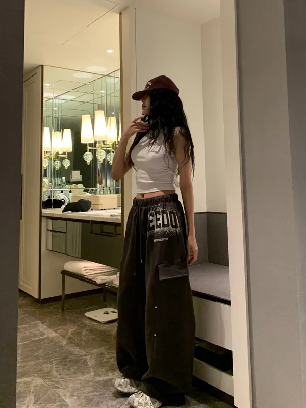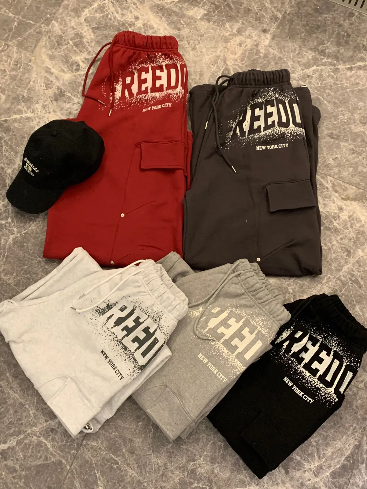 26EA21 噴漆英字薄毛巾兩穿縮腳棉褲 5色