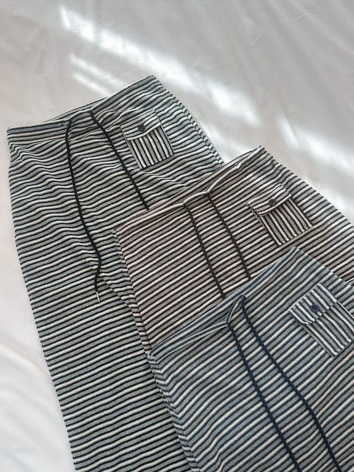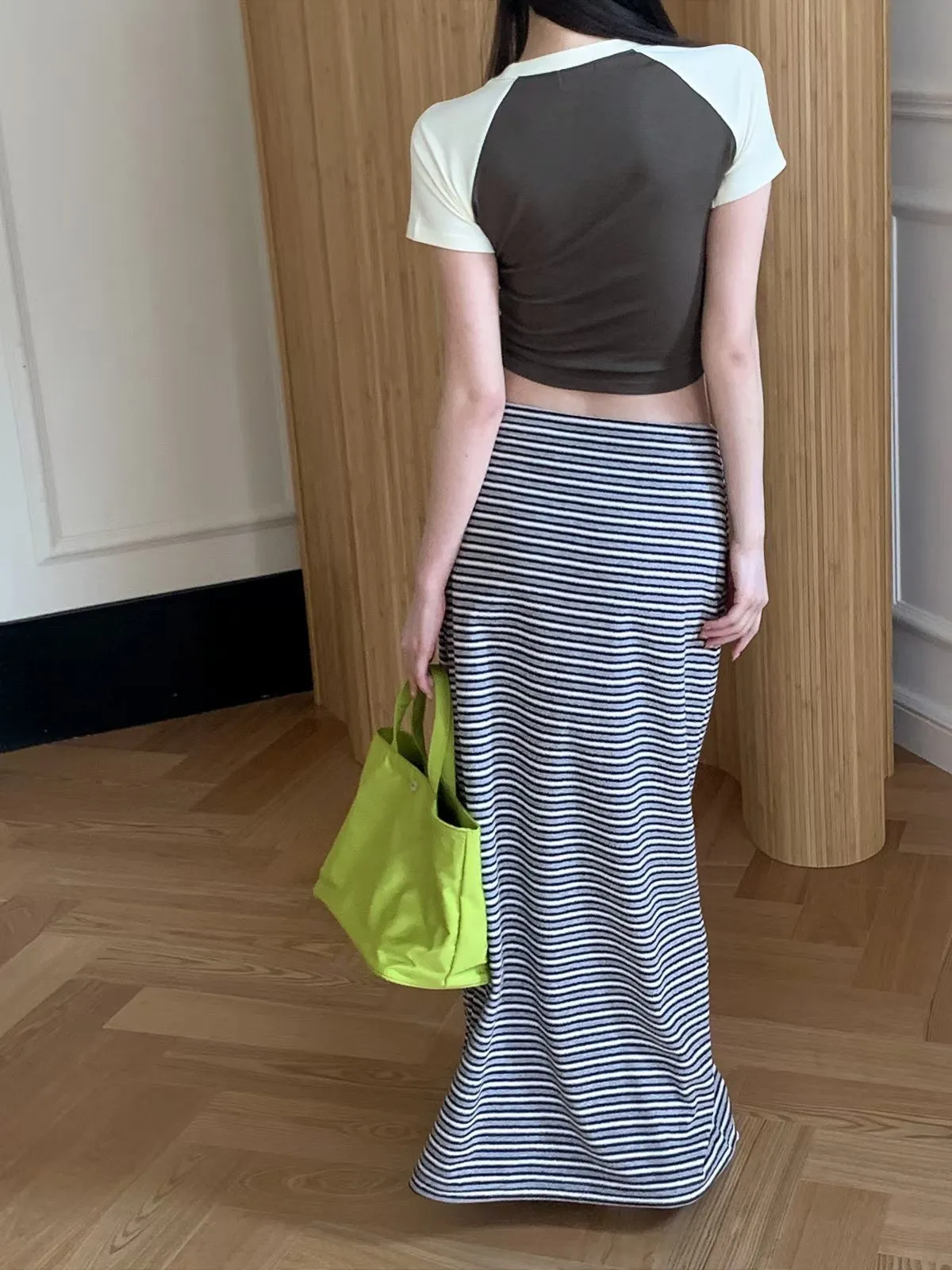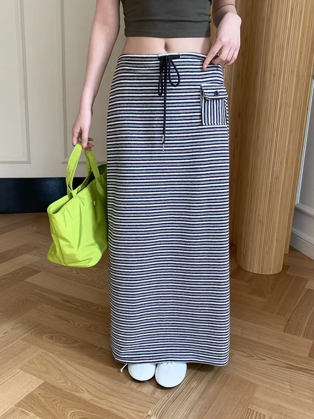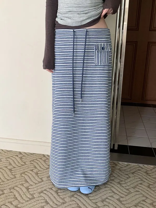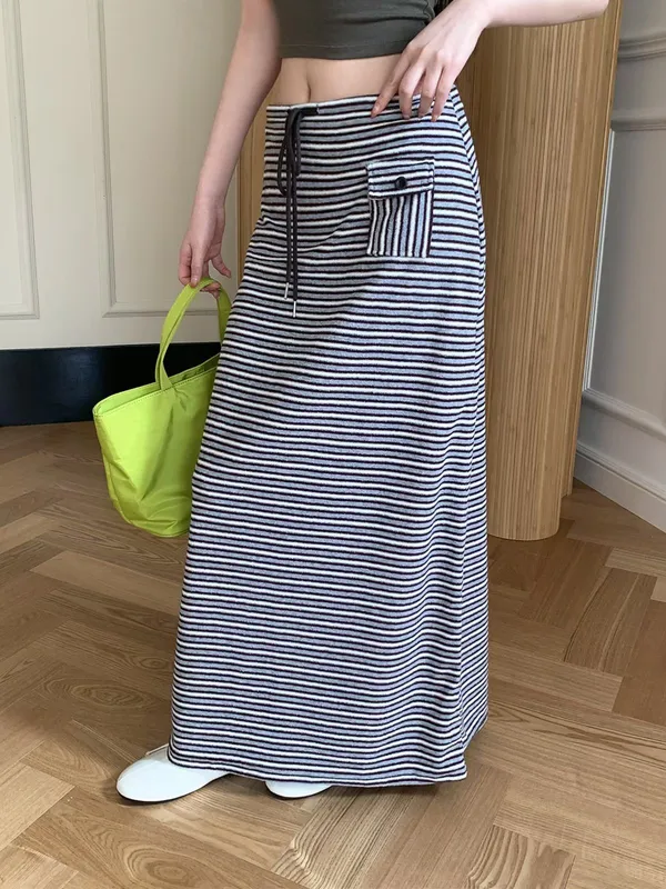 26EB02 翻毛巾條紋長裙 3色