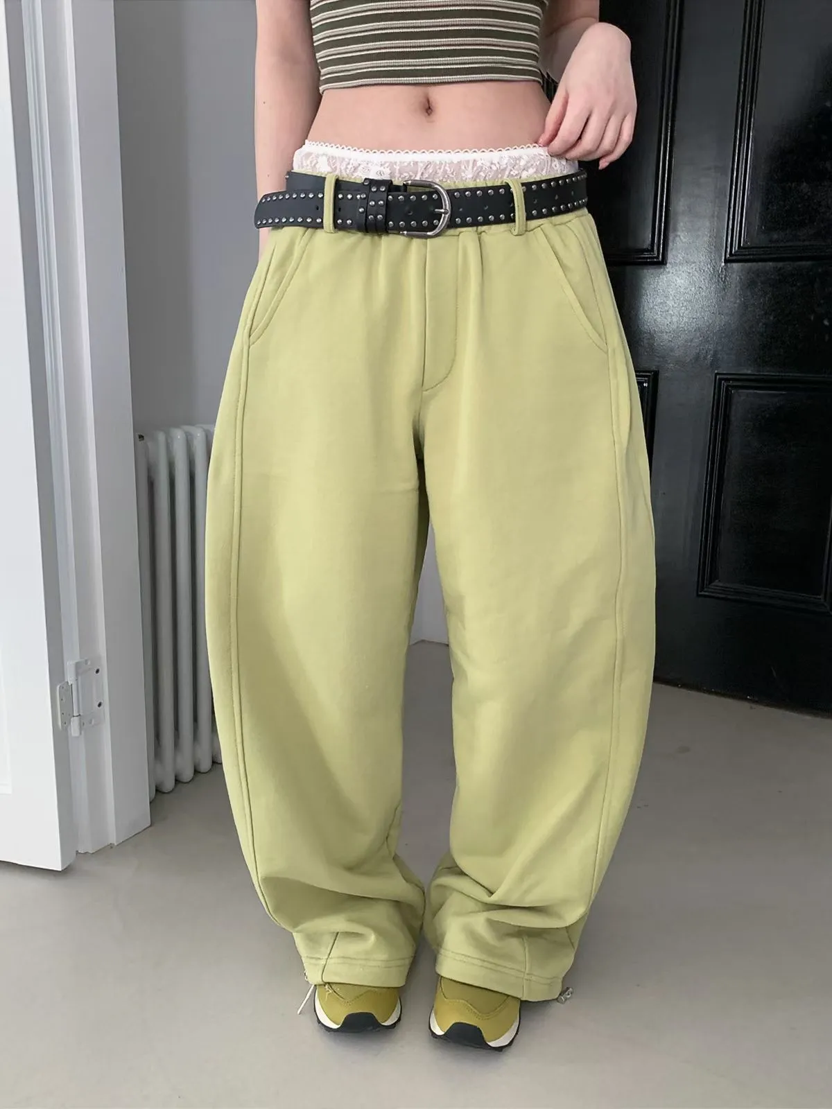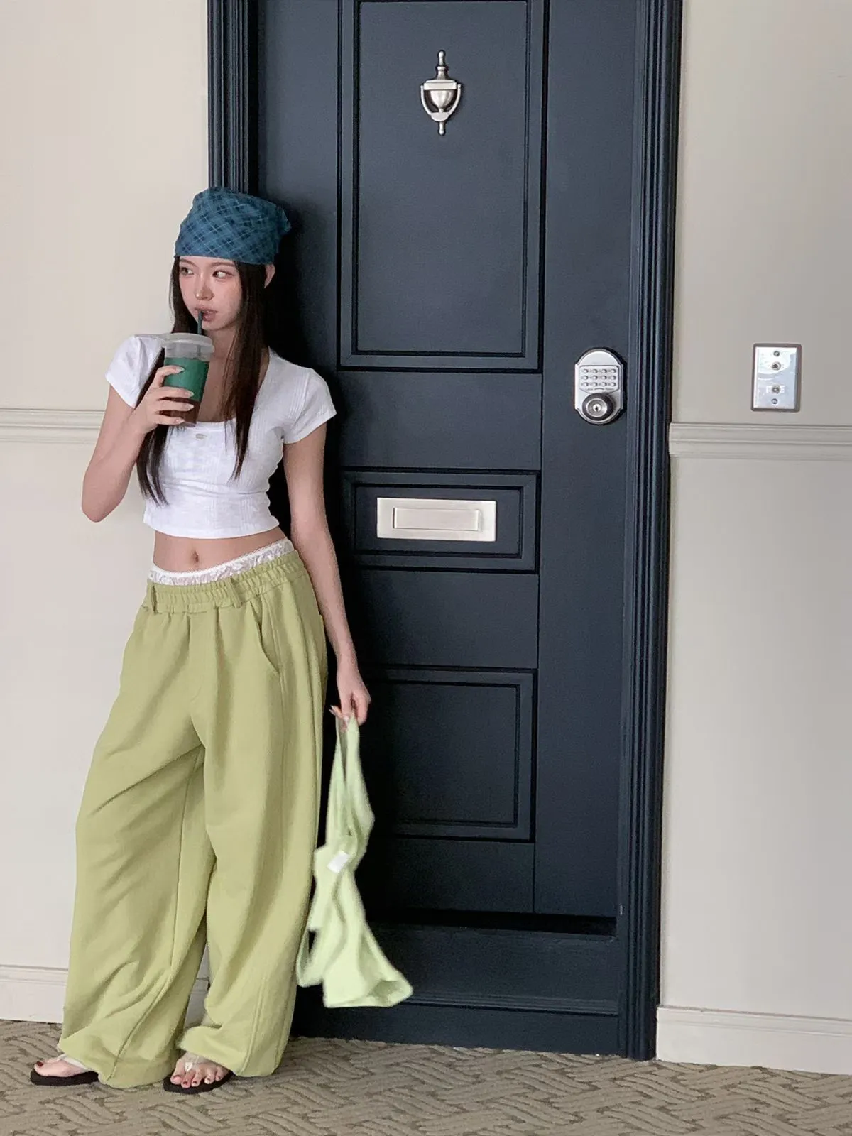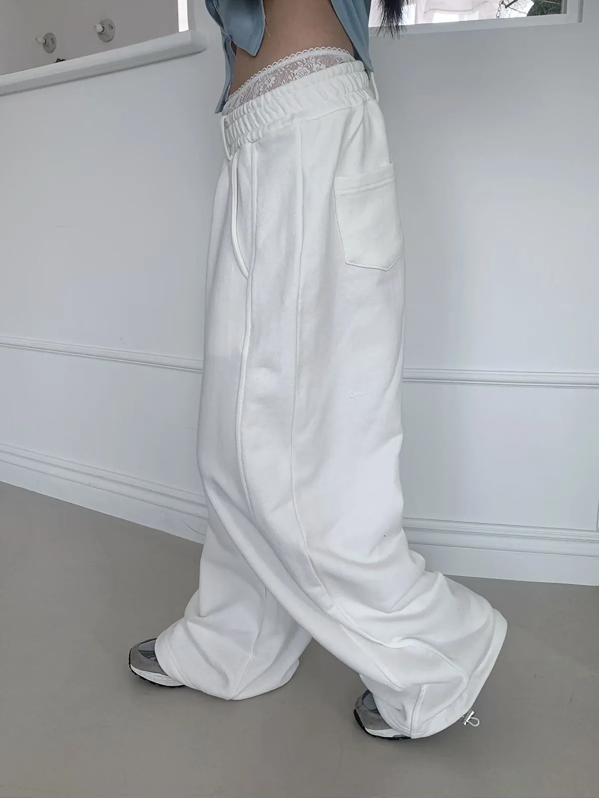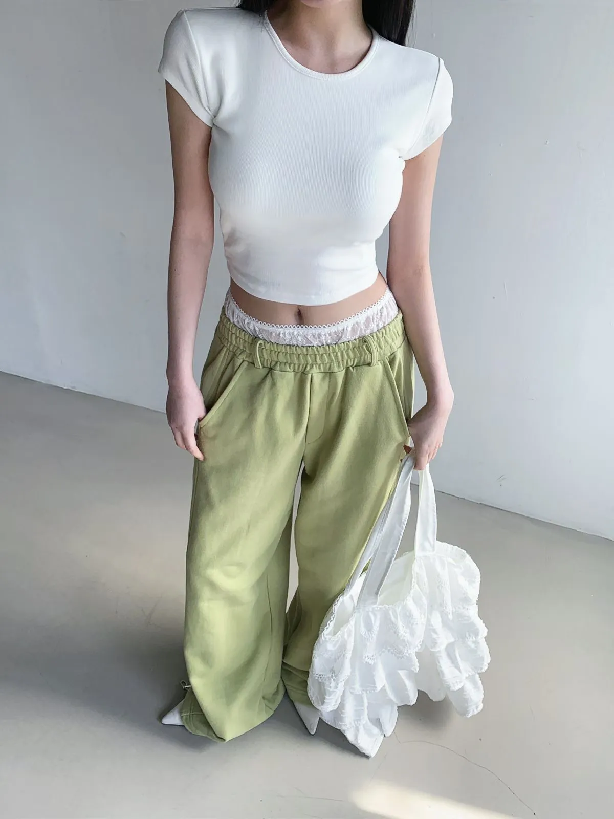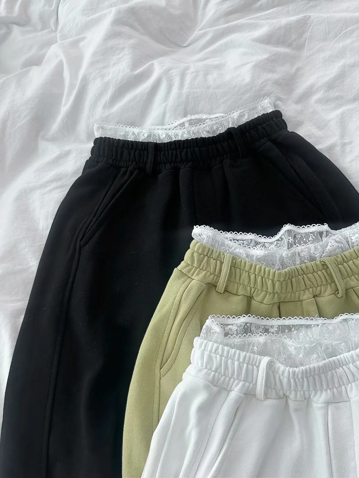 26EB13 蕾絲雙褲頭薄毛巾棉長褲 3色