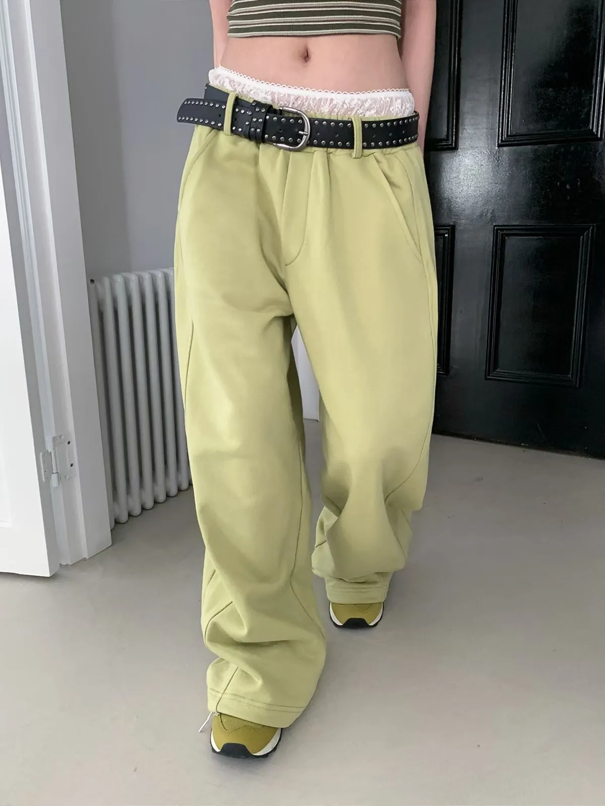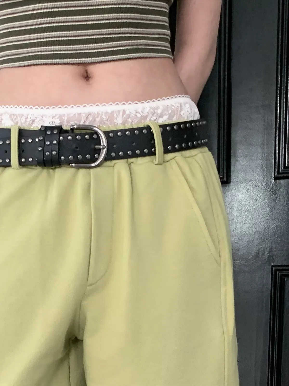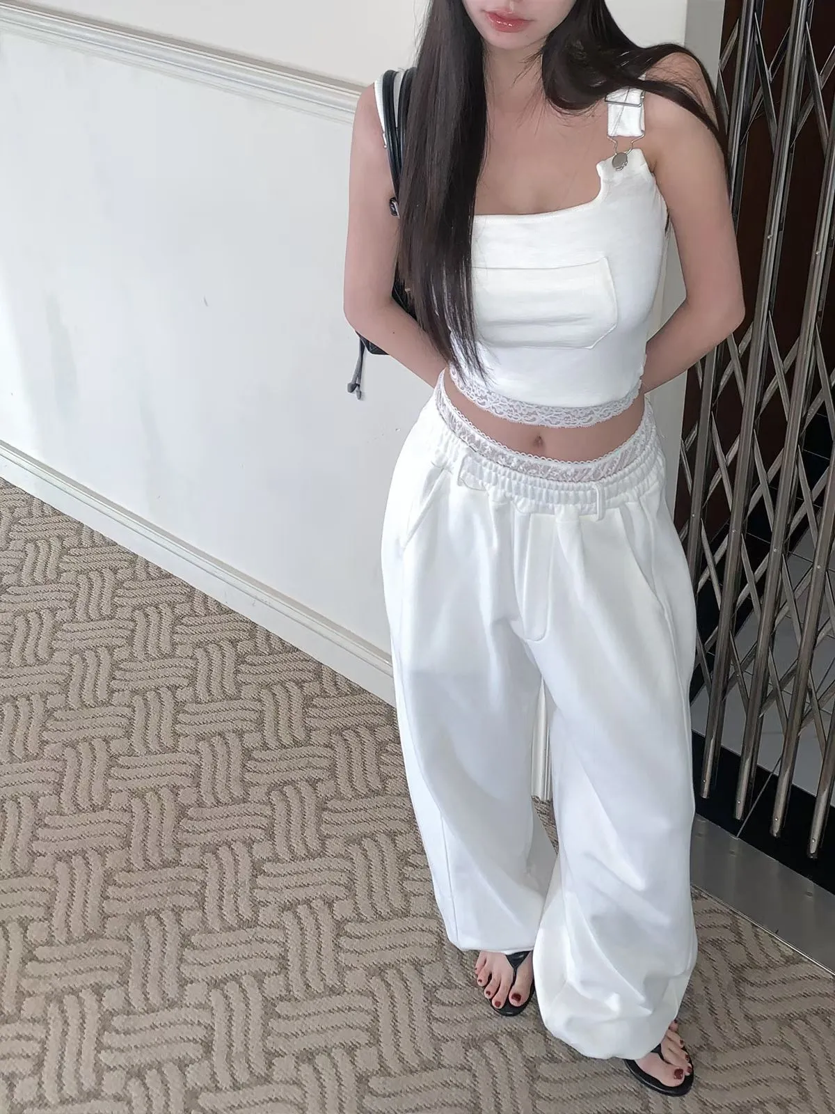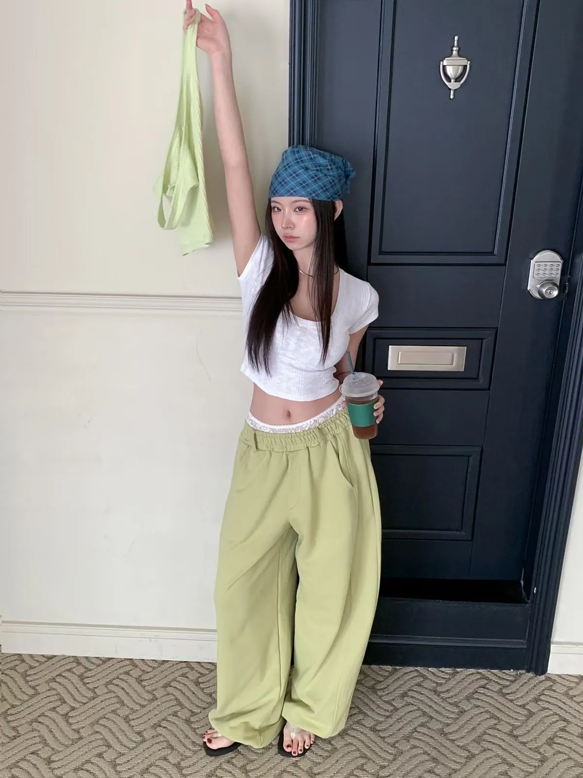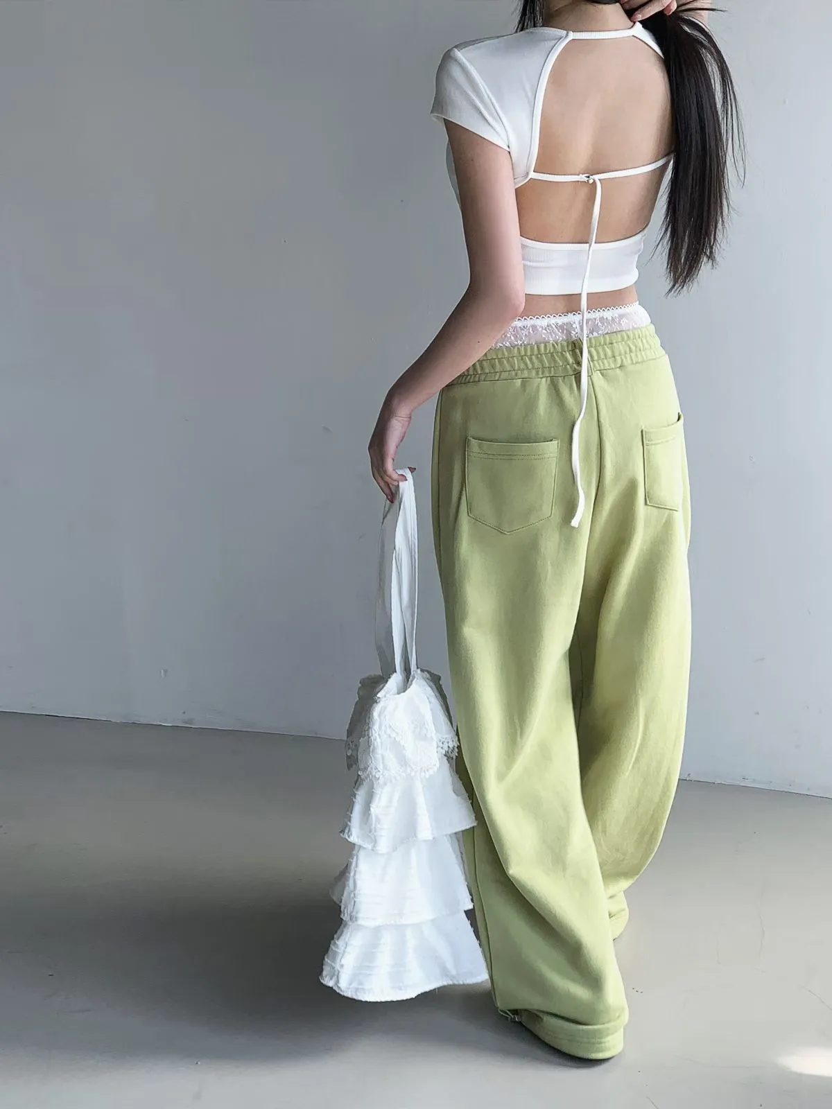 26EB13 蕾絲雙褲頭薄毛巾棉長褲 3色