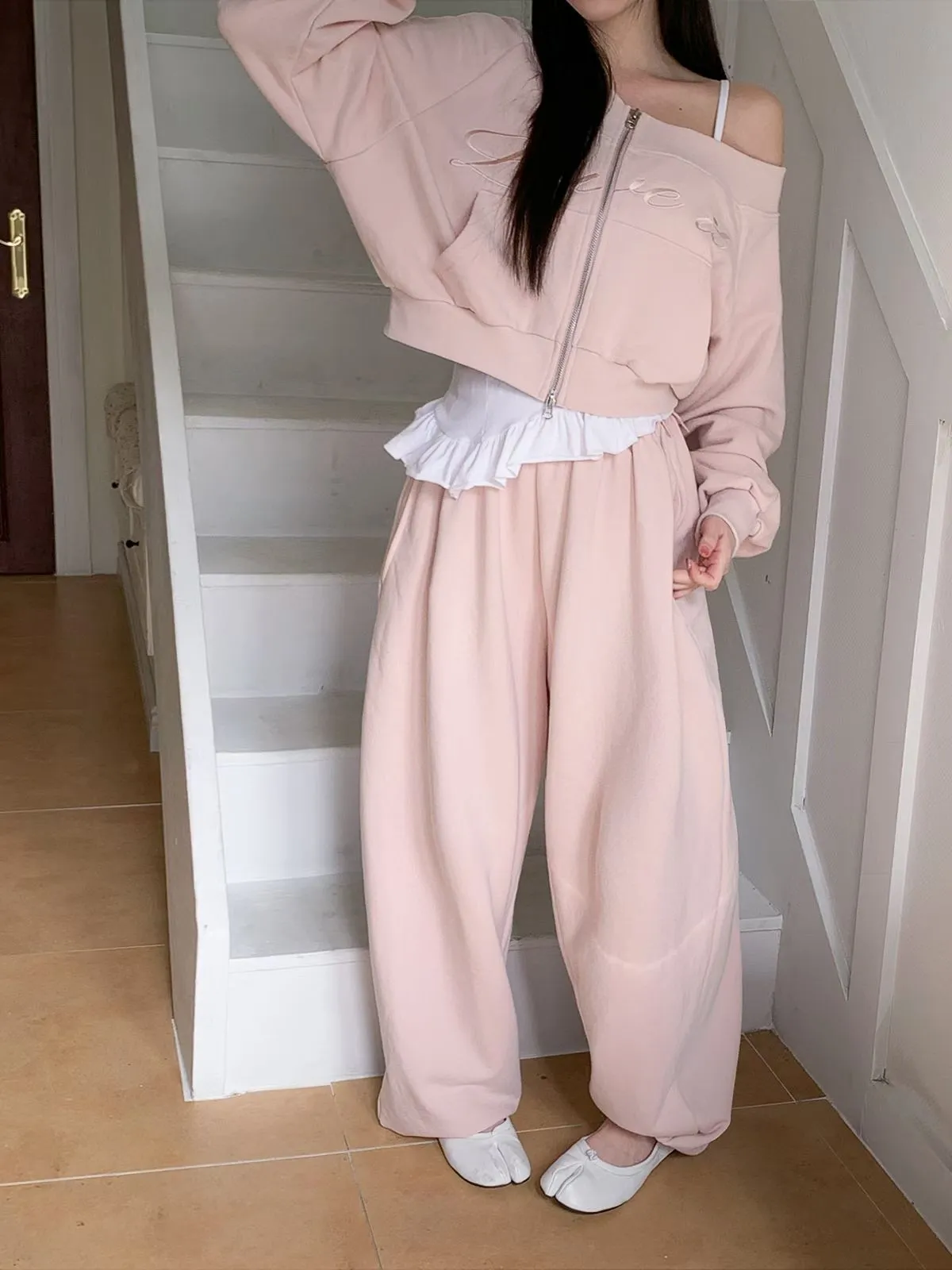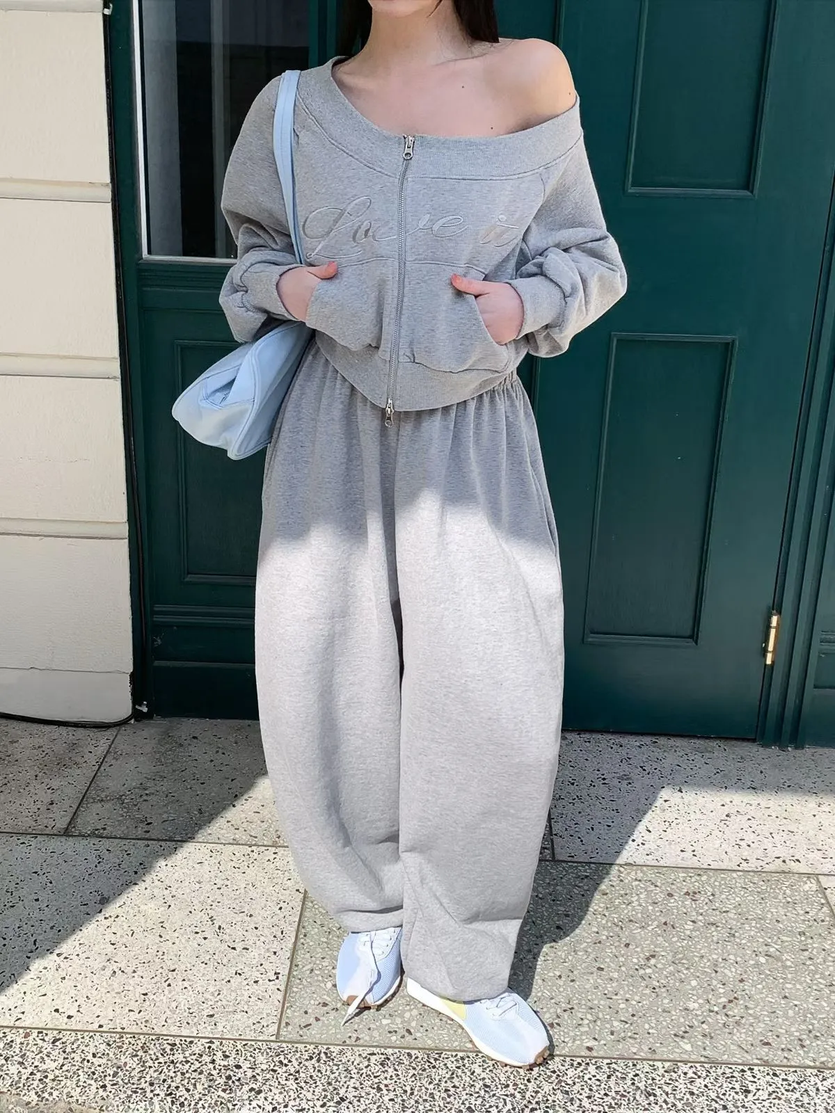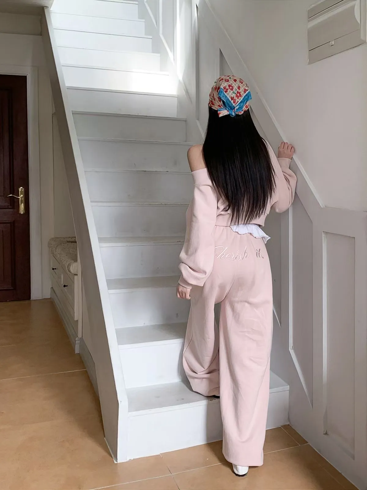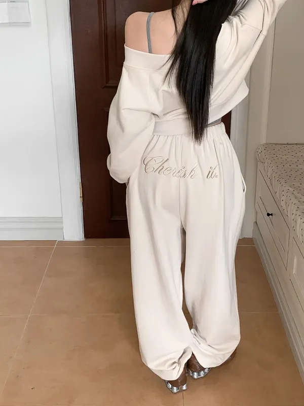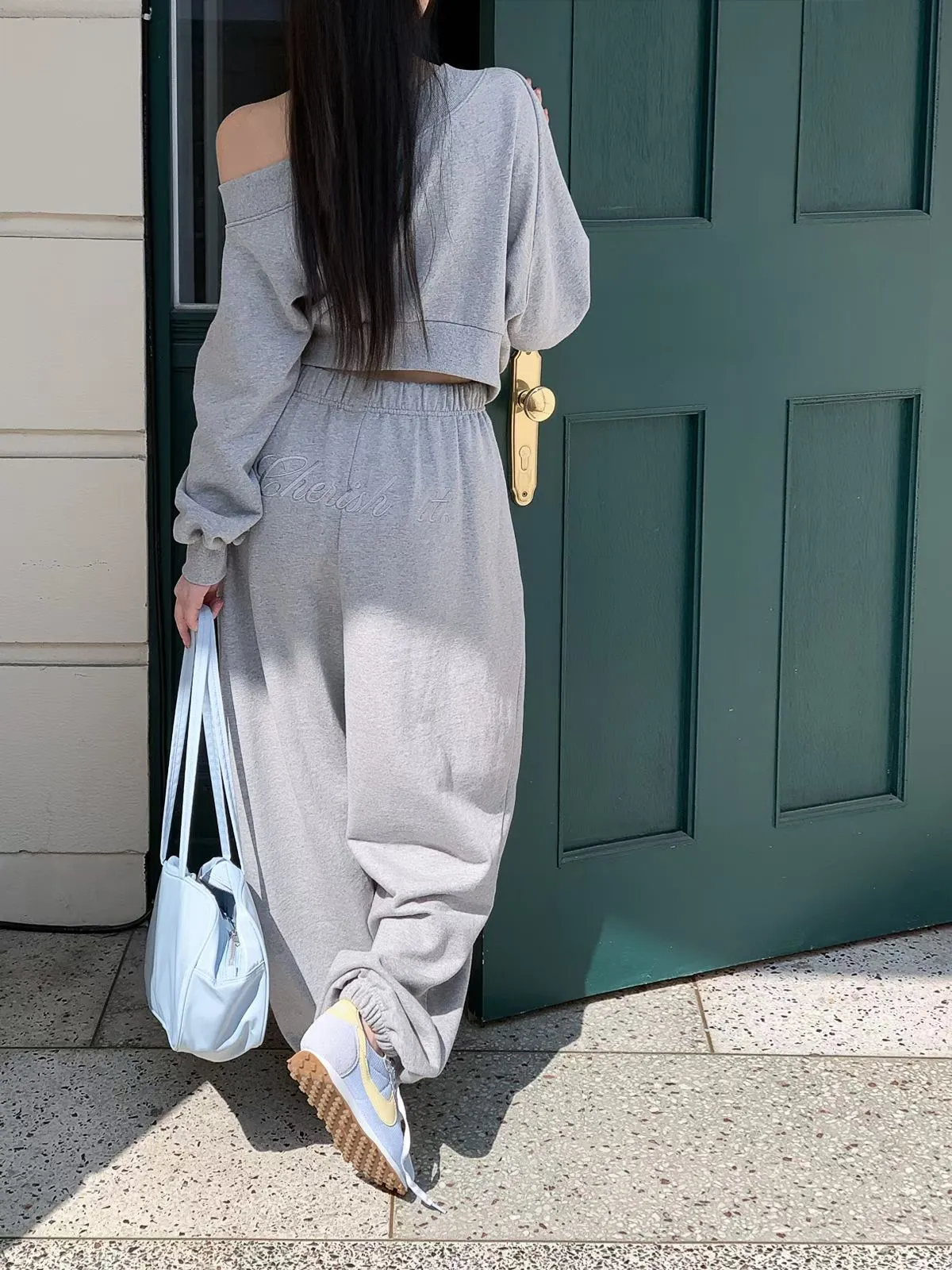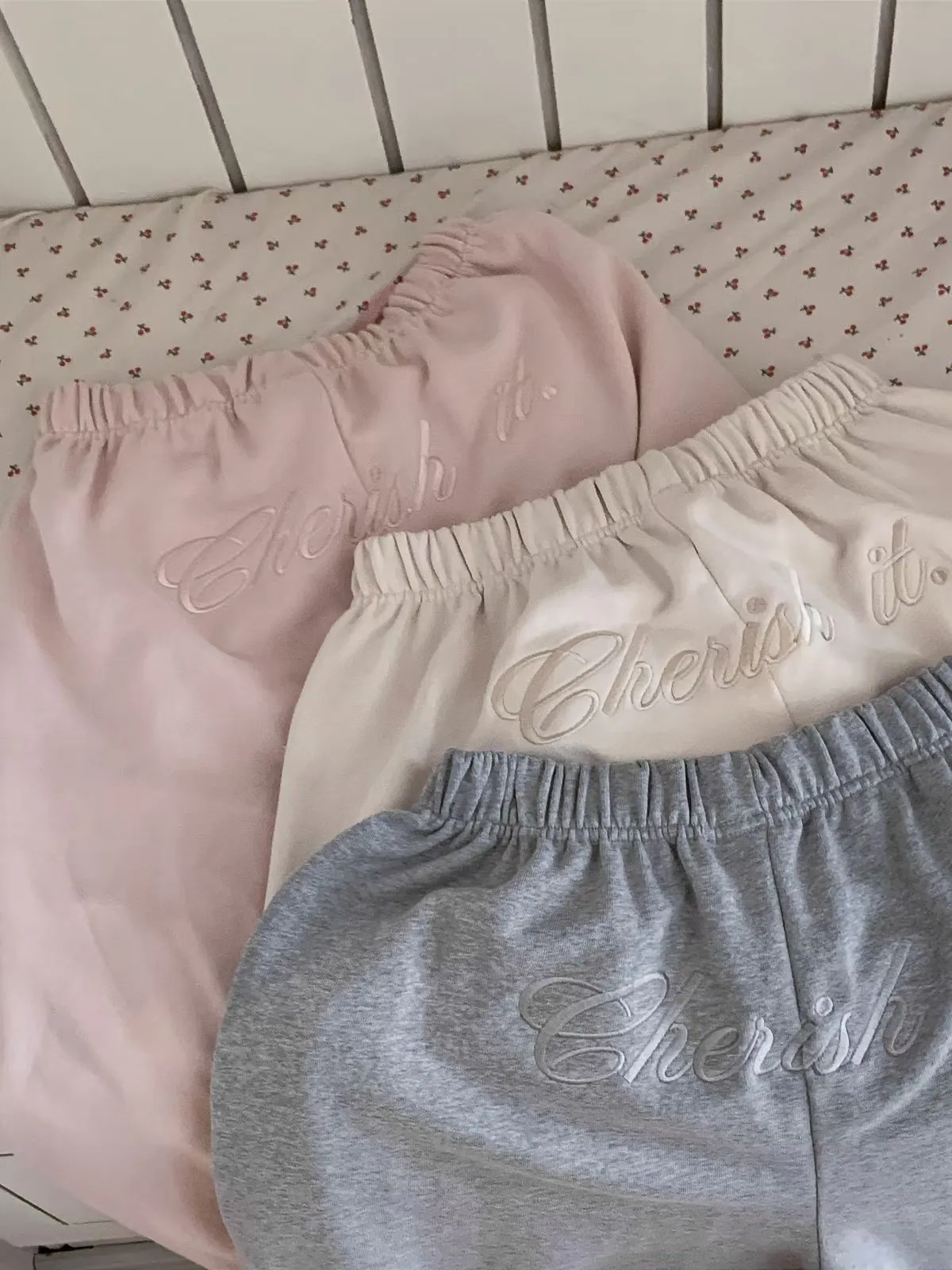 26EB19 後電繡英字薄毛巾縮口棉長褲 3色