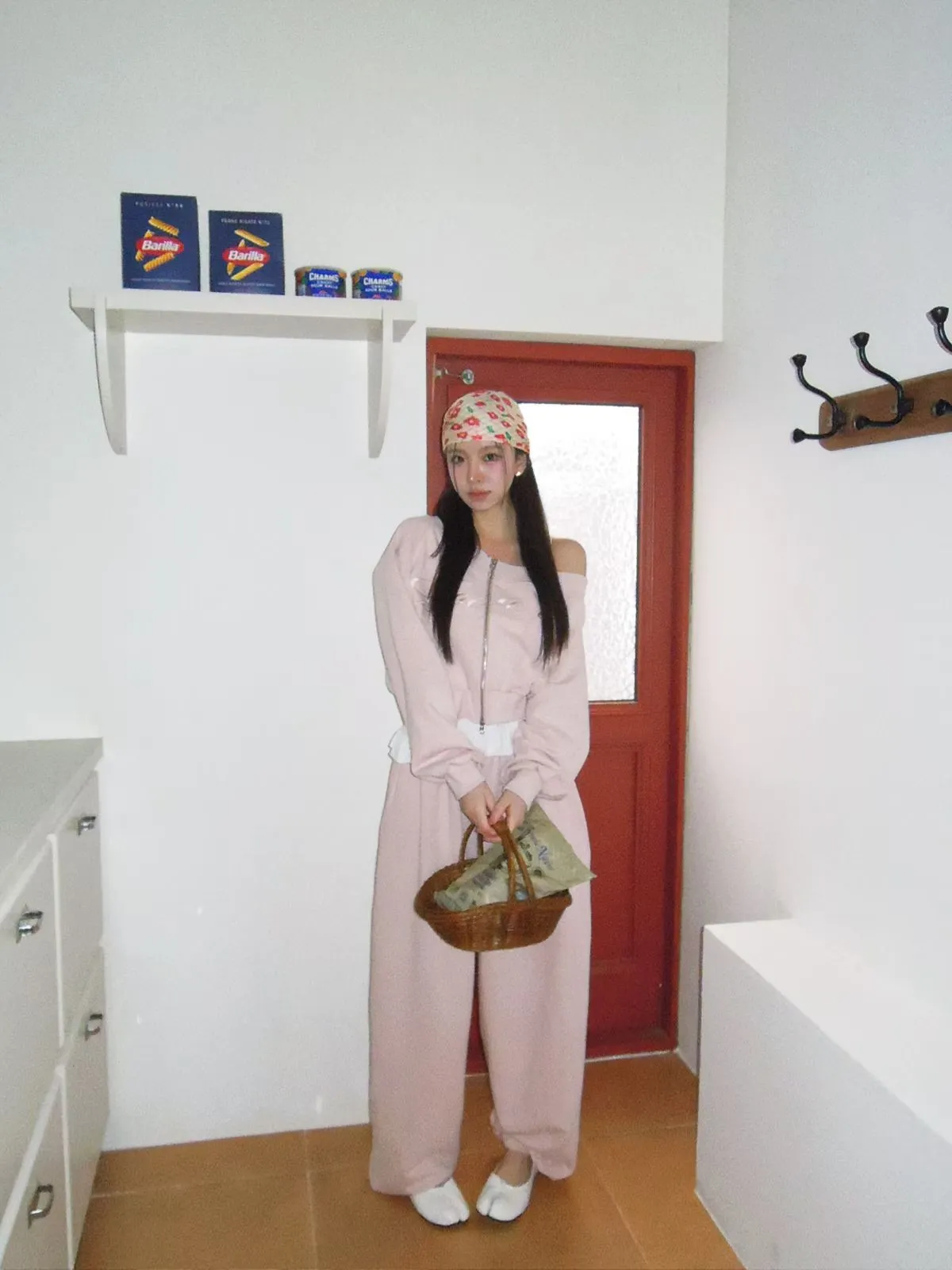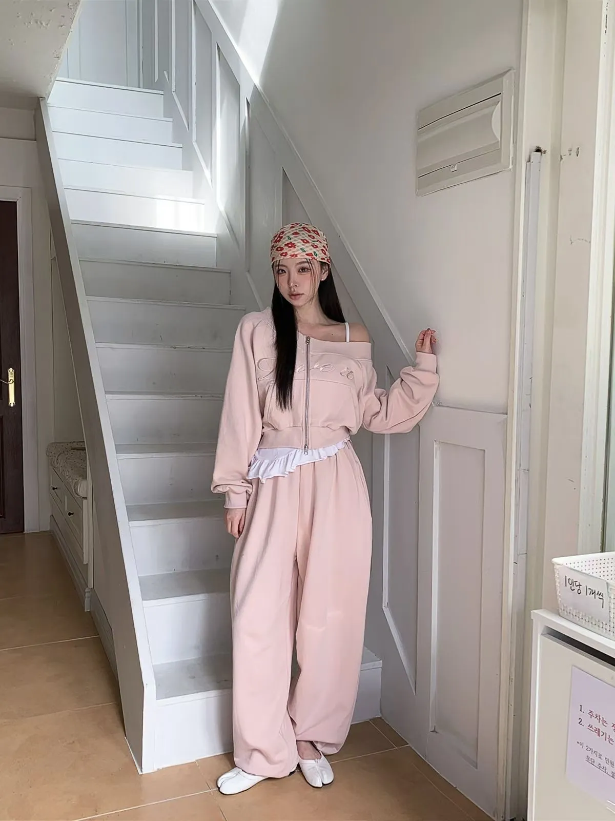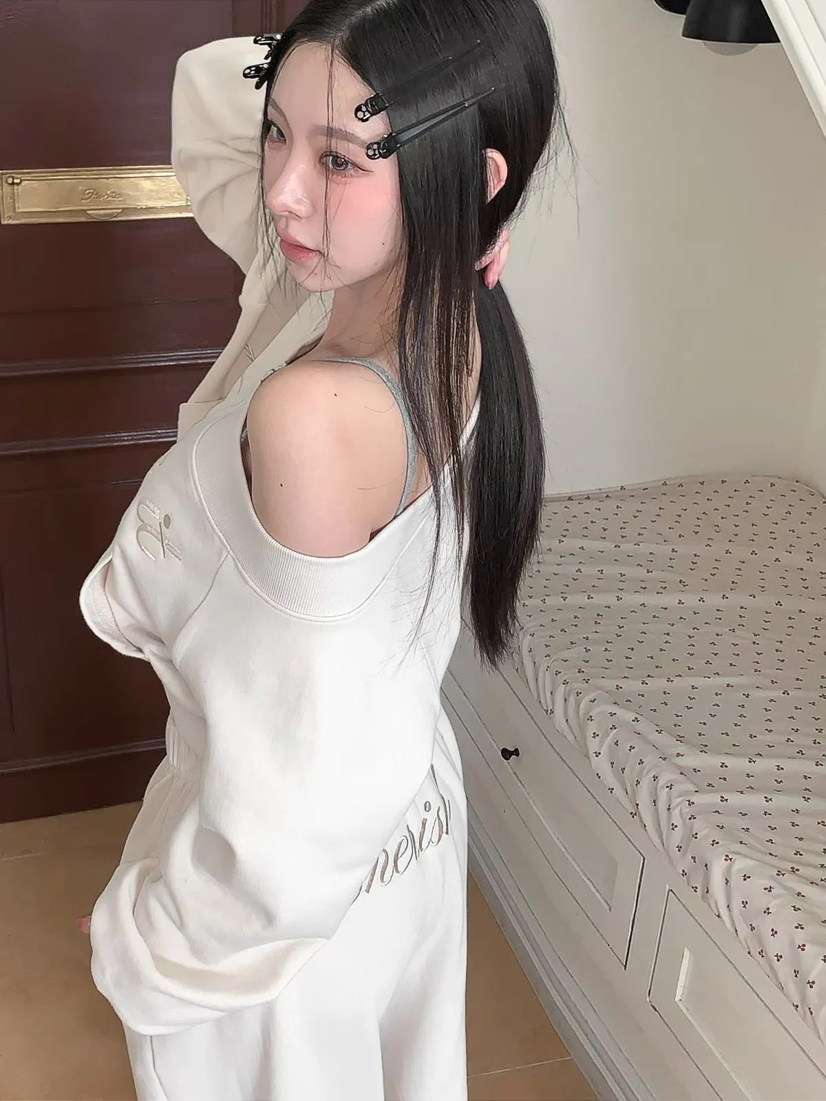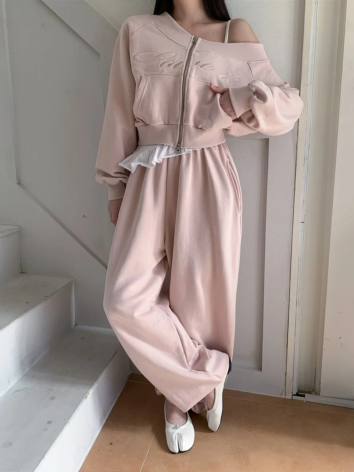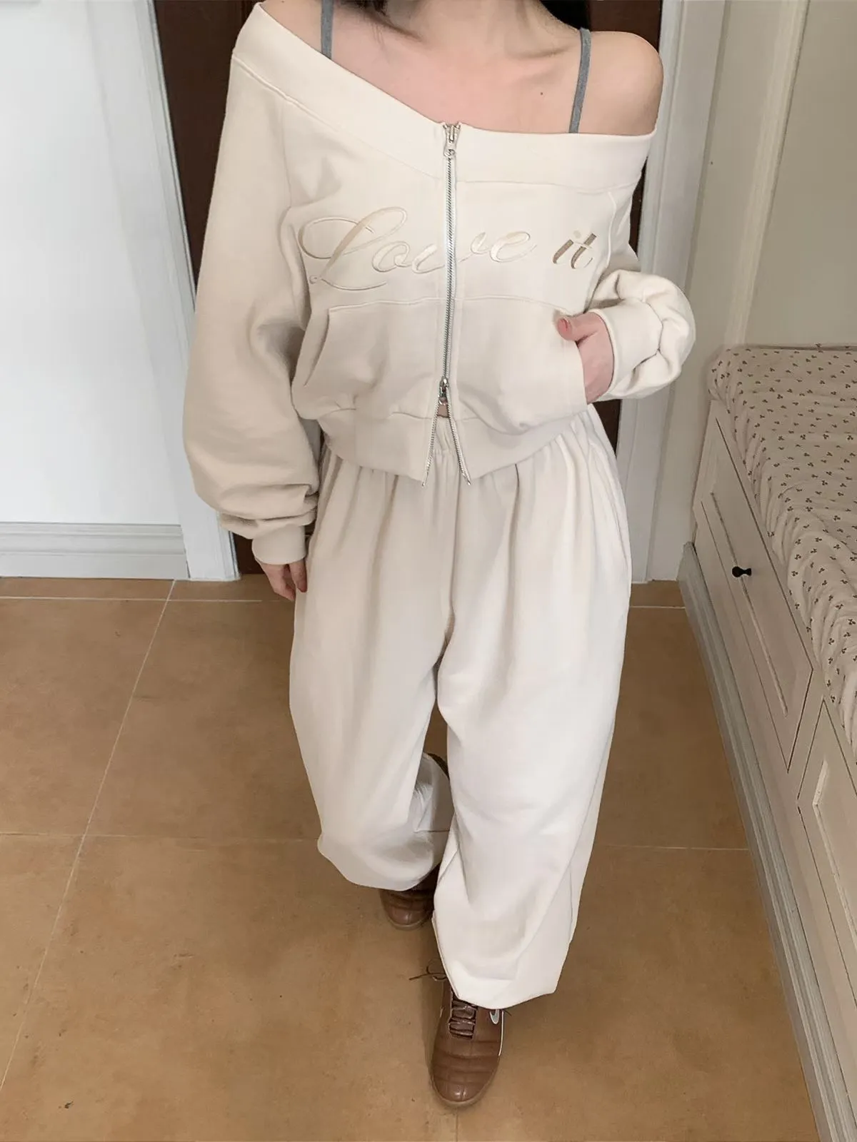 26EB19 後電繡英字薄毛巾縮口棉長褲 3色