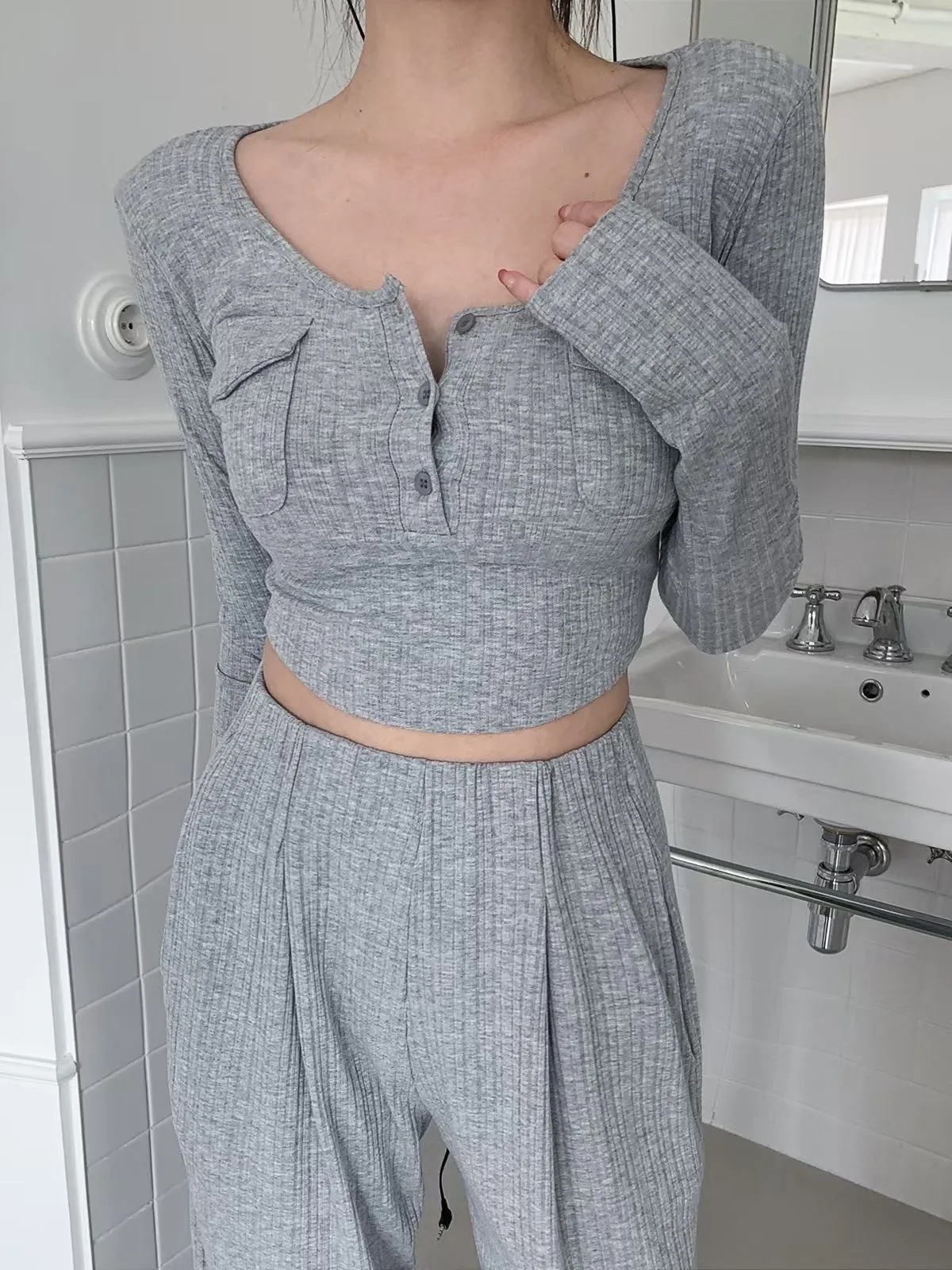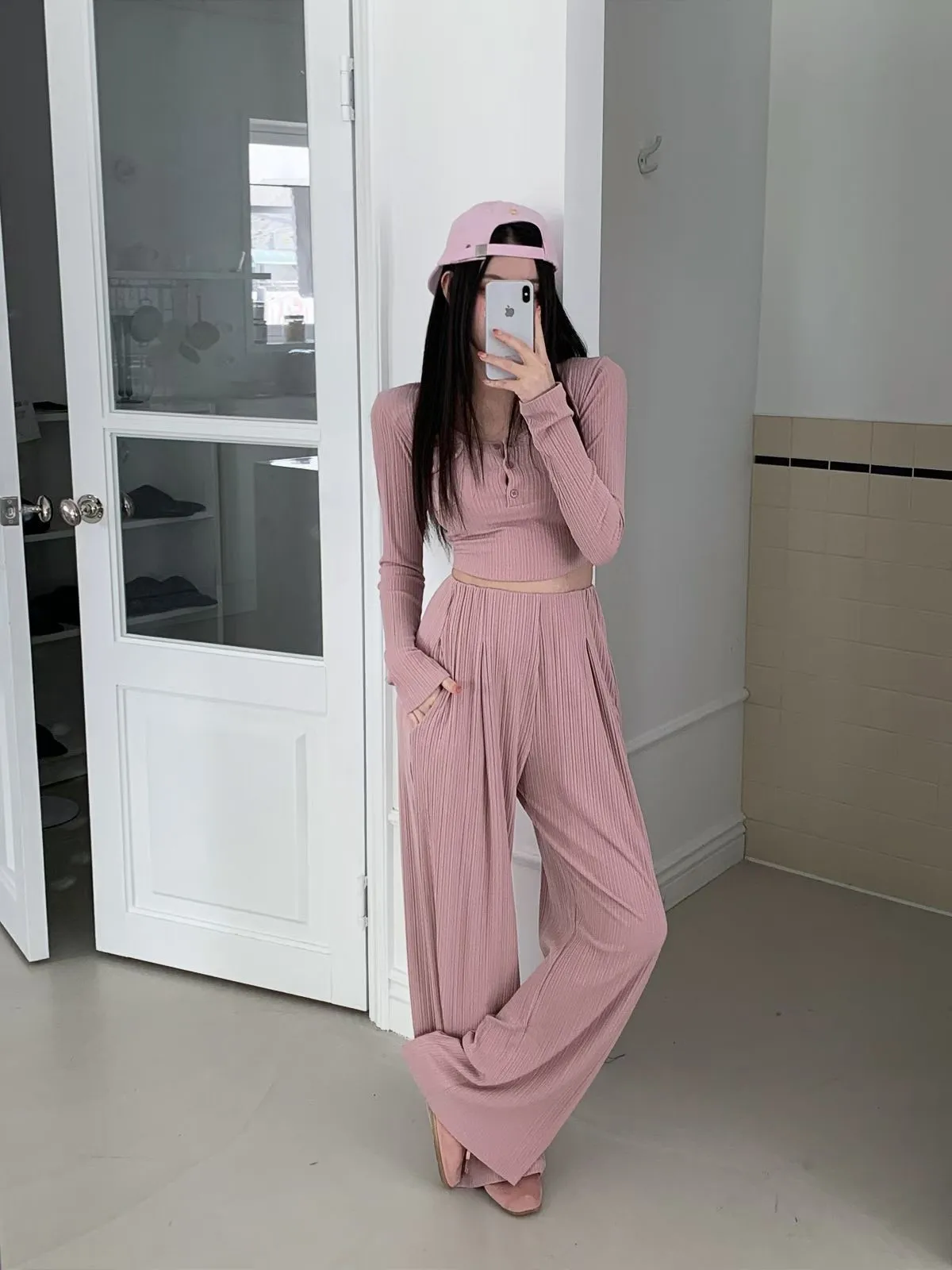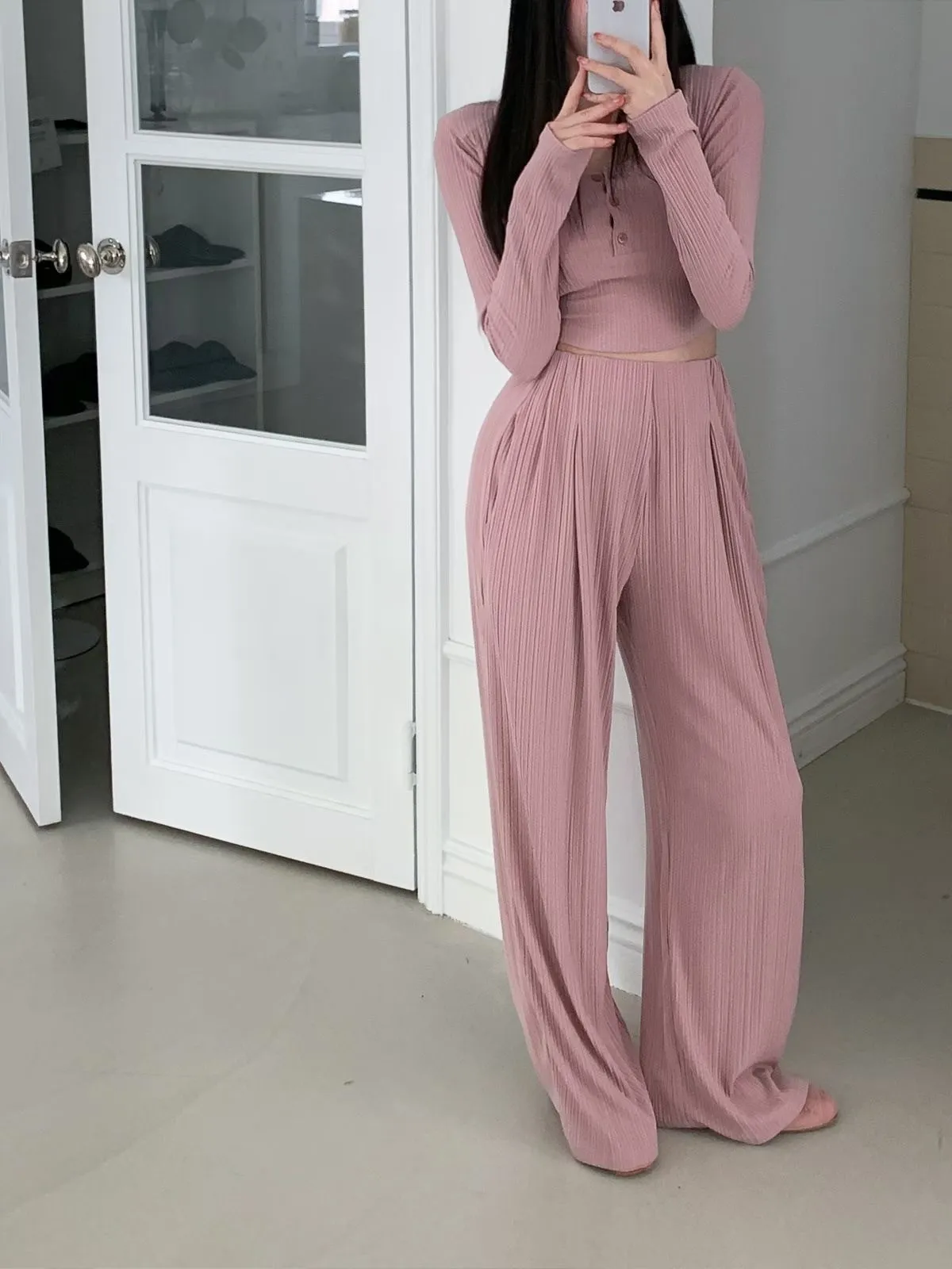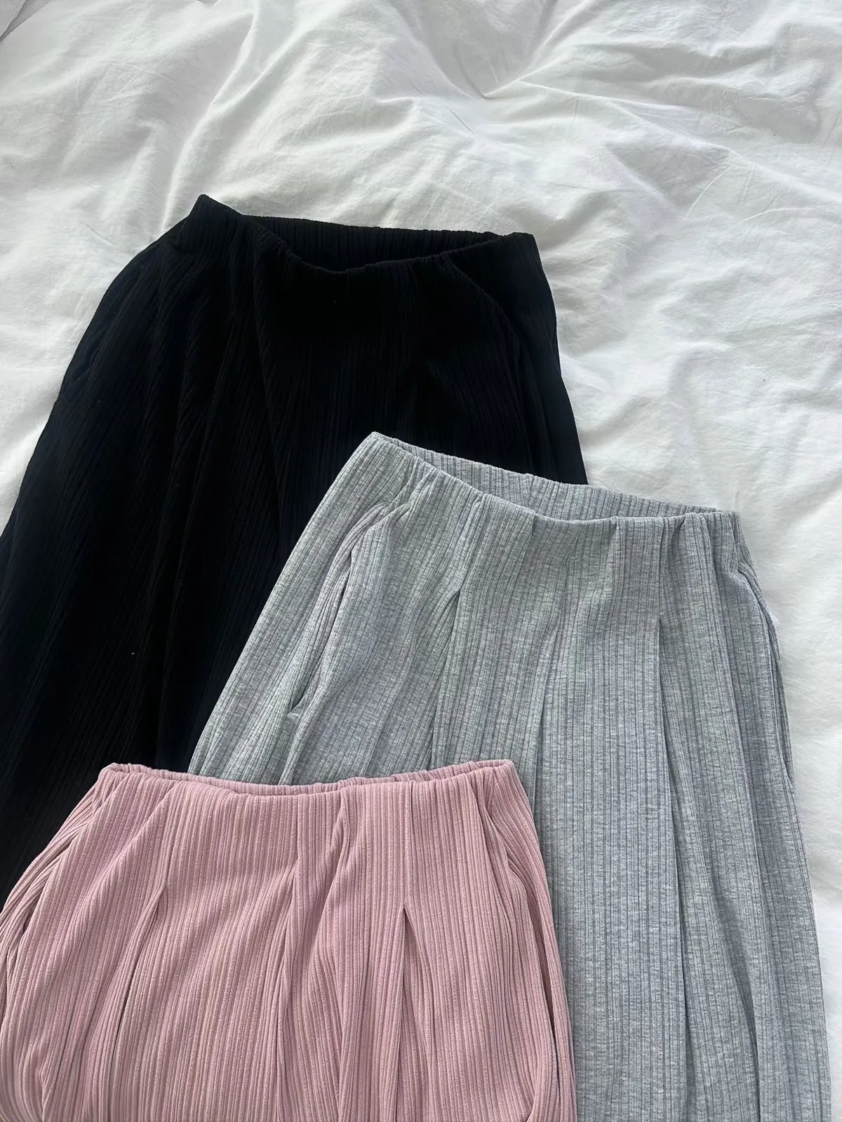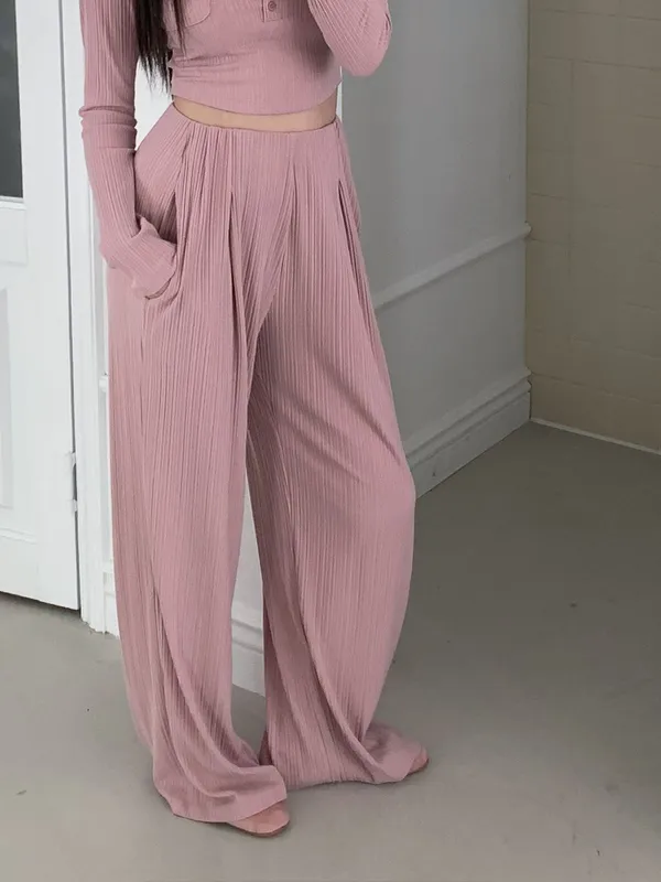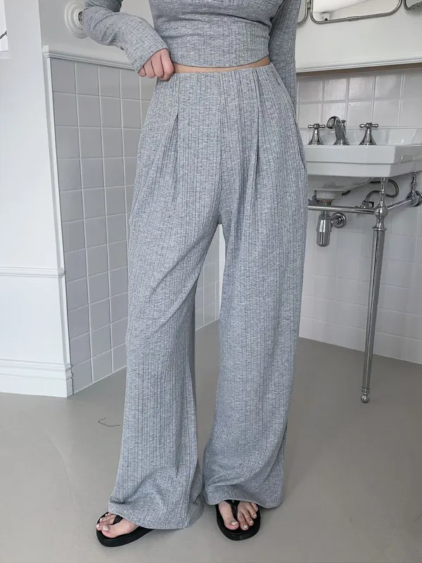 26EB22 無褲頭打摺坑條長褲 3色