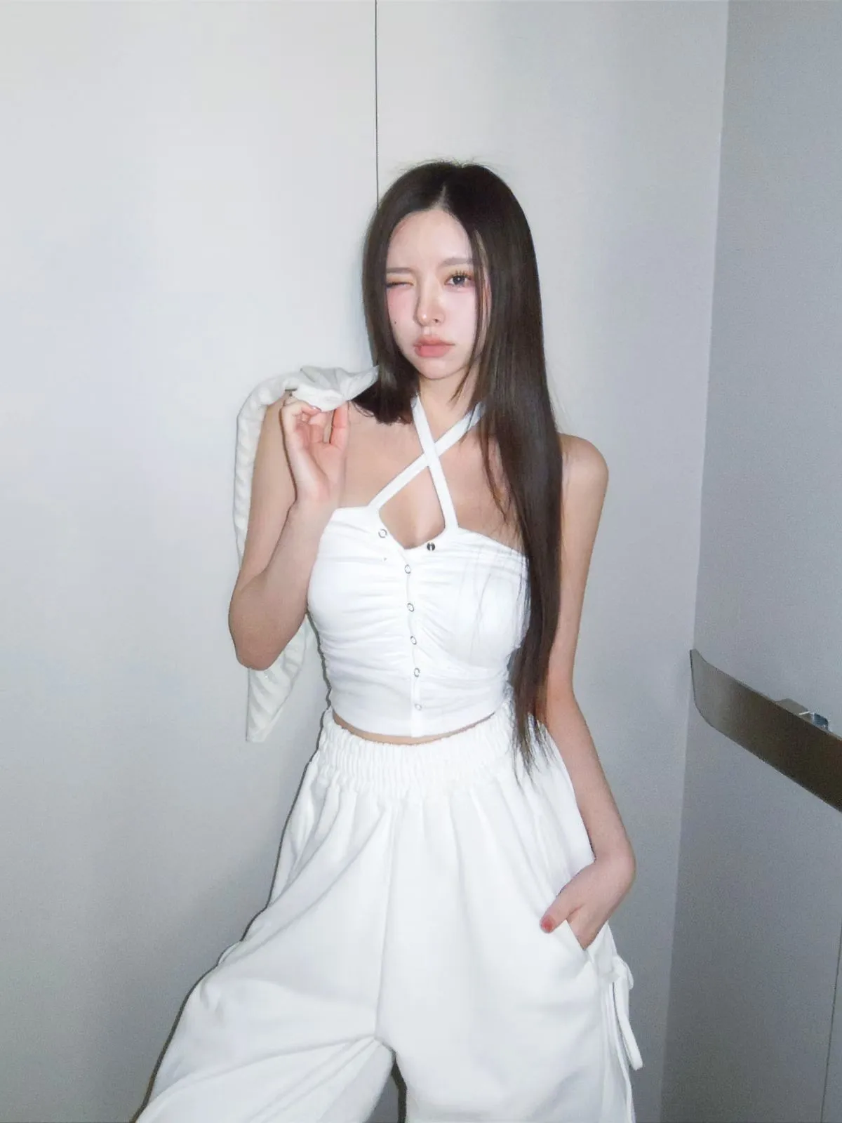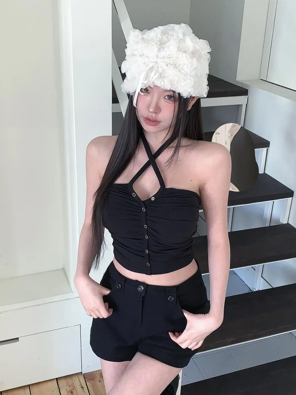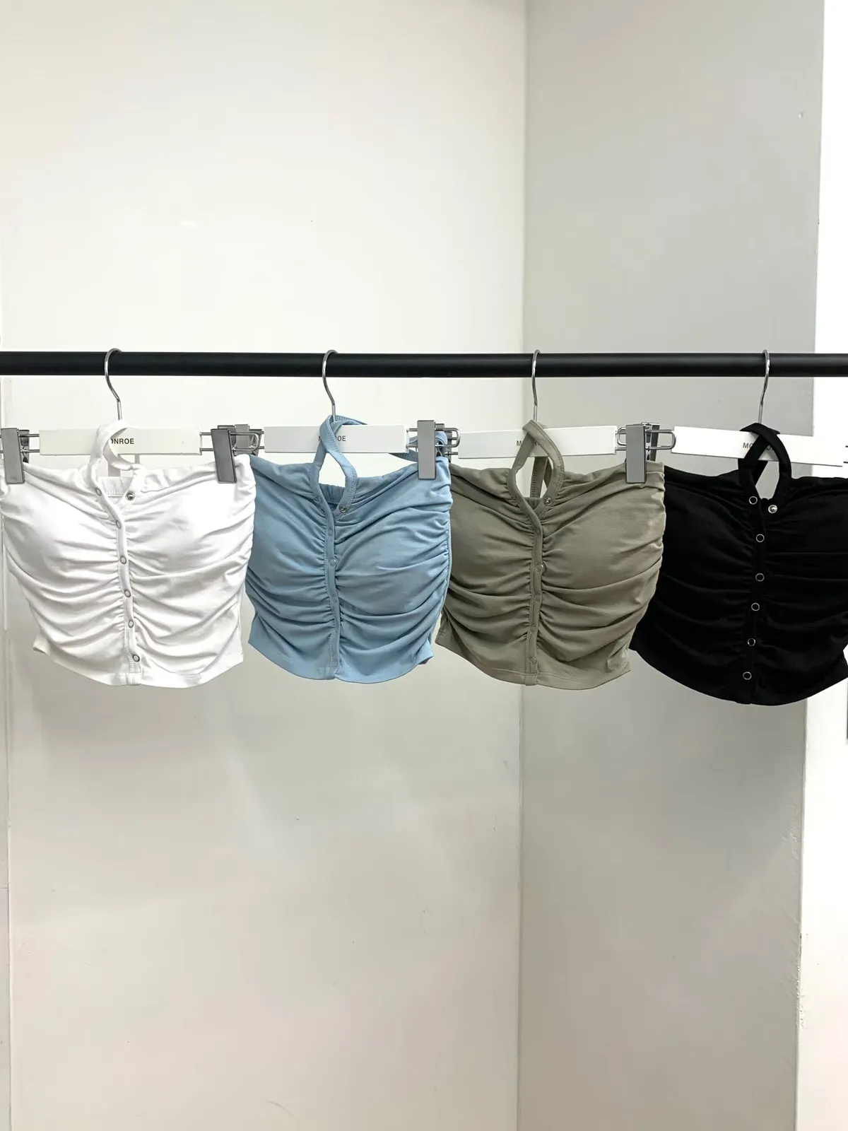 26EB24 交叉帶美胸抓摺bra短版背心 4色