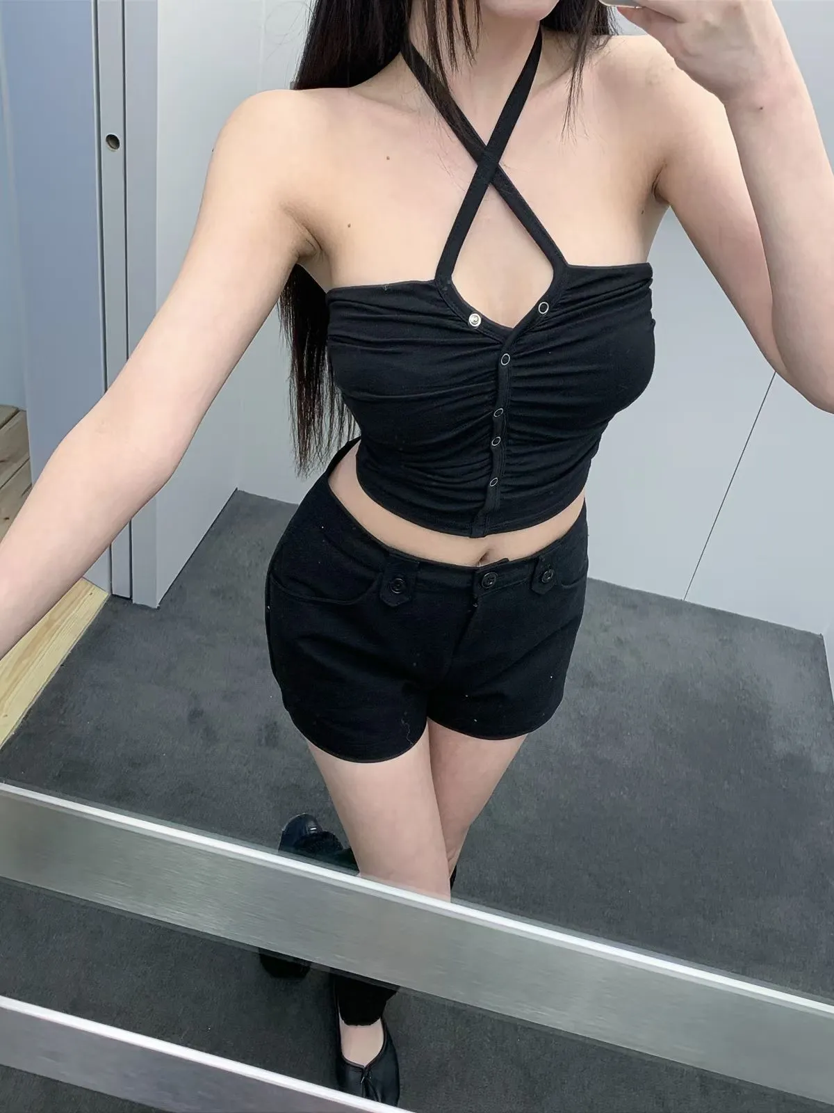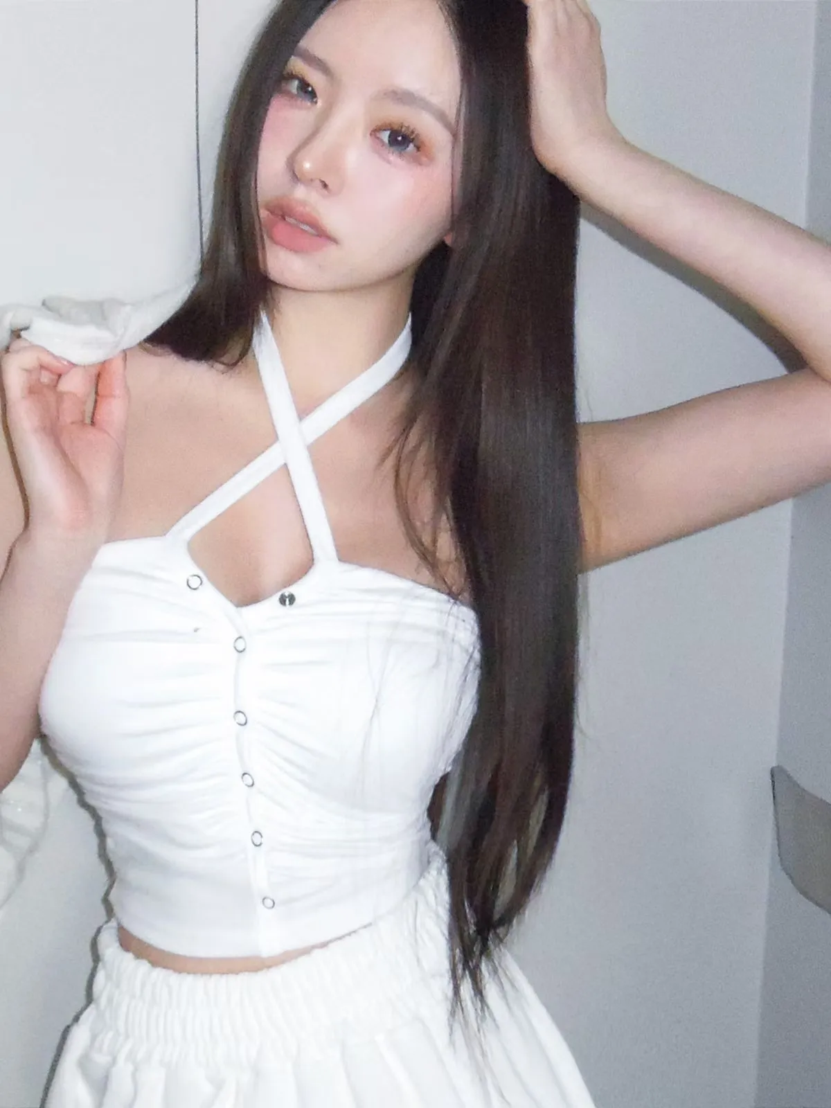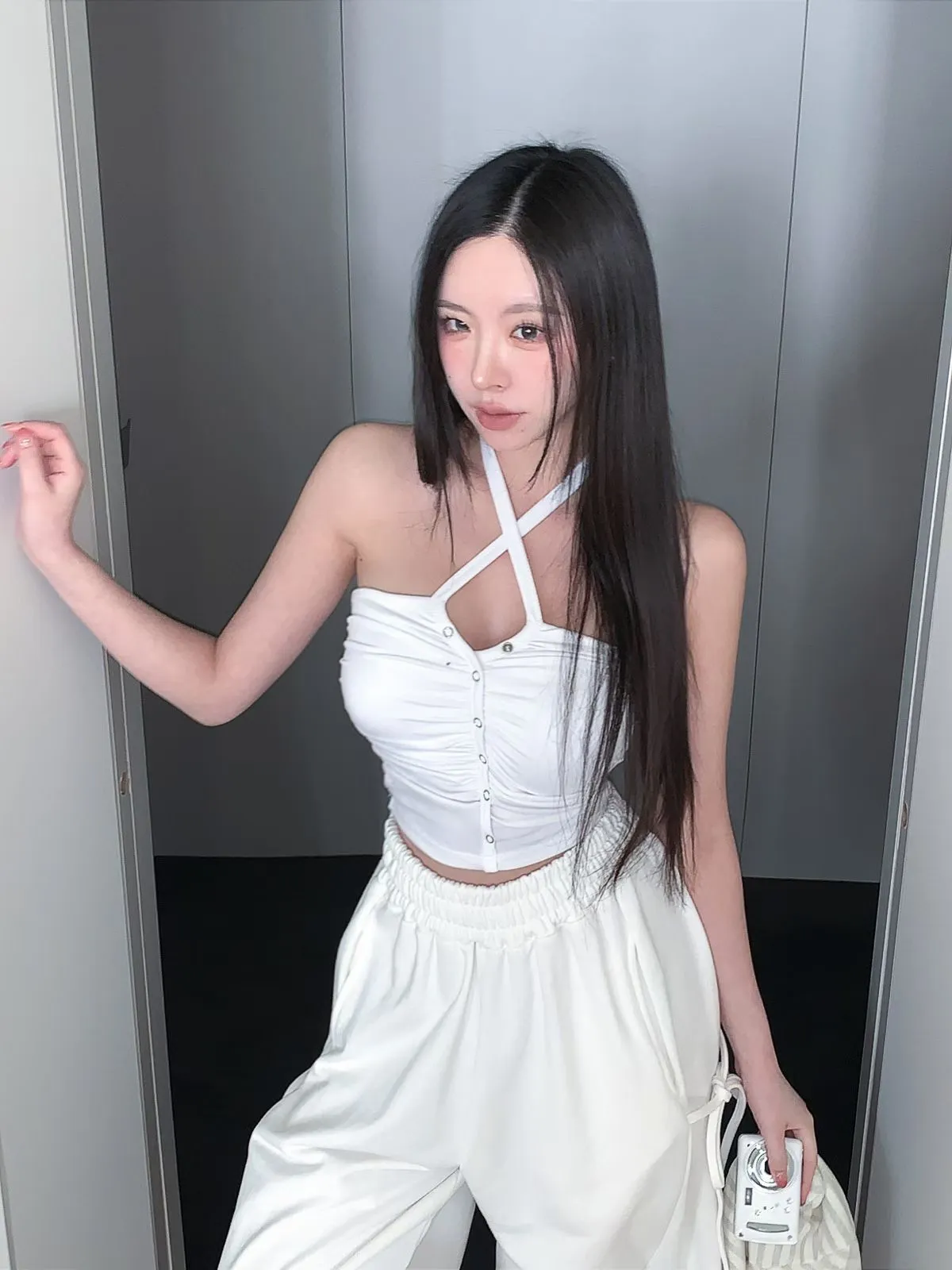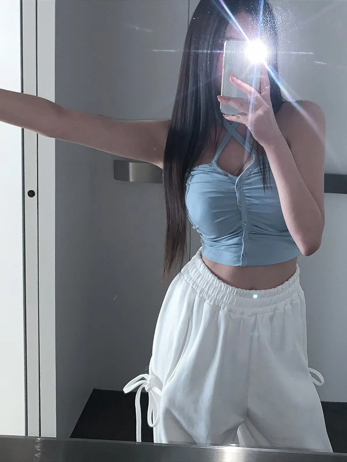 26EB24 交叉帶美胸抓摺bra短版背心 4色