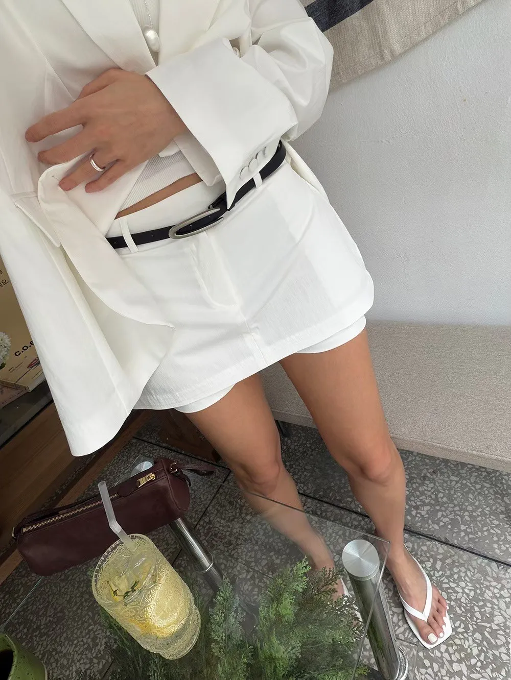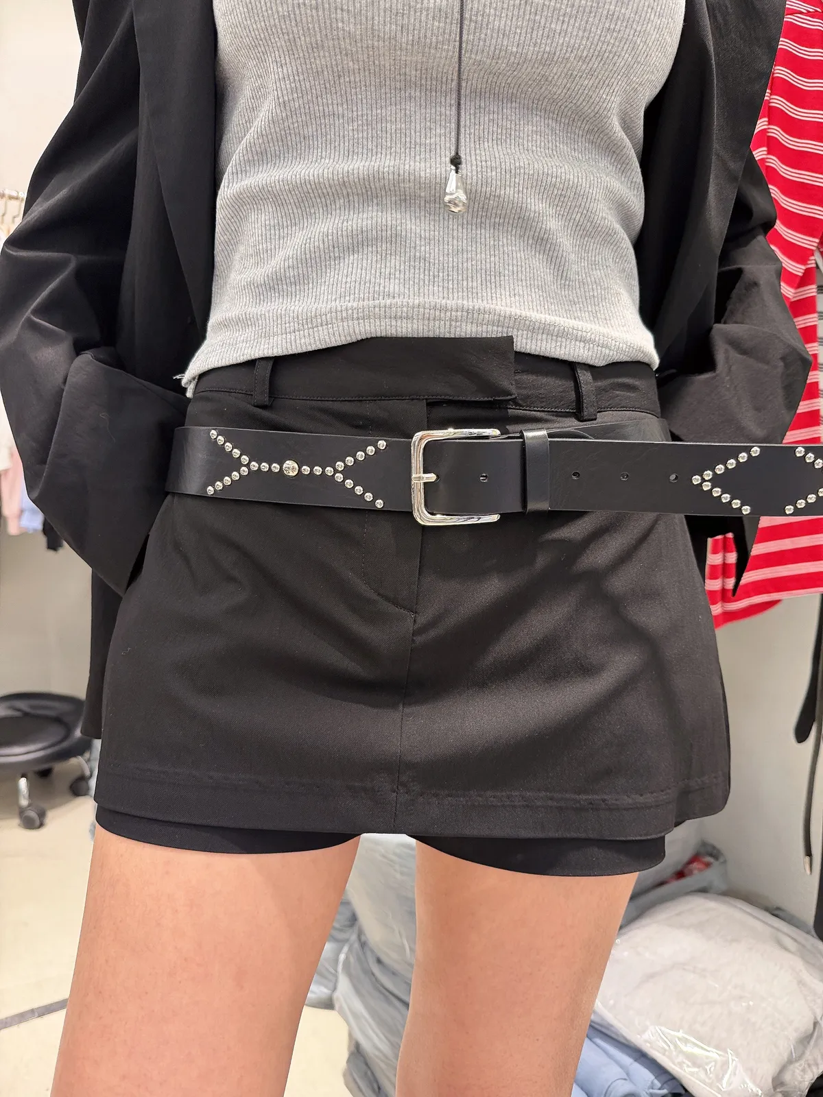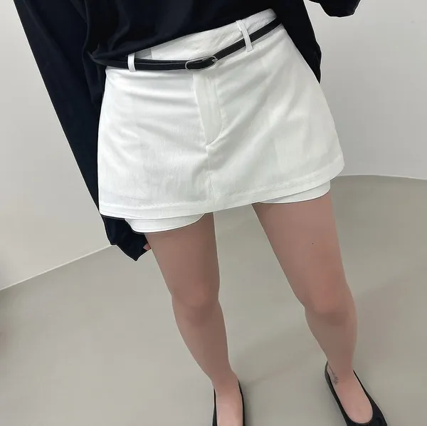 26EC07 低腰混紗料短西褲裙 2色 SM