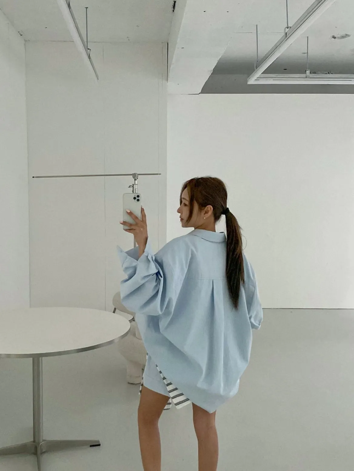 26EC12 小鐵牌挺料密織線中長版襯衫外罩 2色