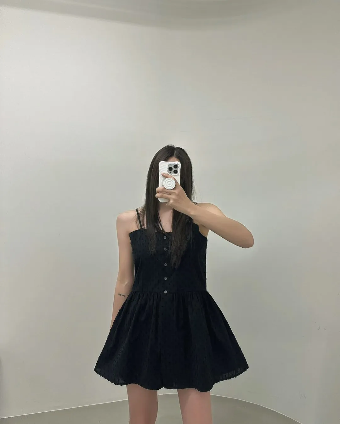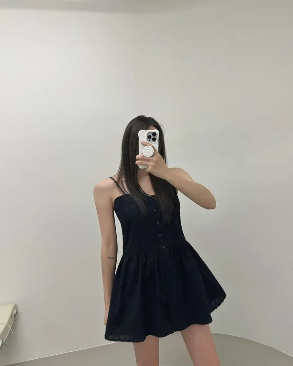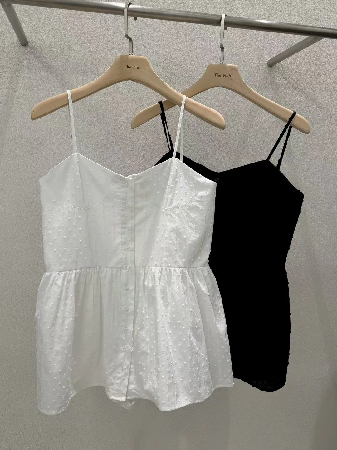 26EC15 點點布蕾絲連身背心短洋裝褲裙 2色